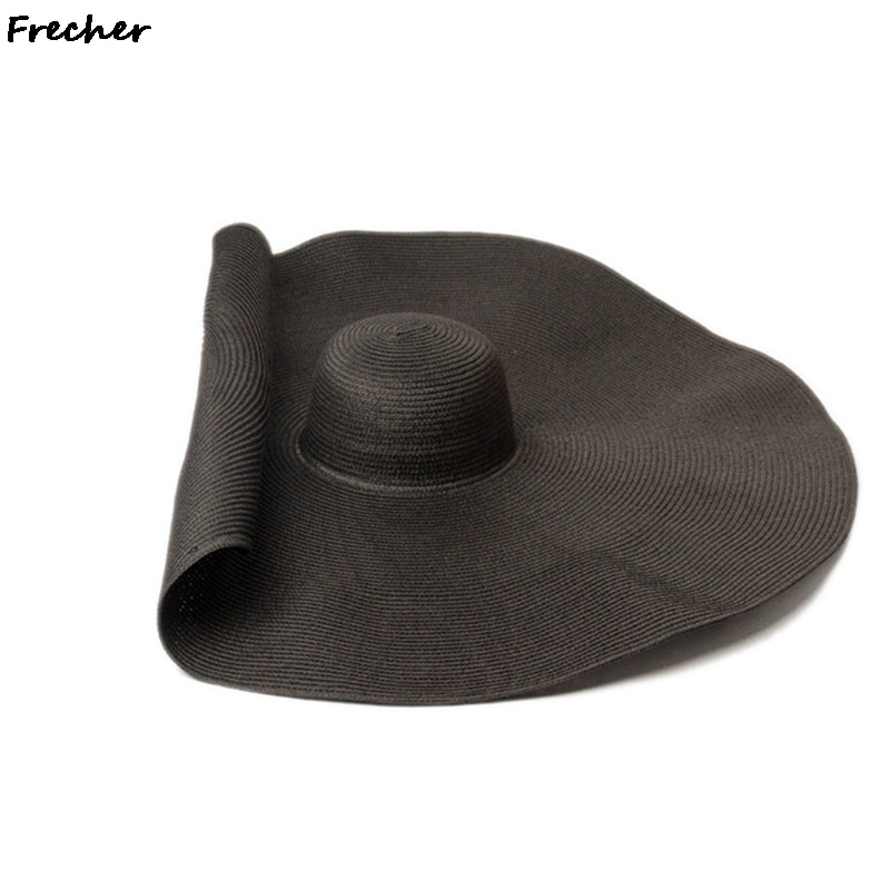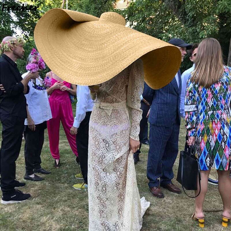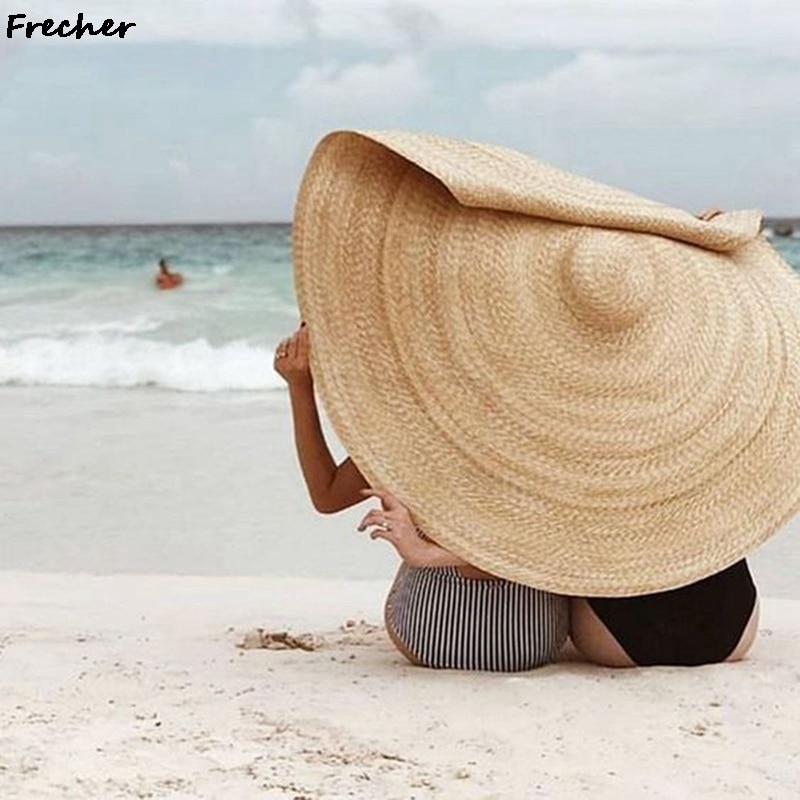 80CM Fashion Large Sun Hat Summer Anti-UV Protection Foldable Straw Cap Woman Cover Oversized Collapsible Sunshade Beach Hat