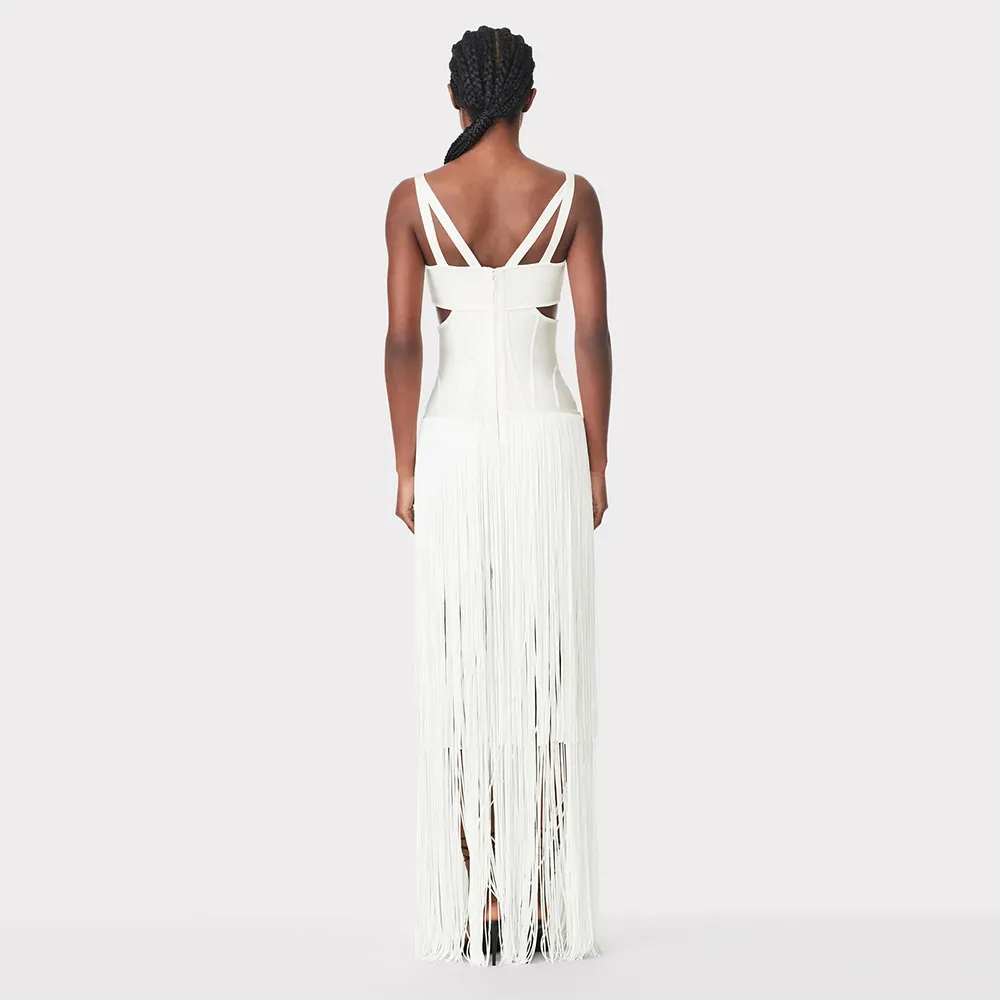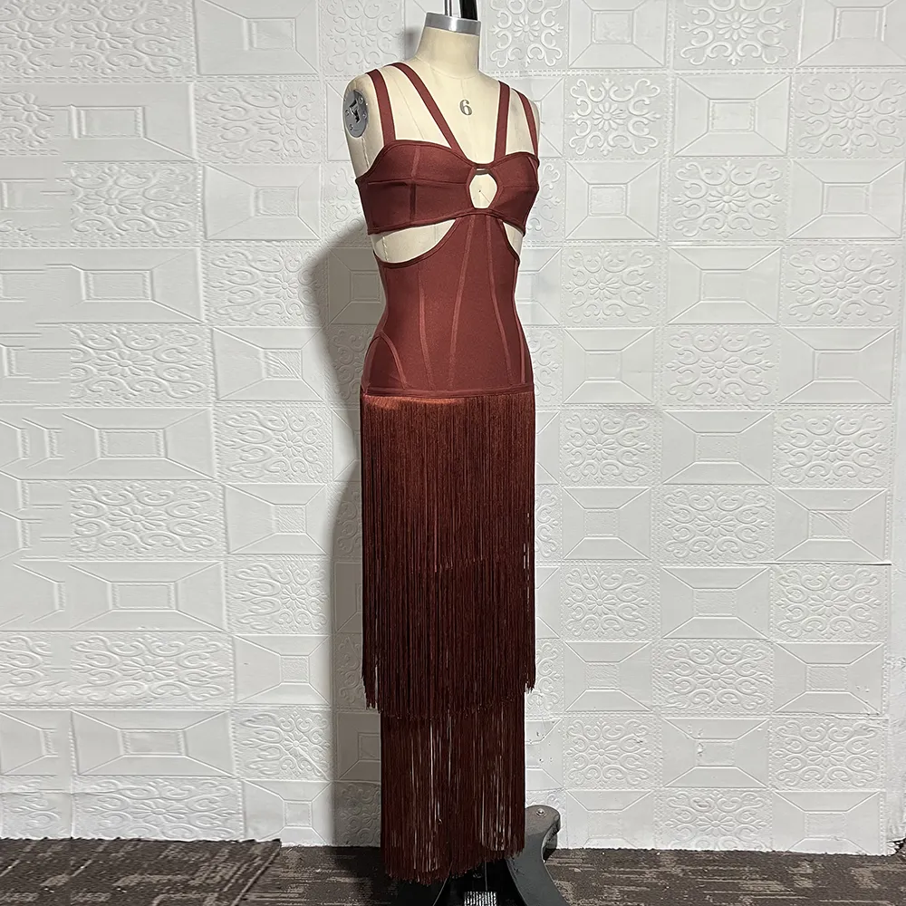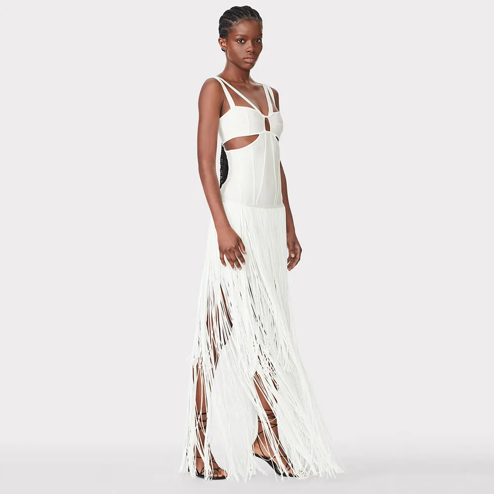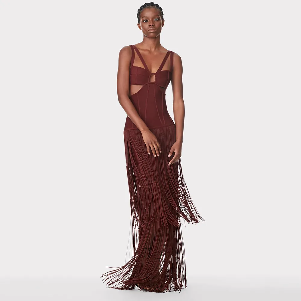New Women'S Sleeveless V-Neck Tight Long Bandage Dress Elegant Sexy Cut-Out Club Evening Dress