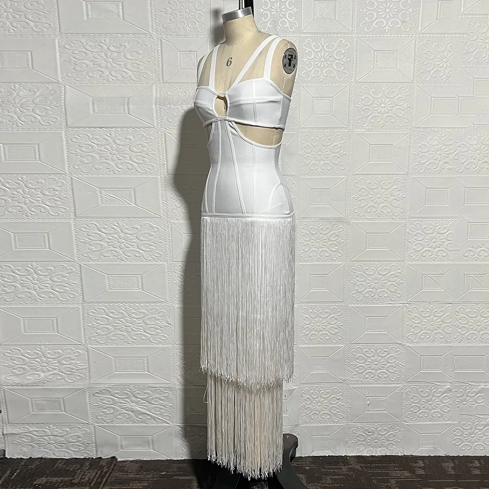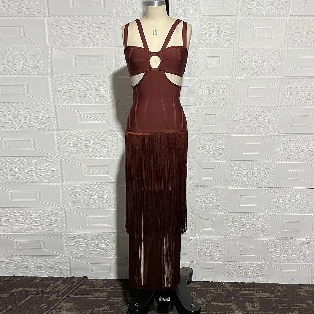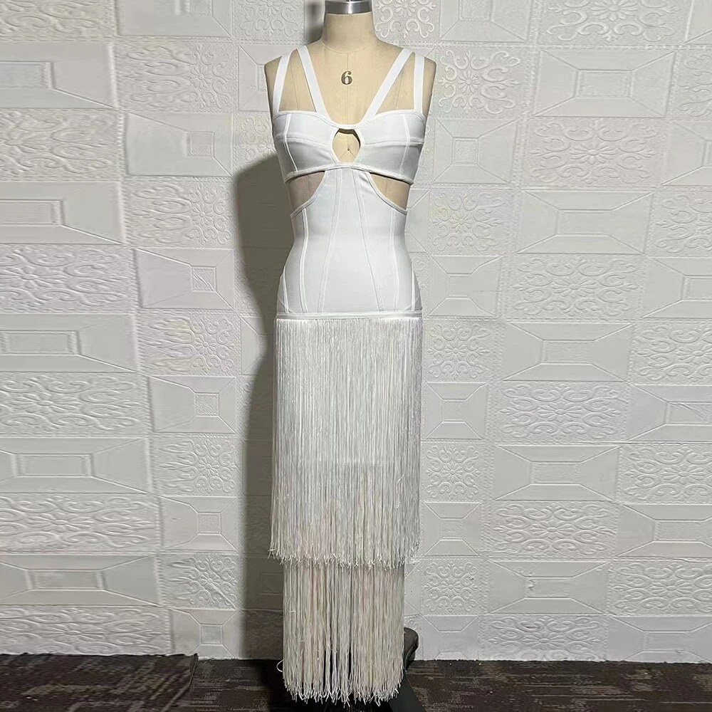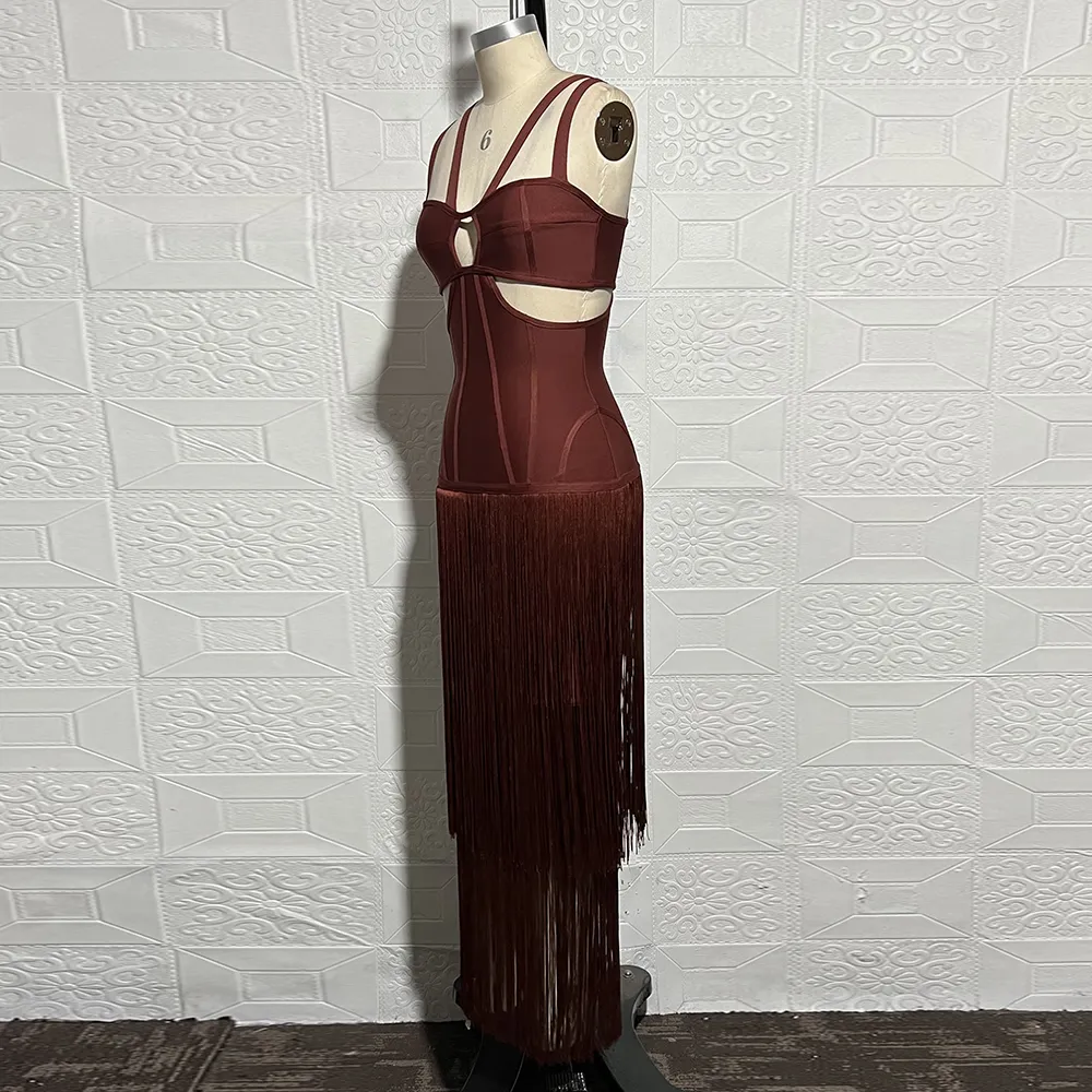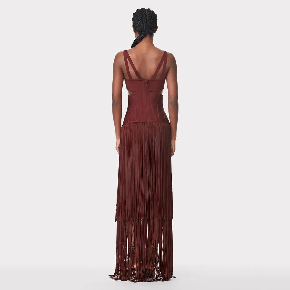 New Women'S Sleeveless V-Neck Tight Long Bandage Dress Elegant Sexy Cut-Out Club Evening Dress