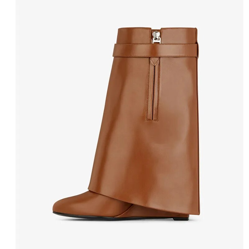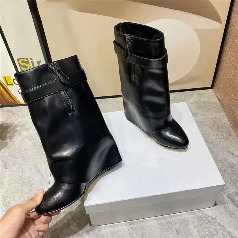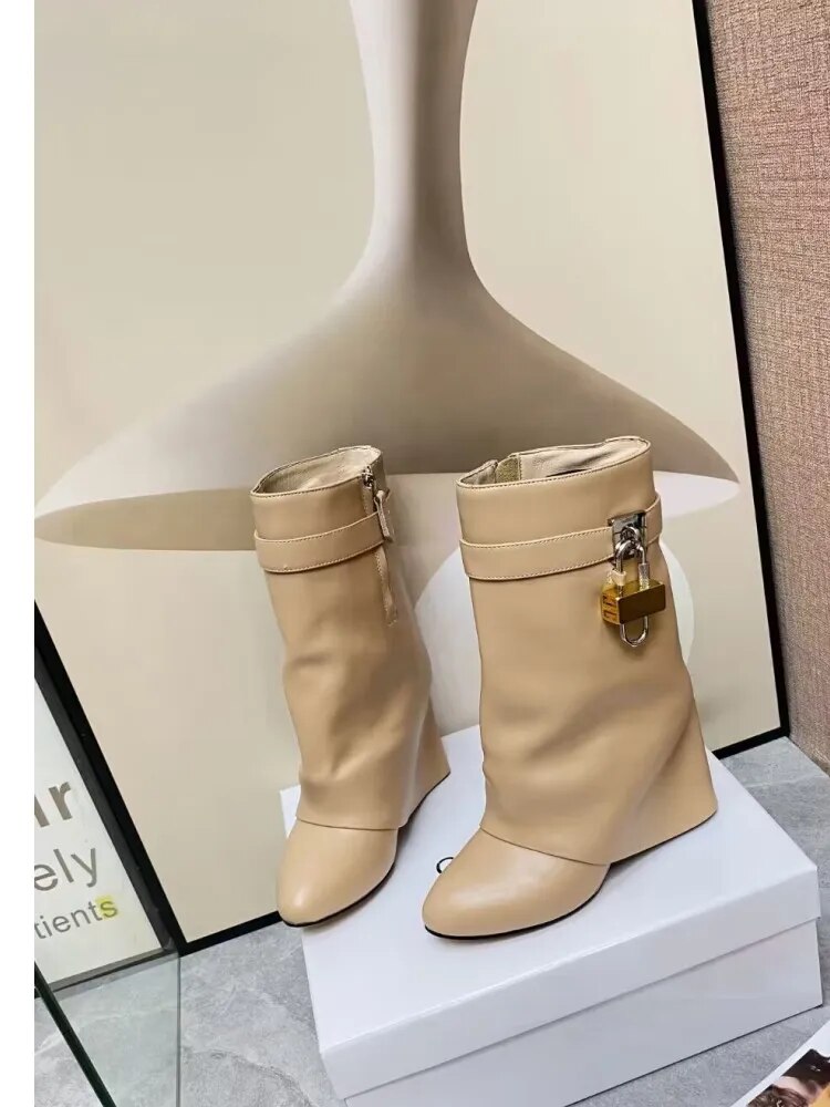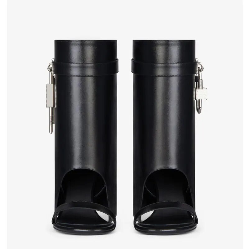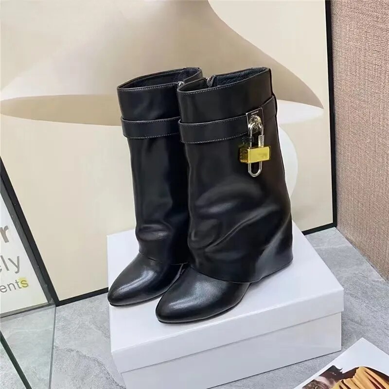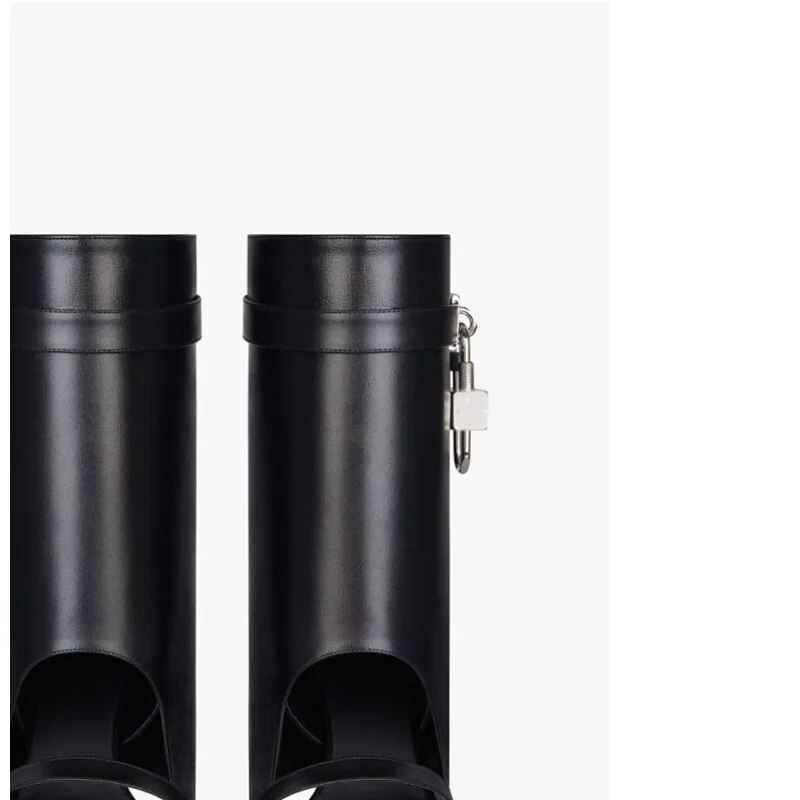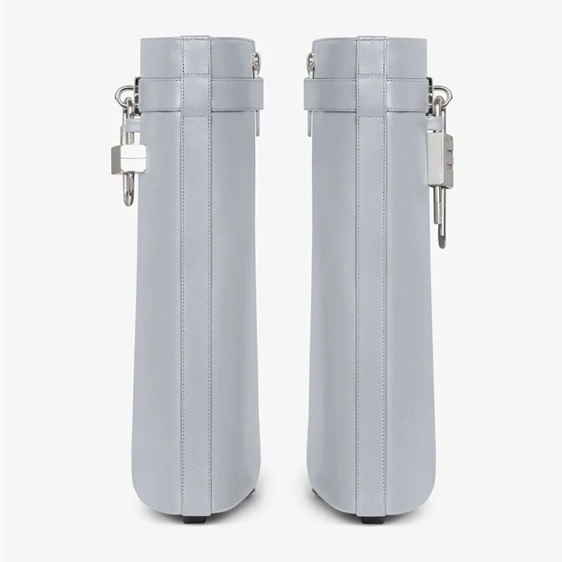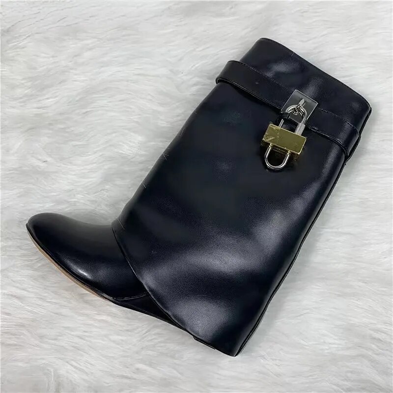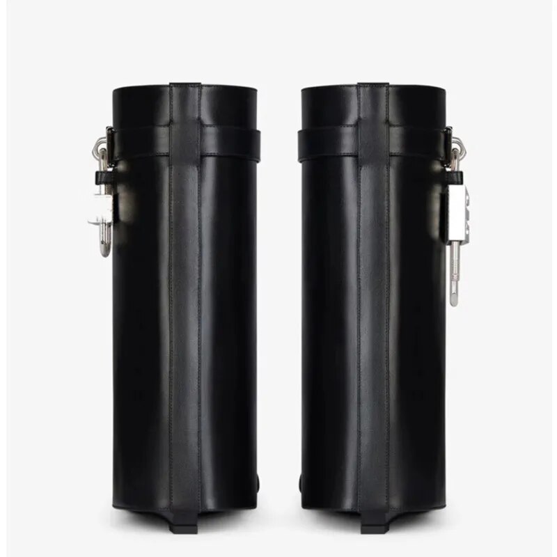 Autumn/Winter Large Lock Waist Skirt Boots High Heel Leather Thick Bottom Side Zipper Women's Short Boots