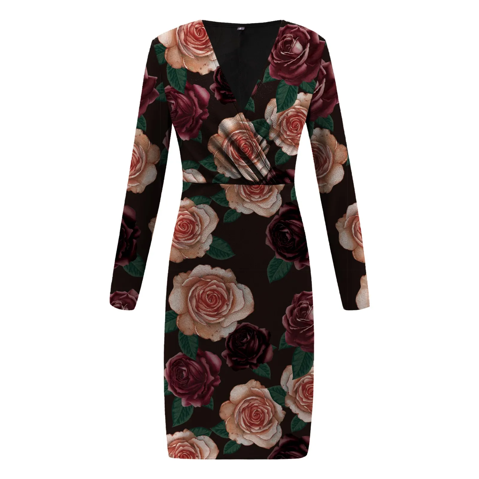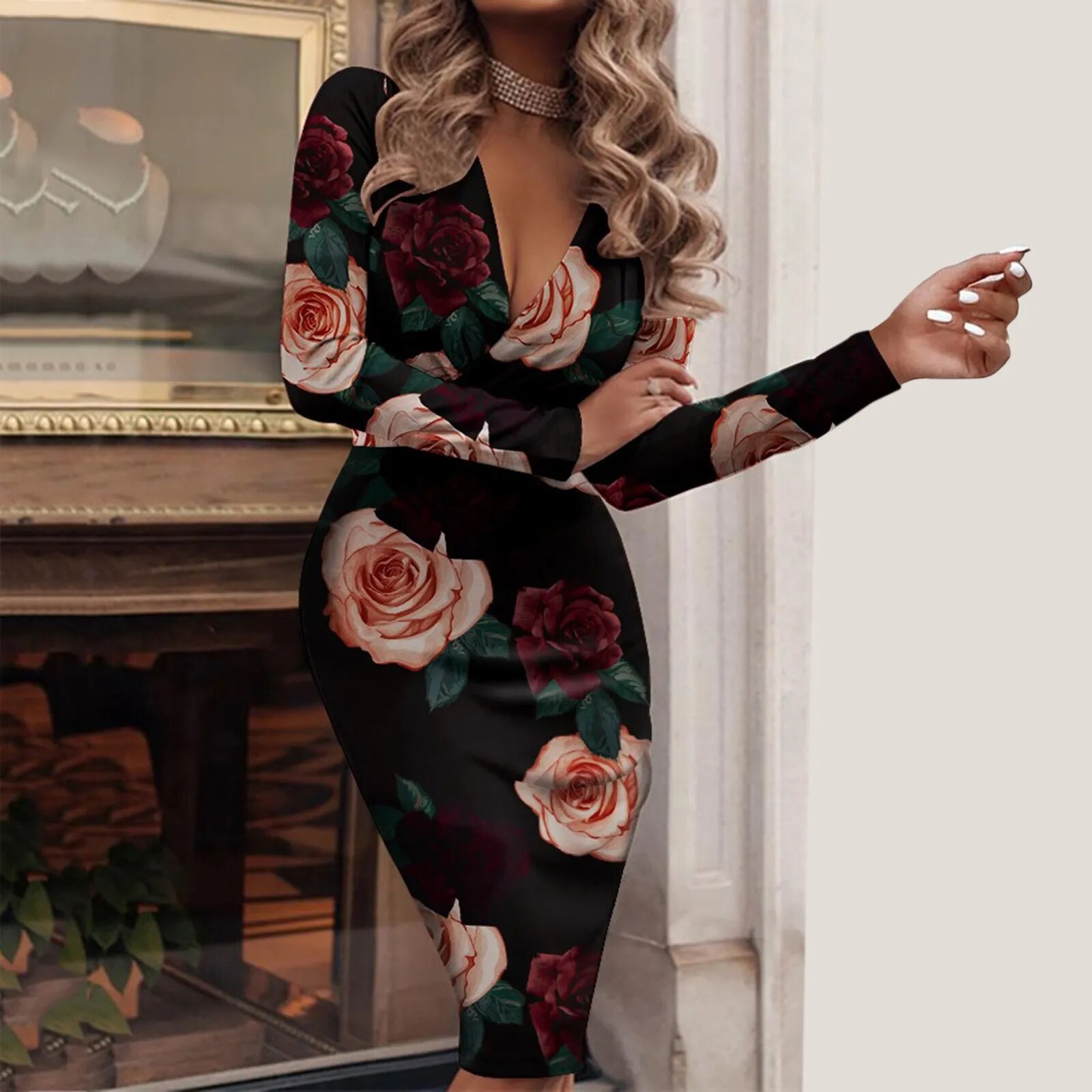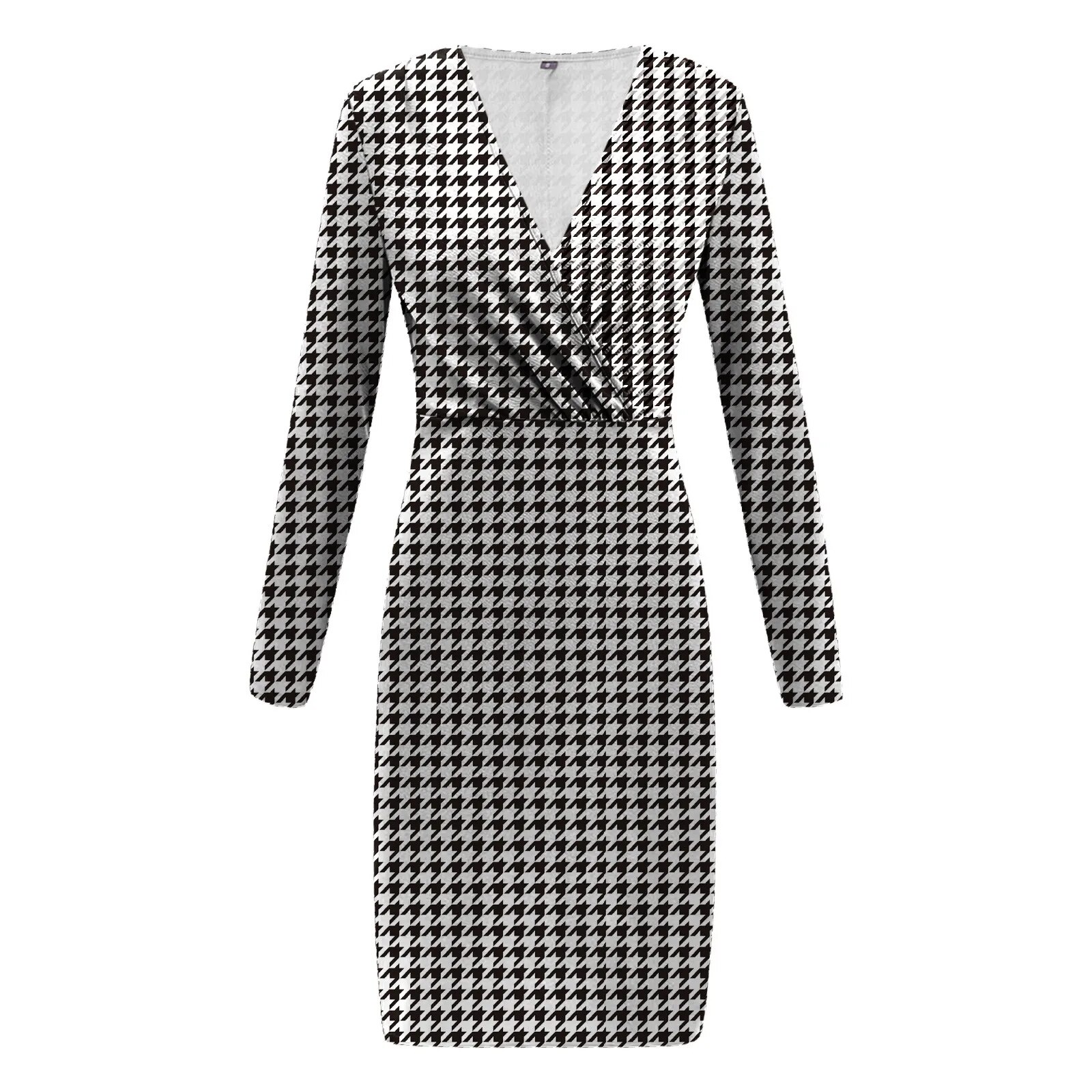 Women's Fashion Leopard Printe Patch Deep V-Neck Long Sleeve Party Dress