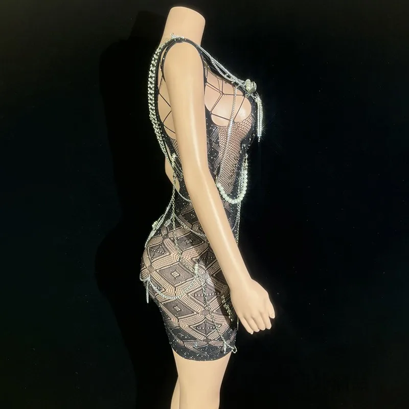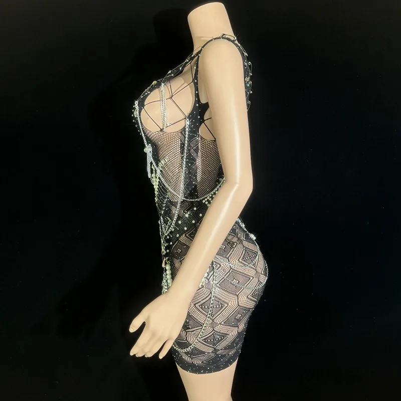 Celebrate in style with our Black Birthday Party Dress! This chic, hollow-out short dress features elegant pearl accents, making it the perfect sexy gogo dancer outfit for nightclub performances. With a combination of sophistication and allure, you'll be the center of attention at any celebration. Get ready to dance the night away!