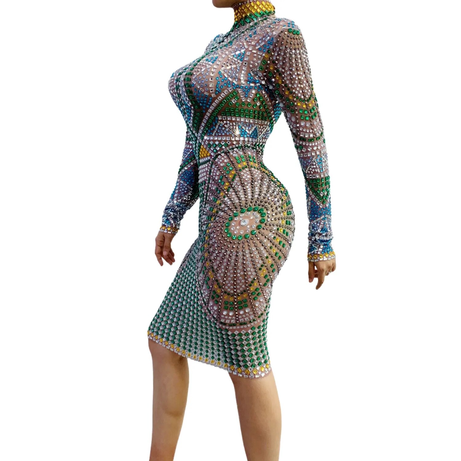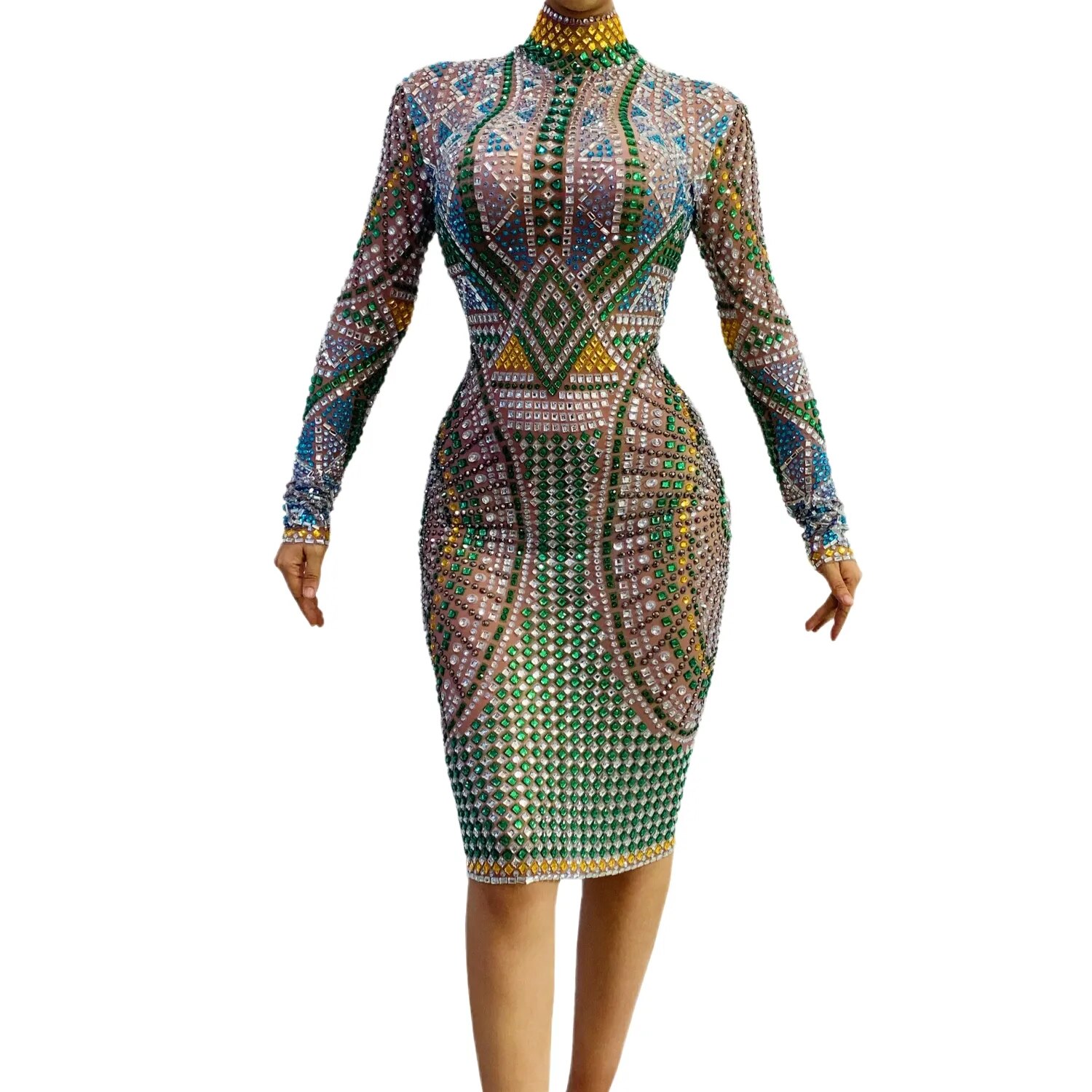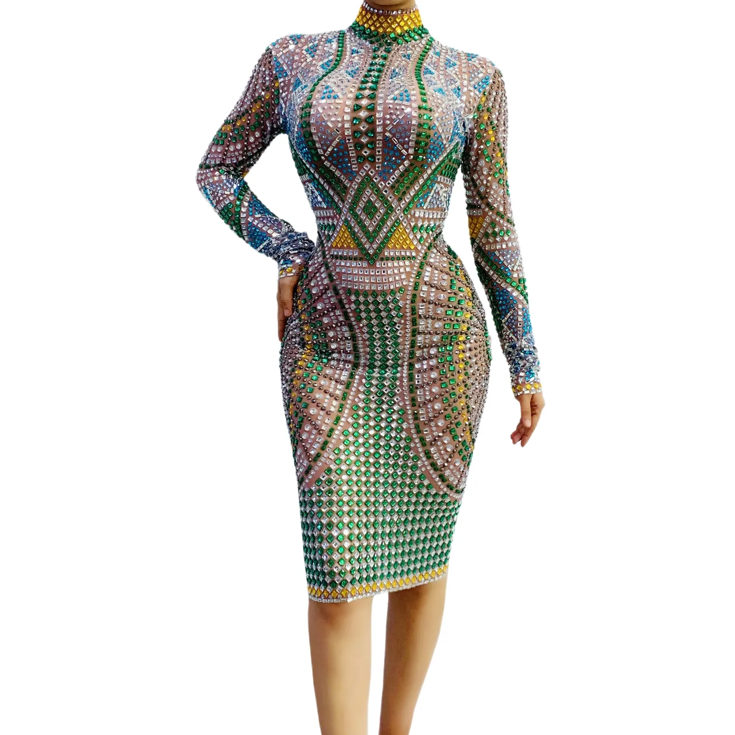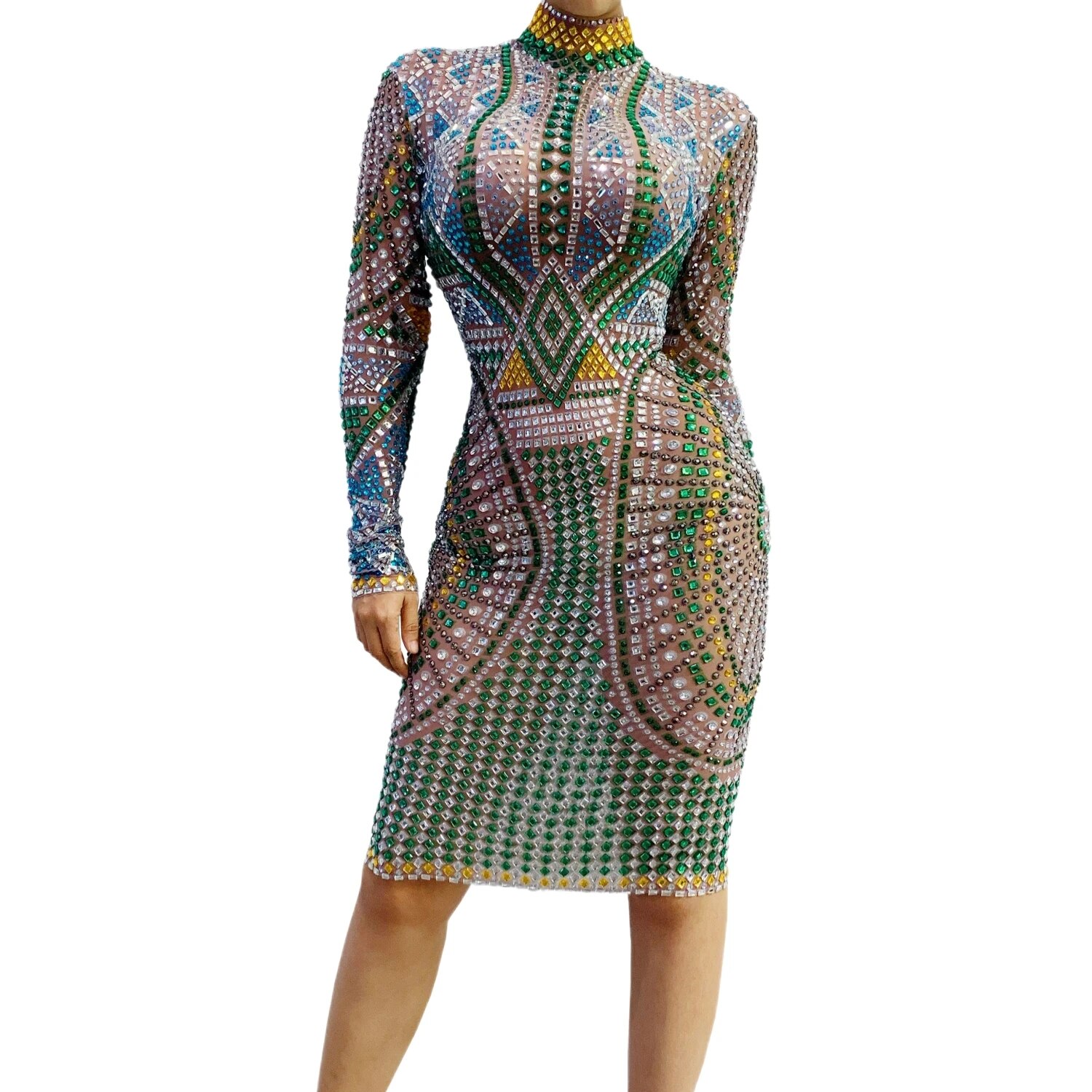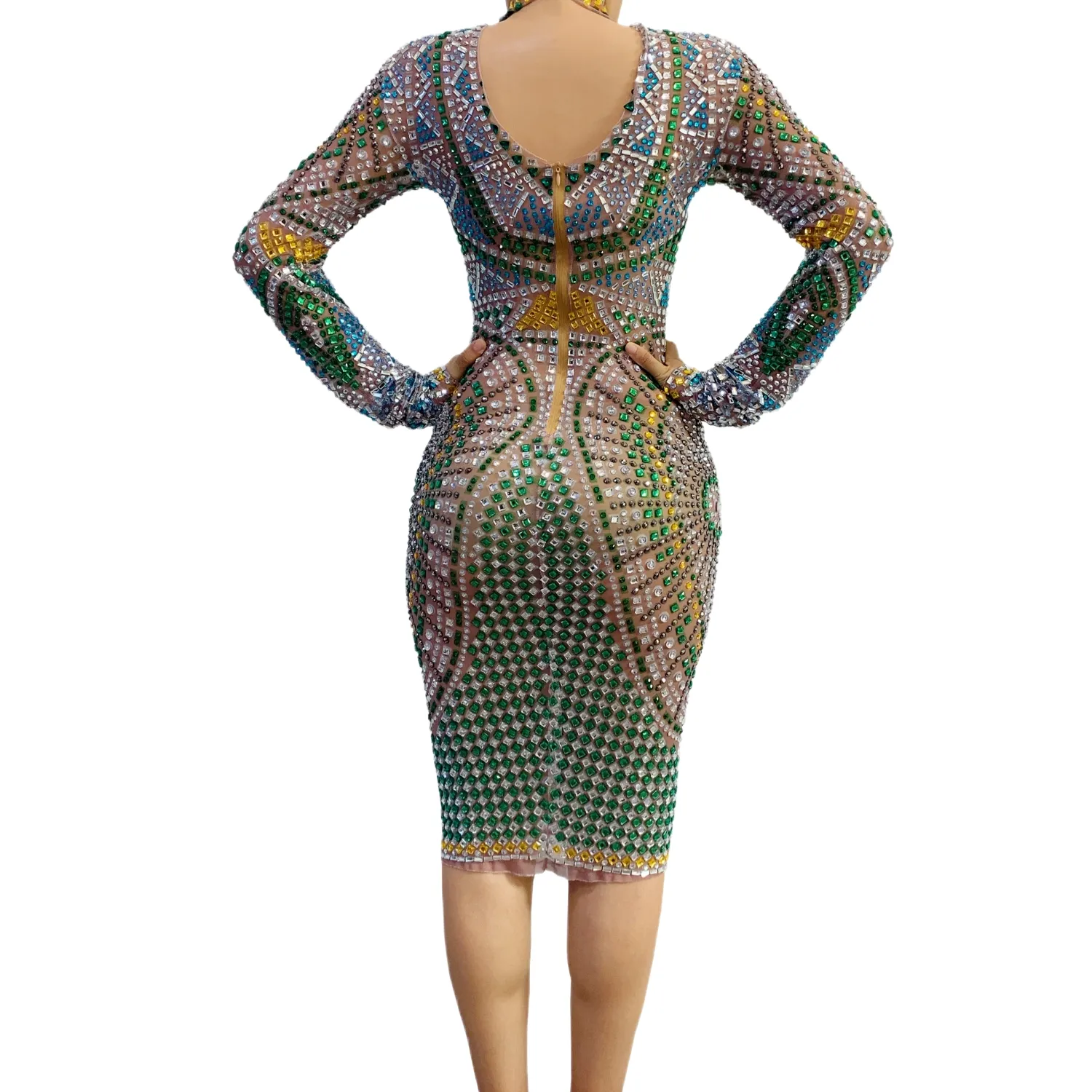 Banquet New Year Party Beaded Sequins Dress Slim Fit Hip Wrap Sweet Long Sleeve Short Dress Short Women's Performance Costumes