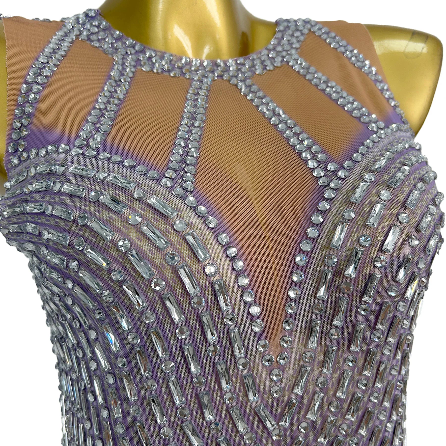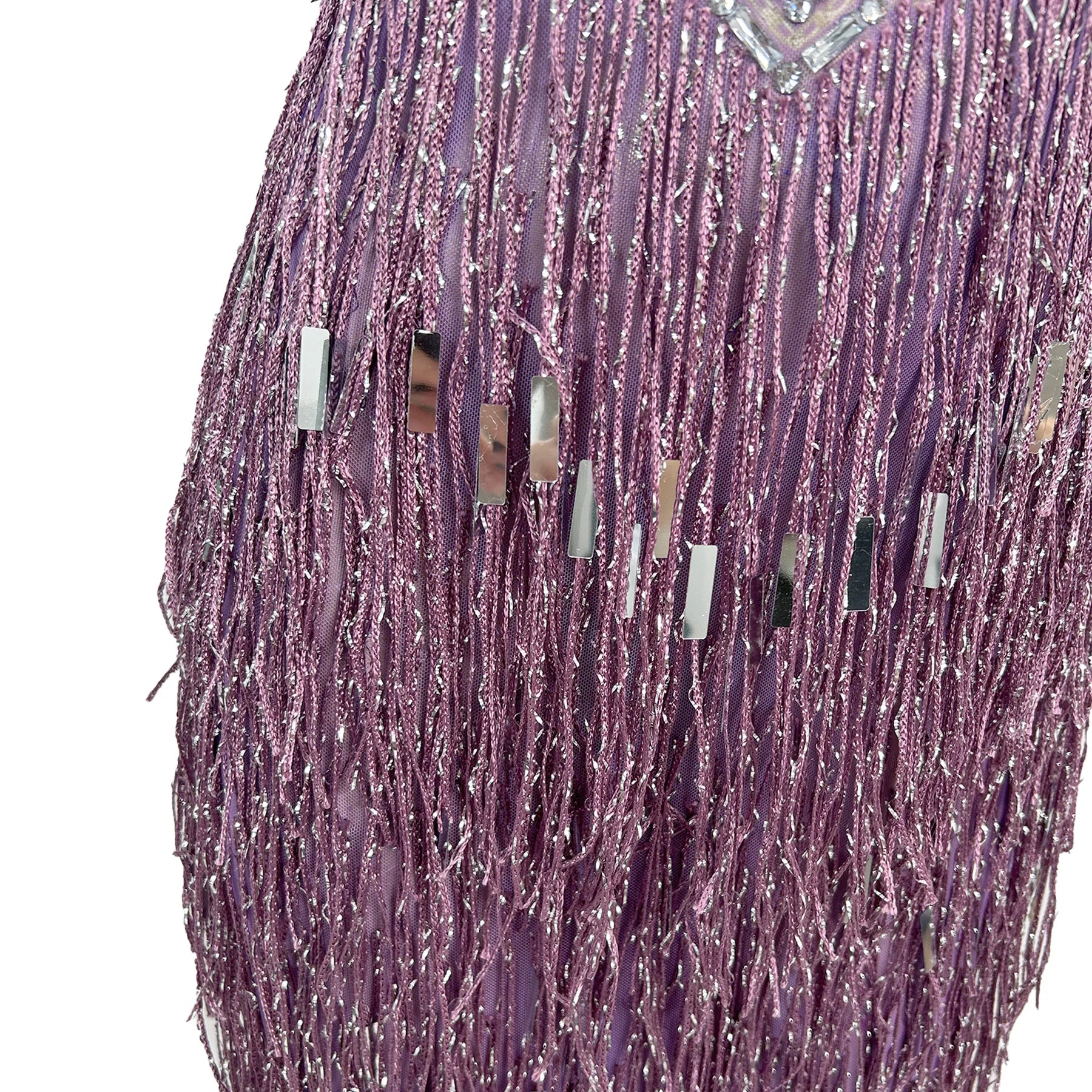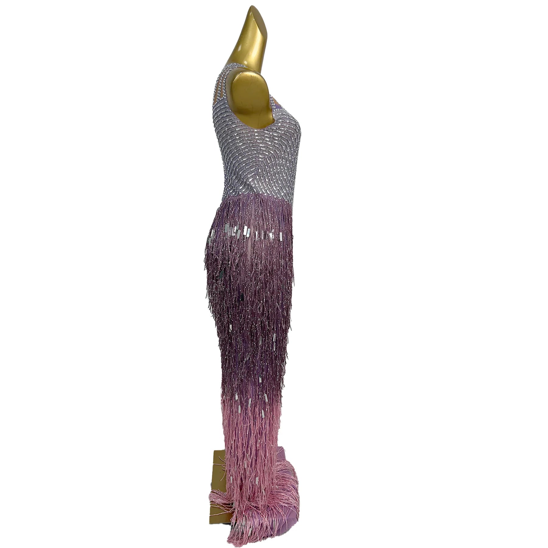 Birthday Celebrate Party Outfit Elegant Evening Gown Sexy Women Sparkly Crystals Mesh Sleeveless Tassel Sexy Long Dress