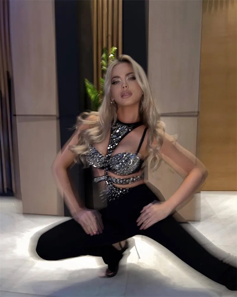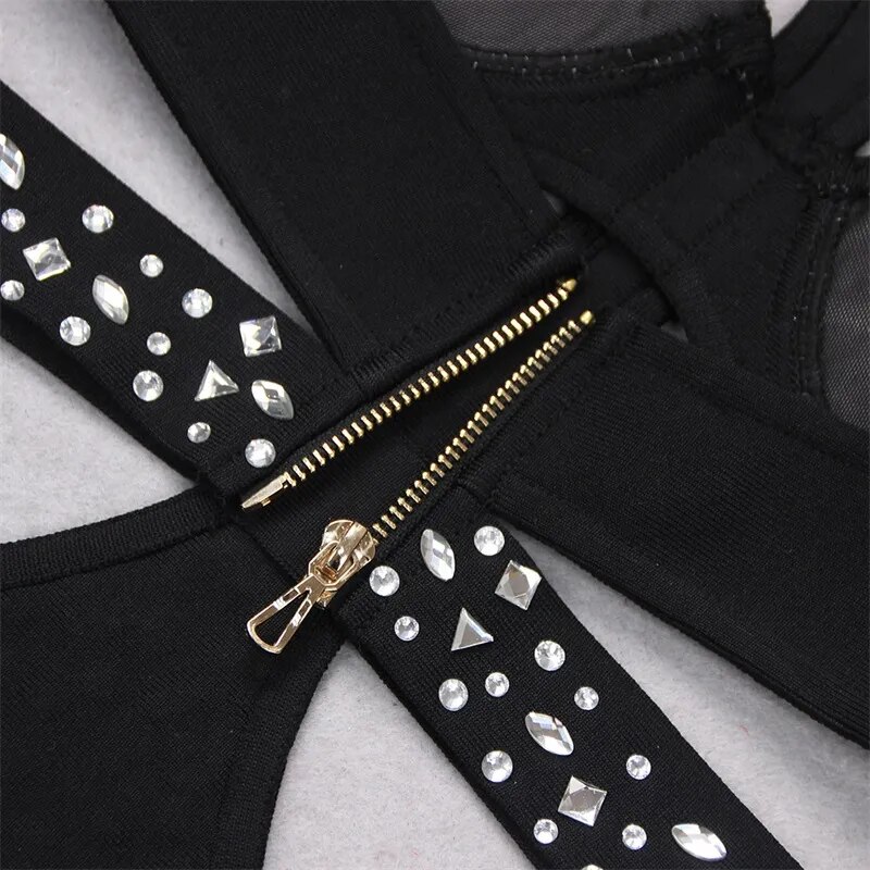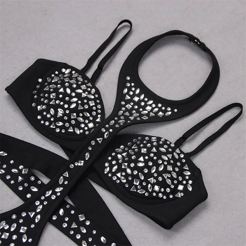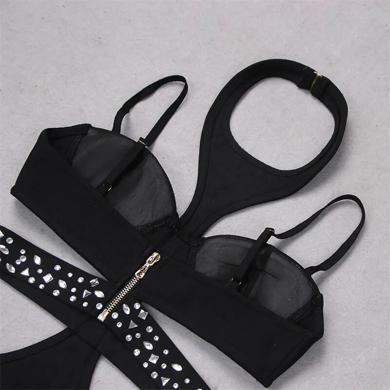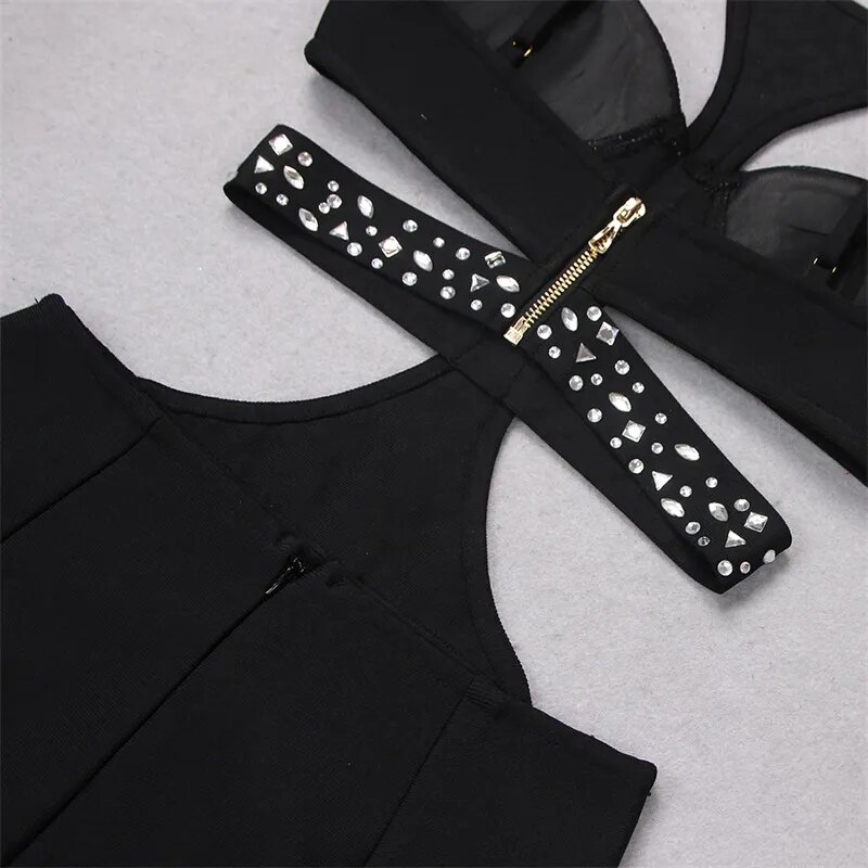 Black Jumpsuit Luxury Crystals Prom Dress Halter Sleeveless Sexy Hollow Pants Evening Party Gown Robes