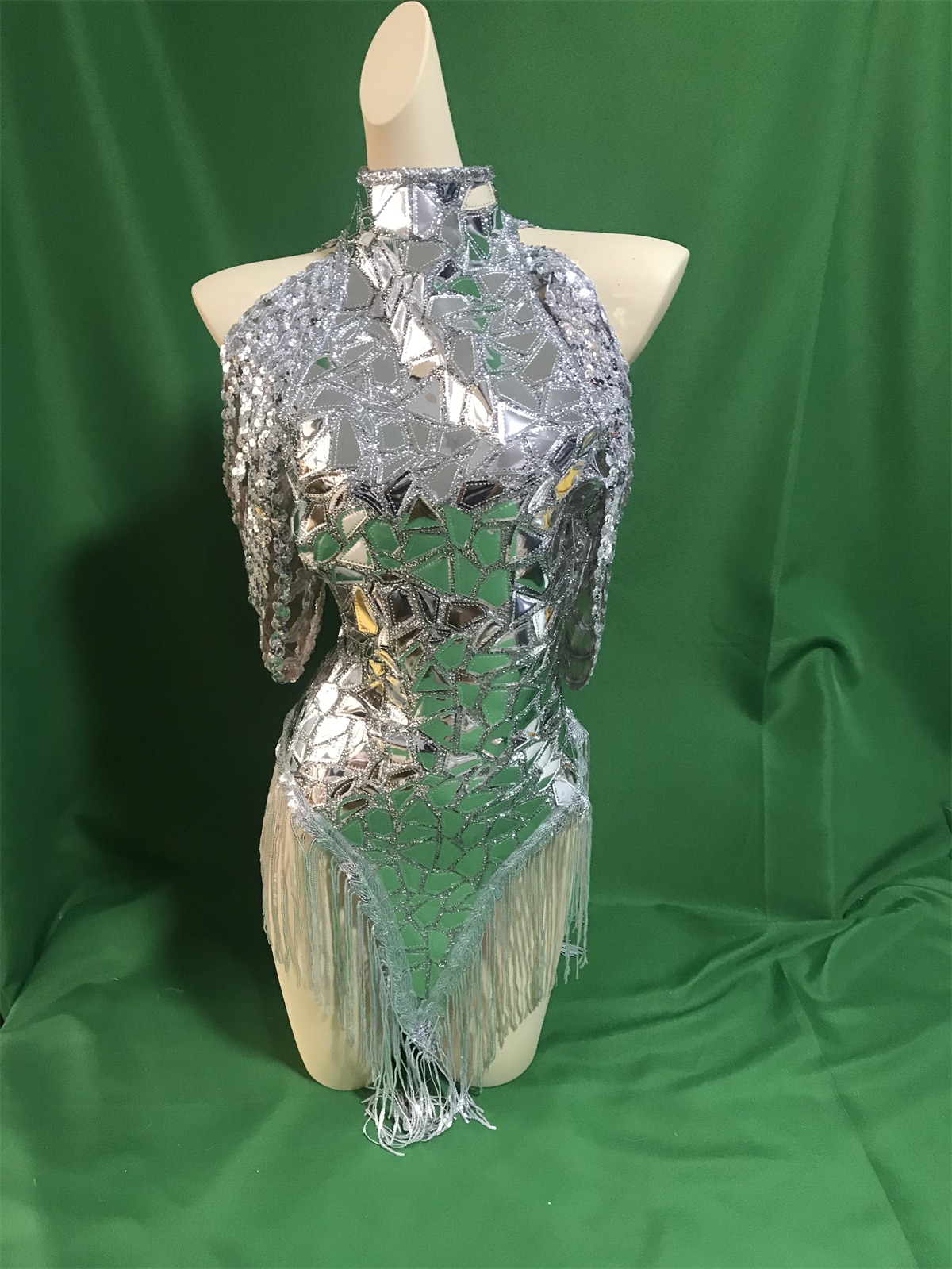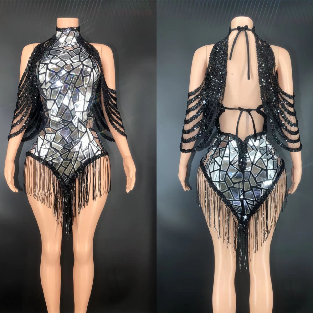 Black Mirror Sequin Shining Dress Women Birthday Party Clubwear Great For Dancing Dj Ds Gogo Banquet Rave Hula Stage Wear Fringe