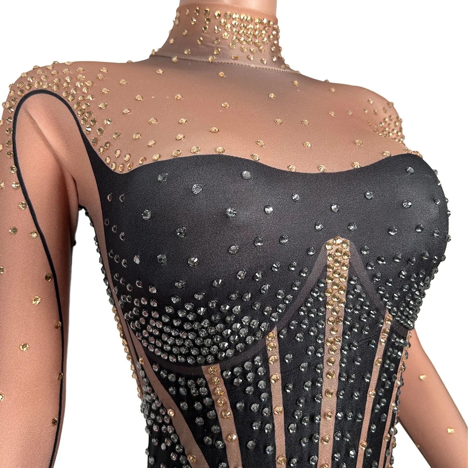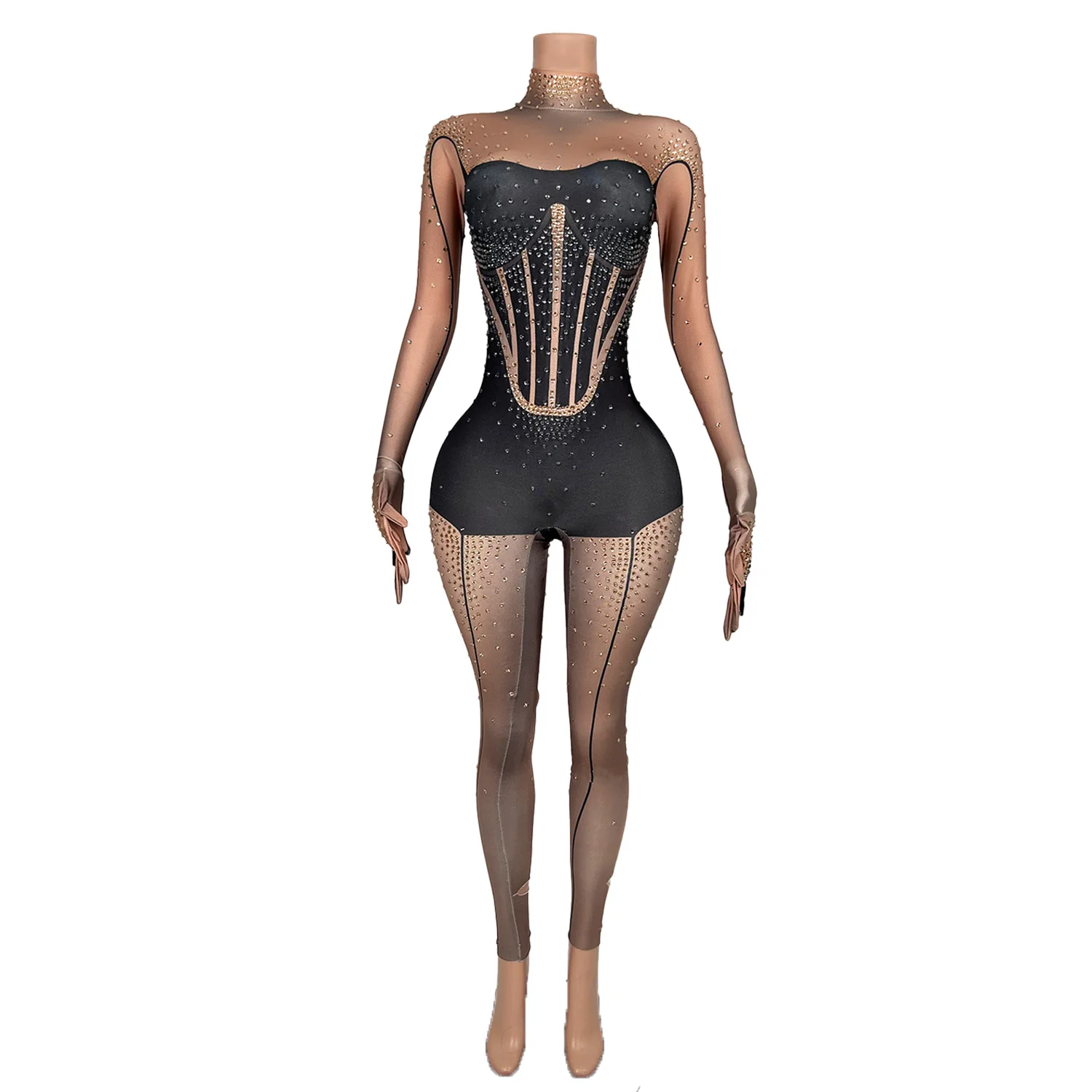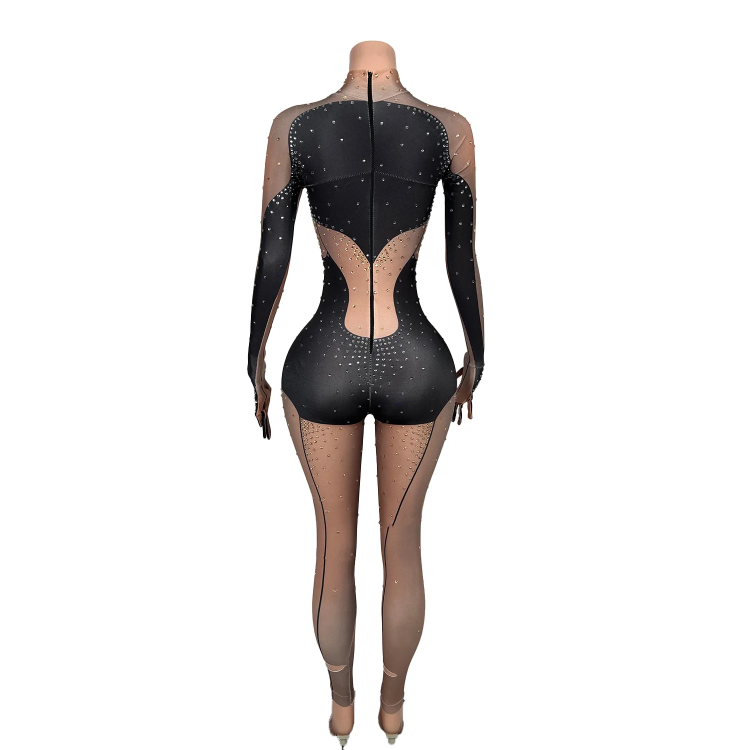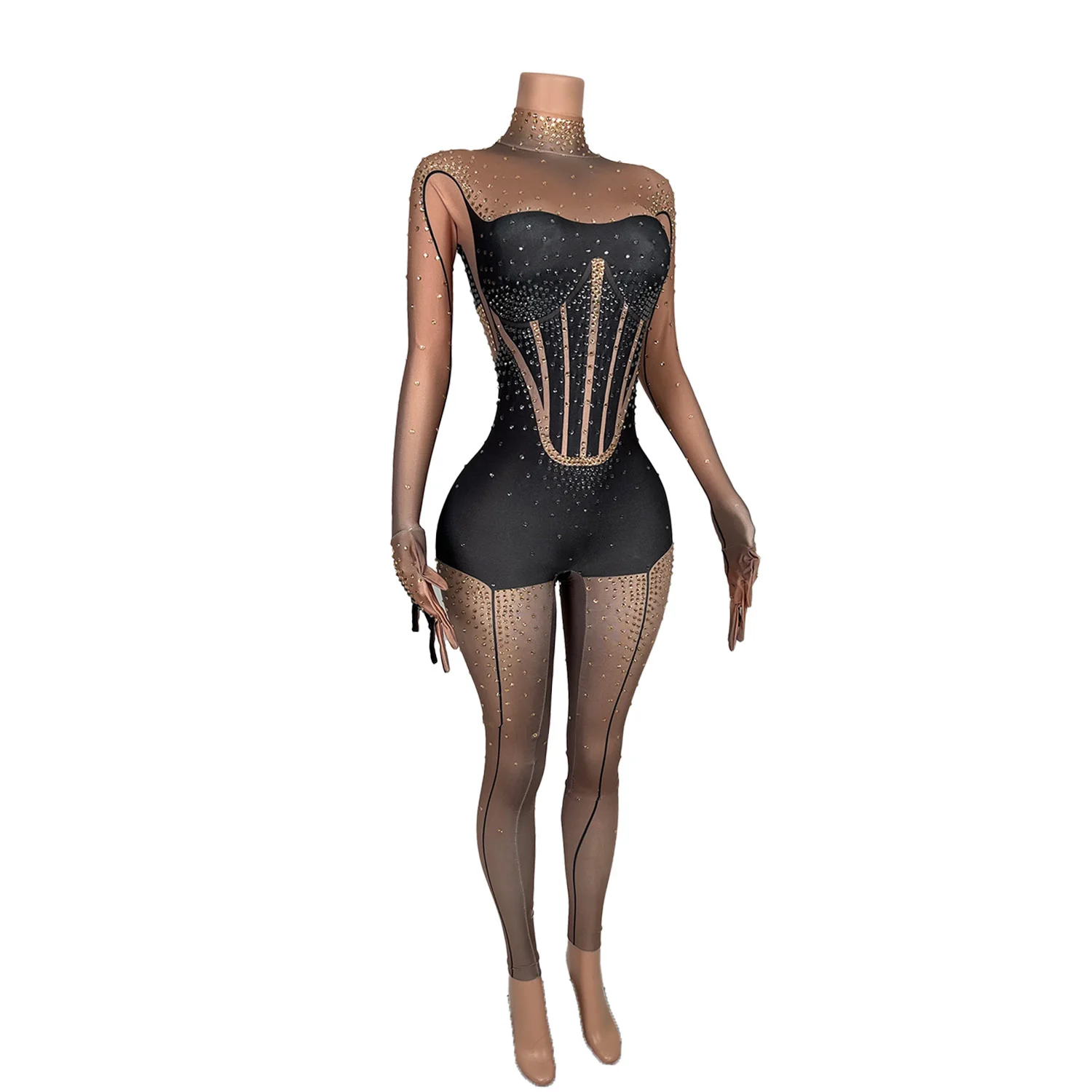 Black Stretch Jumpsuits Women Shinning Pole Dancing Nightclub Showgirl Stage Wear Bodysuits Sexy Drag Queen Wear Tiaotiaohei