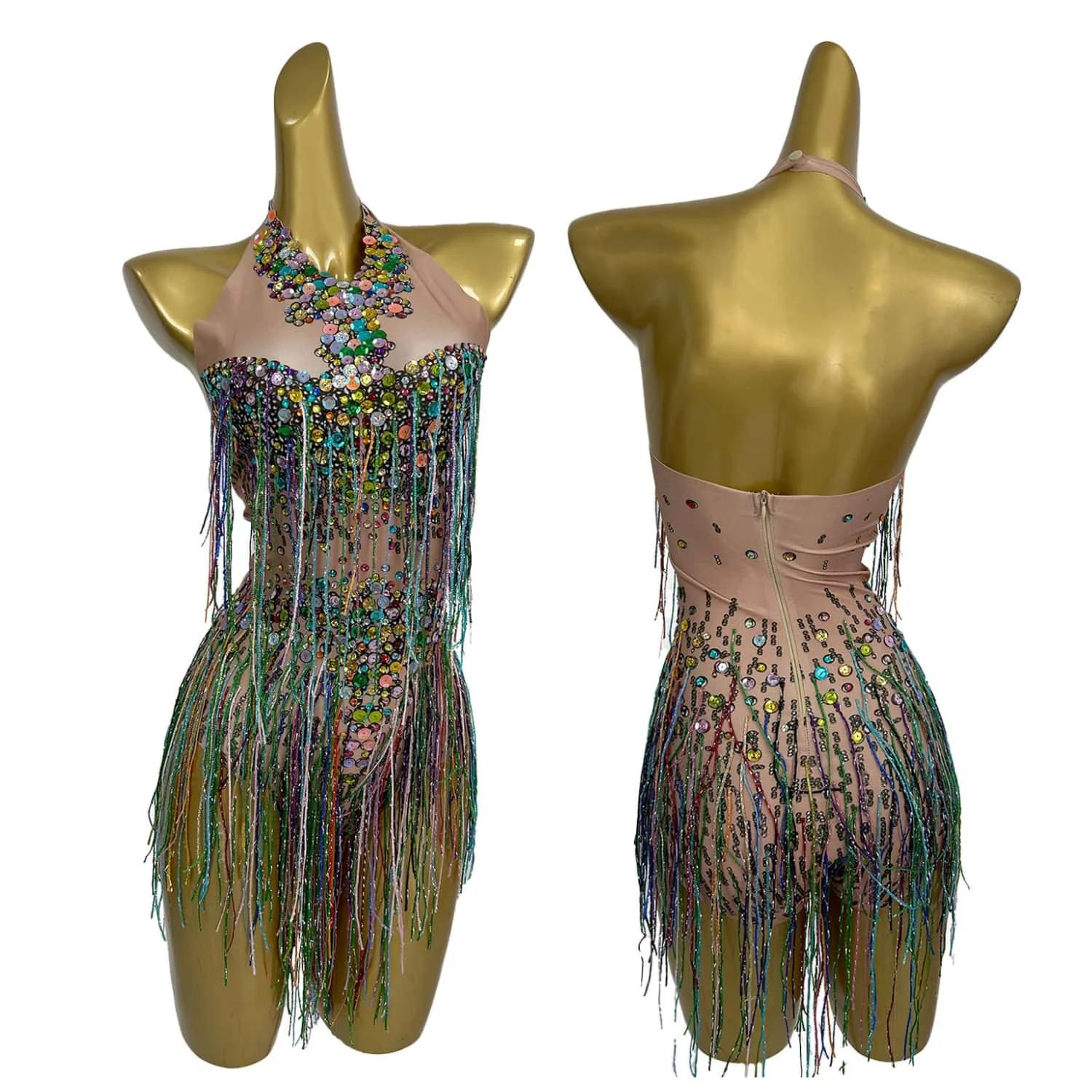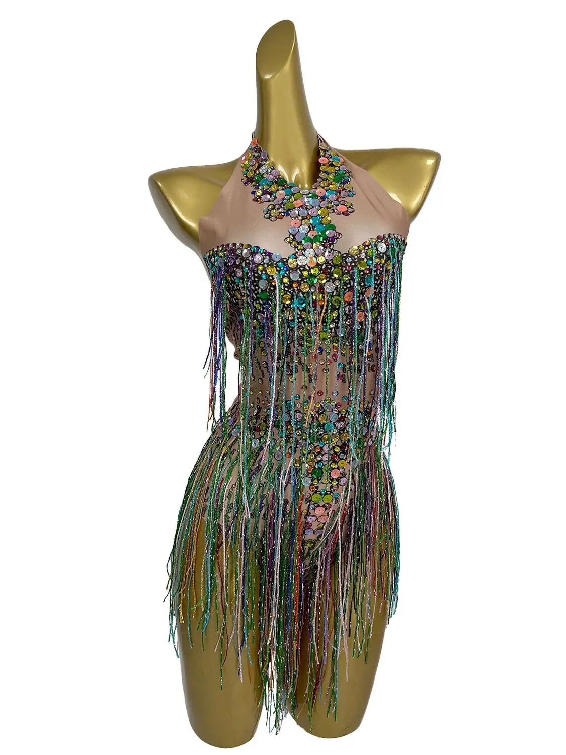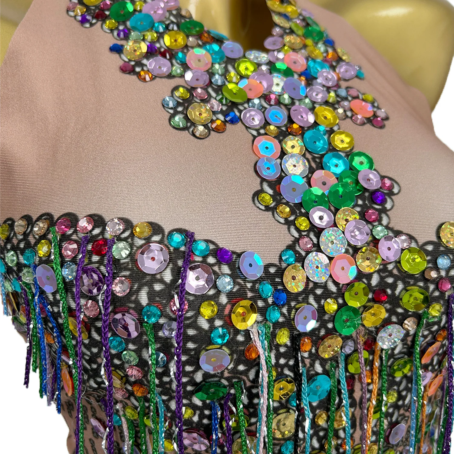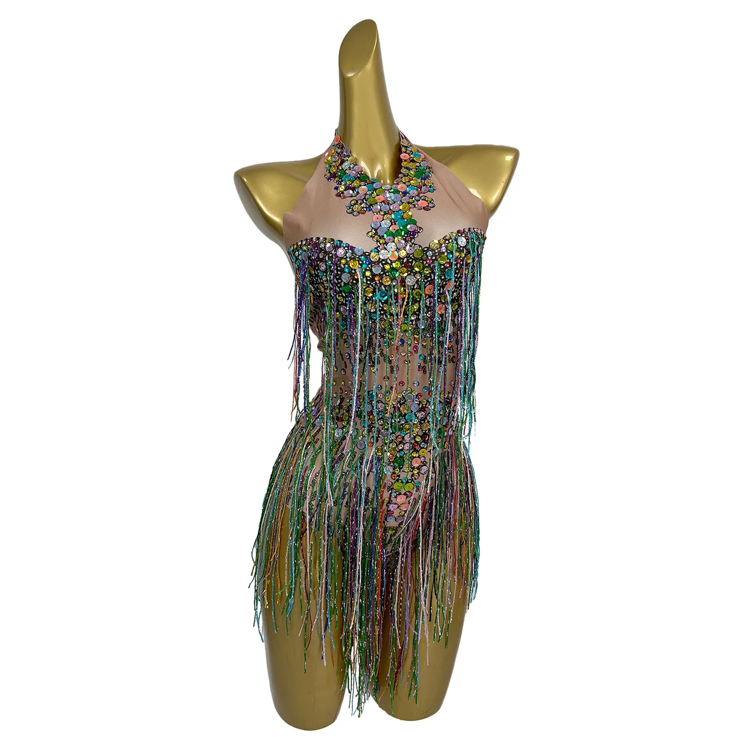 Bling Bling Sequins Bodysuit Women Stage Costumes Nightclub Tassel Jumpsuit Sexy Singer Outfits Performance Dresses Wucaibinfen