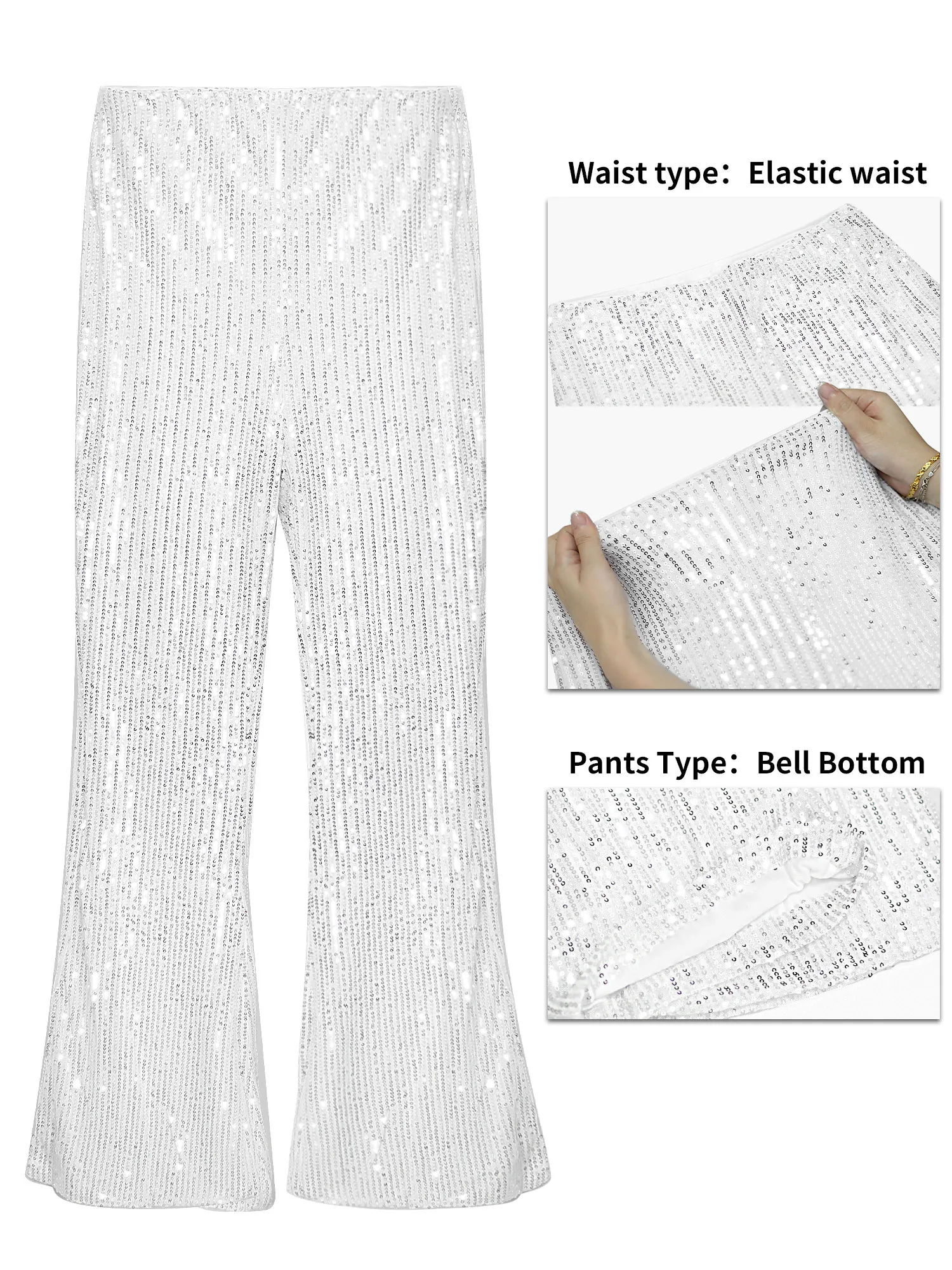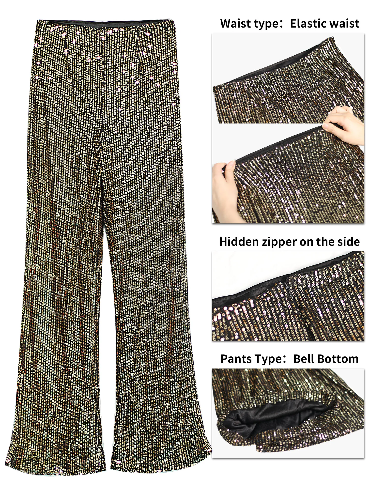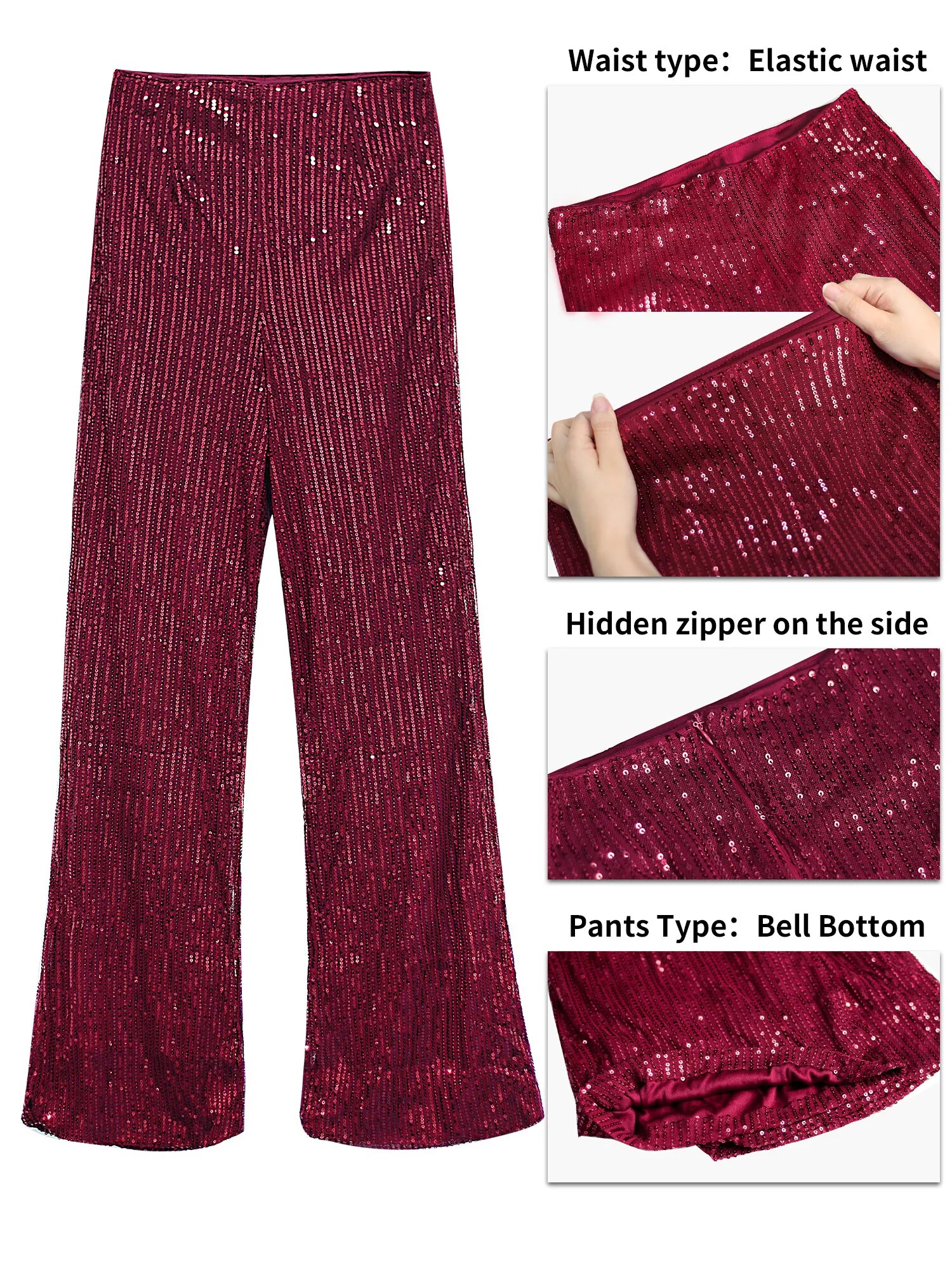 Bling Pants for Women Navy Blue Sparkling Sequined Flare Pants Relaxation of Tall Waist Wide Leg Pants Elegant Sexy Compelling