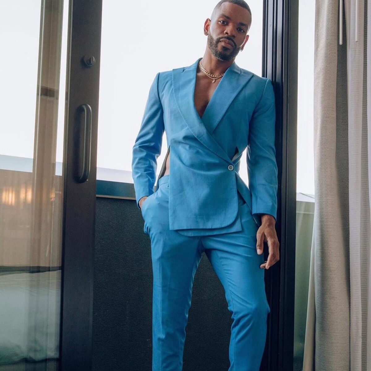 Blue New Men's Suits Tailored 2 Pieces Blazer Pants One Button Peaked Lapel Slim Fit Sexy Wedding Groom Custom Made Plus Size