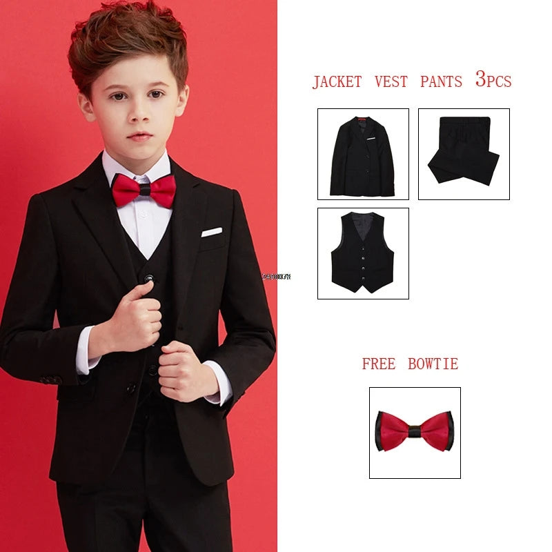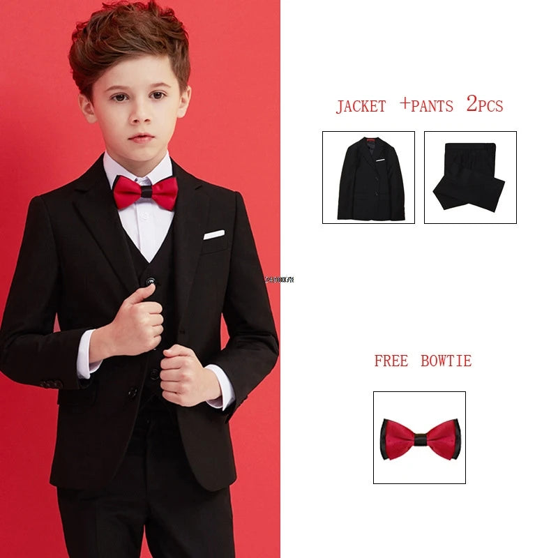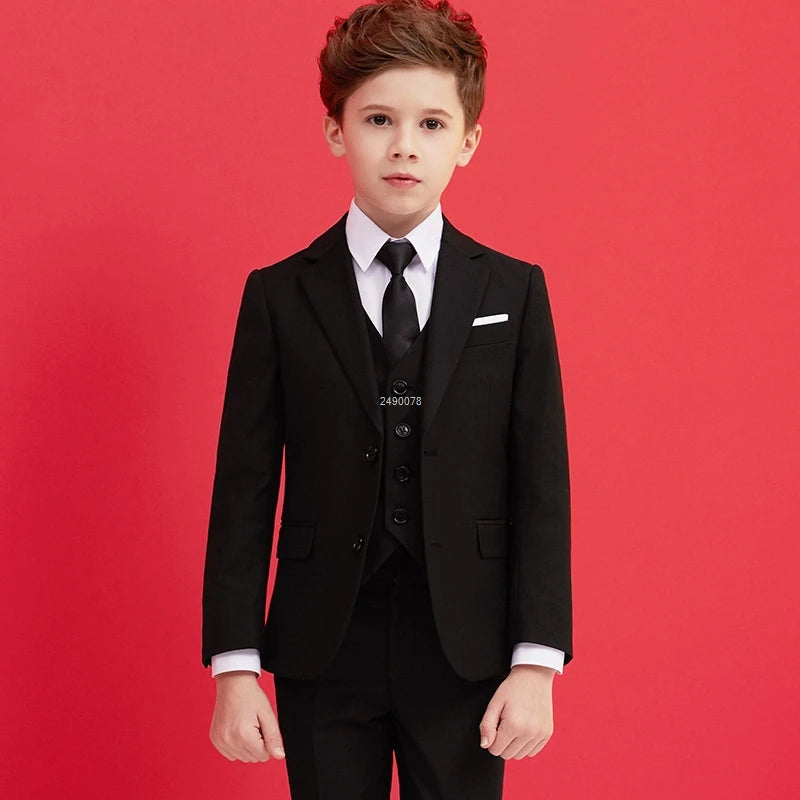 Dress your little gentleman in style with this black 007 wedding suit for boys. This formal blazer clothing set is perfect for special occasions such as children's day, graduations, chorus performances, and weddings. The outfit exudes elegance and sophistication, making your child stand out with a touch of charm. Perfect for creating a lasting impression at any event.