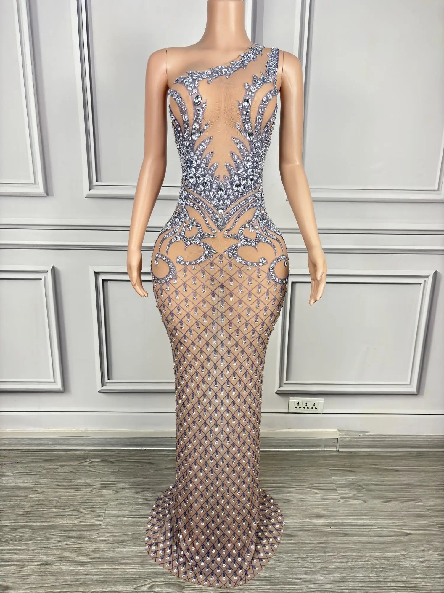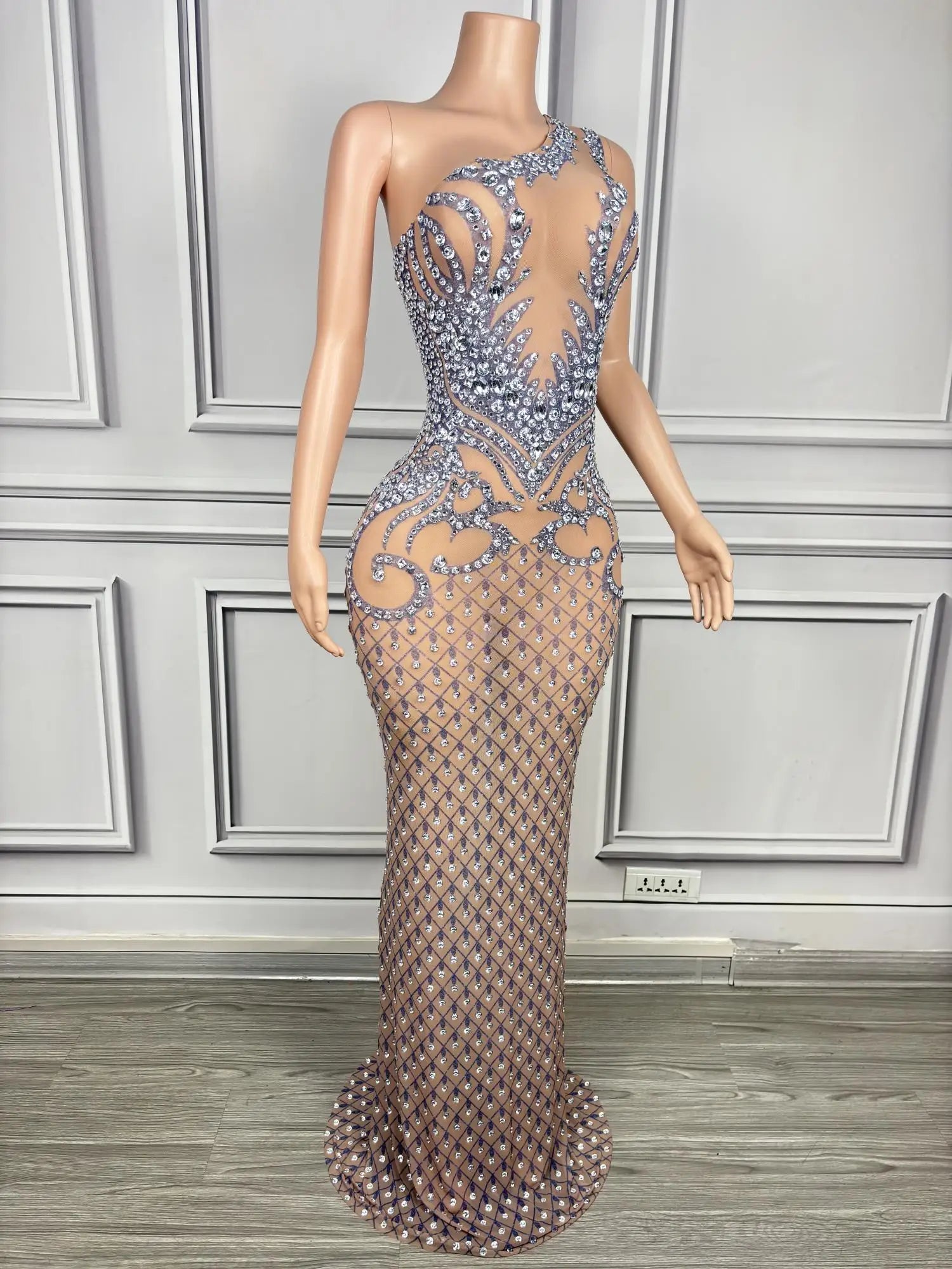 Celebrity Evening Party Luxury Diamond Tight Maxi Bandage Dress for Women Black Girls Sexy Nightclub Birthday Party Gowns