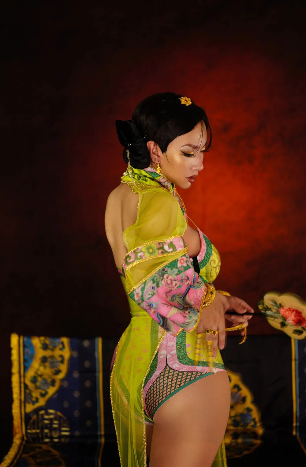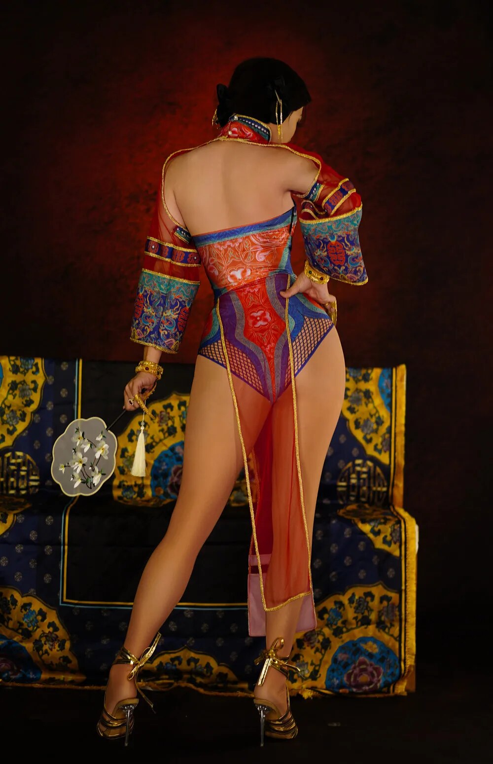 Chinese Style Ancient Women Floral Cosplay Costumes Sexy Nightclub Party Bodysuits Vintage Dancer Leotard Singer Stage Costumes