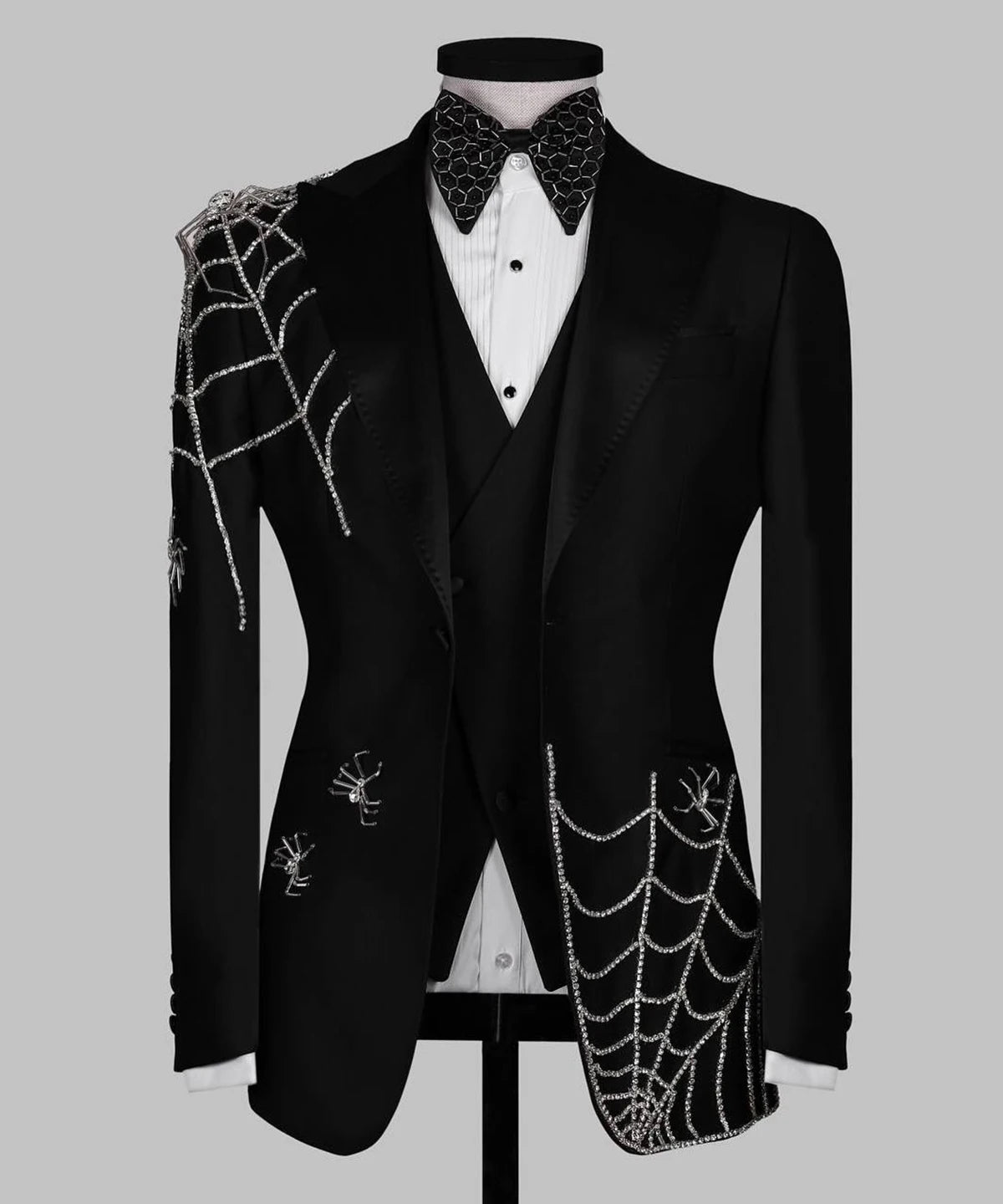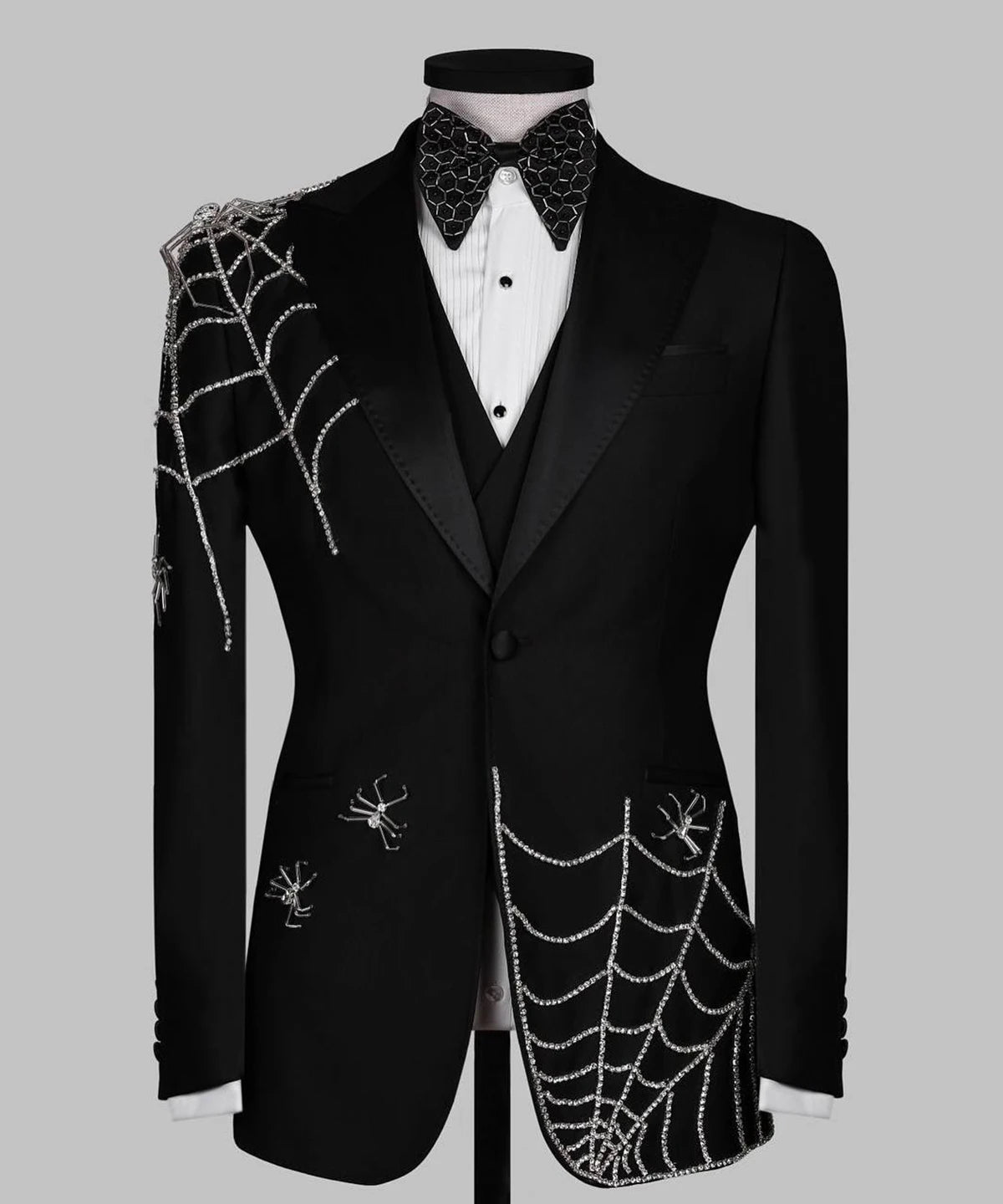 Classic Men Suits Tailor-Made 2 Pieces Set Peaked Lapel Jacket Rhinestone Blazer One Button Groom Customized Coat Vest Pants