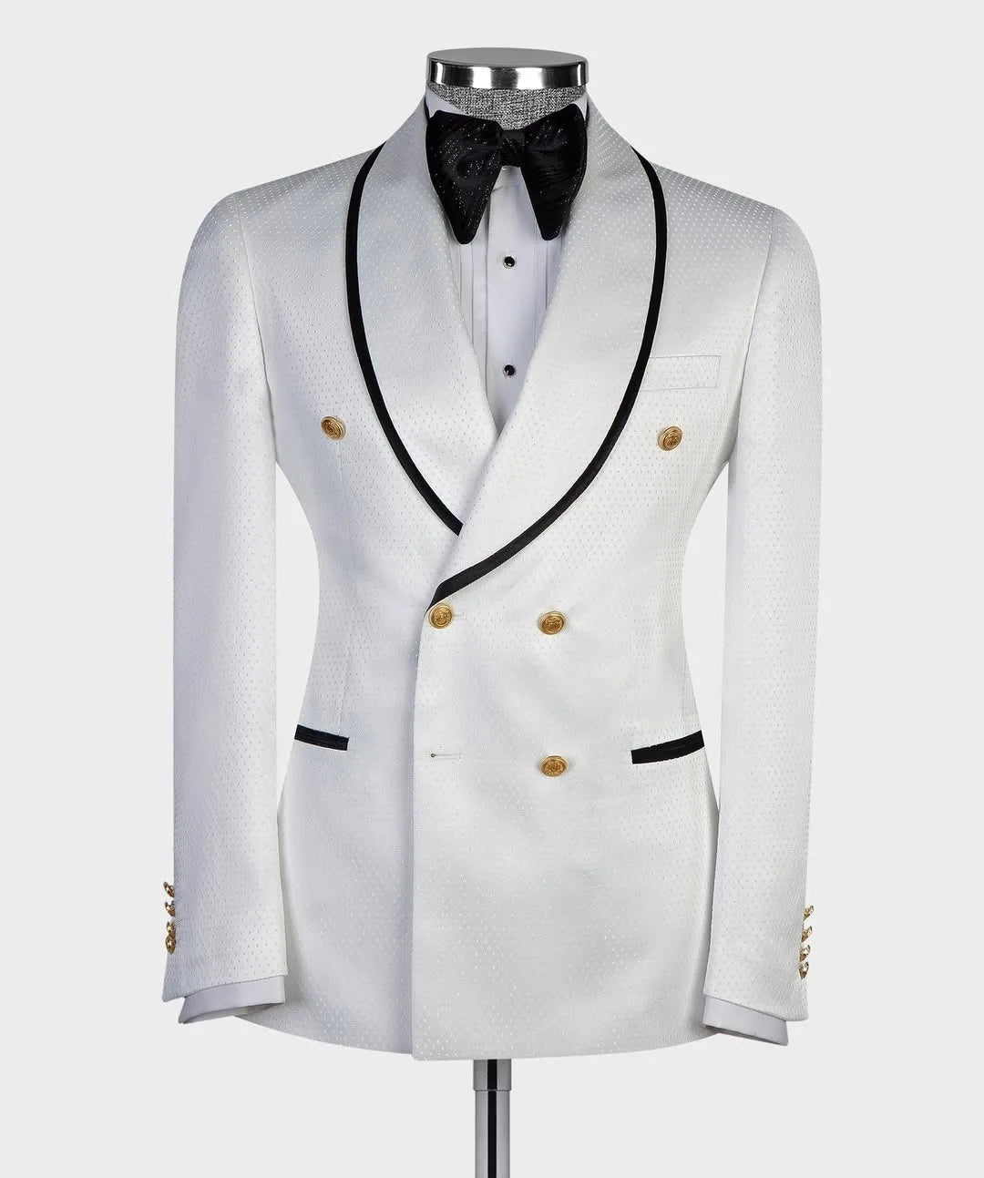 Create a timeless, refined look with this slim‑fit, tailor‑made 2‑piece set: a double‑breasted shawl‑lapel blazer paired with perfectly cut trousers. Designed for weddings, proms, and evening events, this set emphasizes clean lines, modern tailoring, and customizable details to deliver a flattering, camera‑ready silhouette.