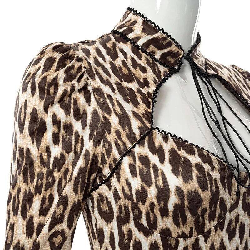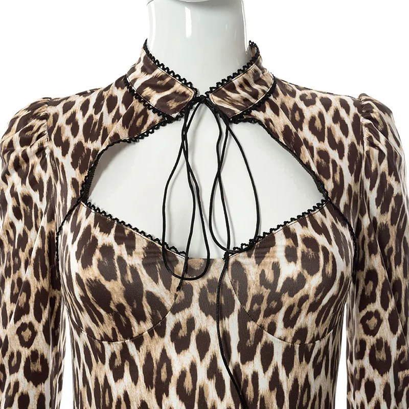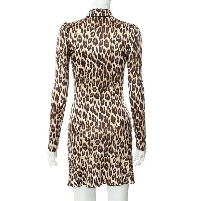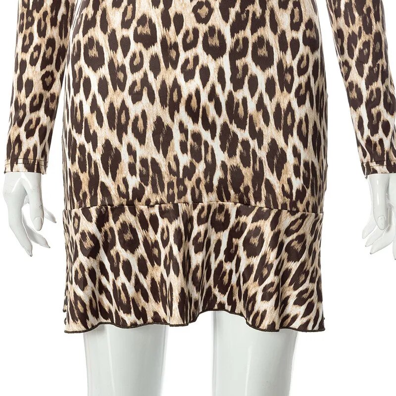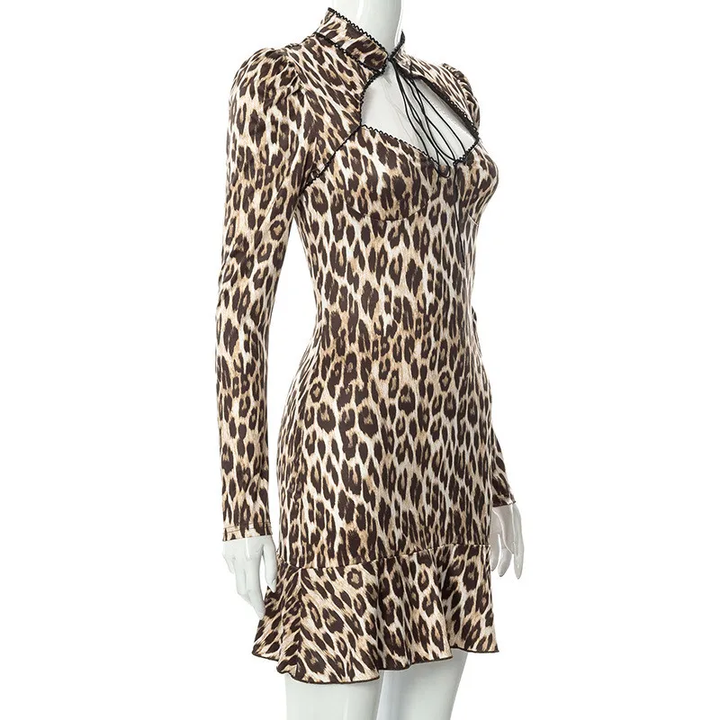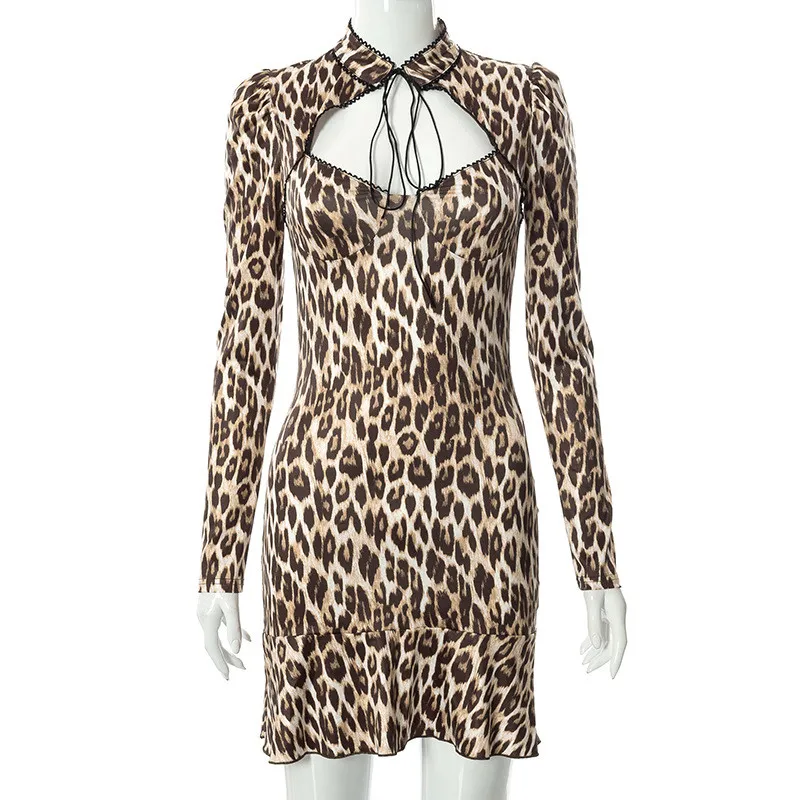 Sexy High Street Leopard Dress Women Baddie Clothes Winter Midnight Clubwera Dresses Women Cut Out Dress Vestidos