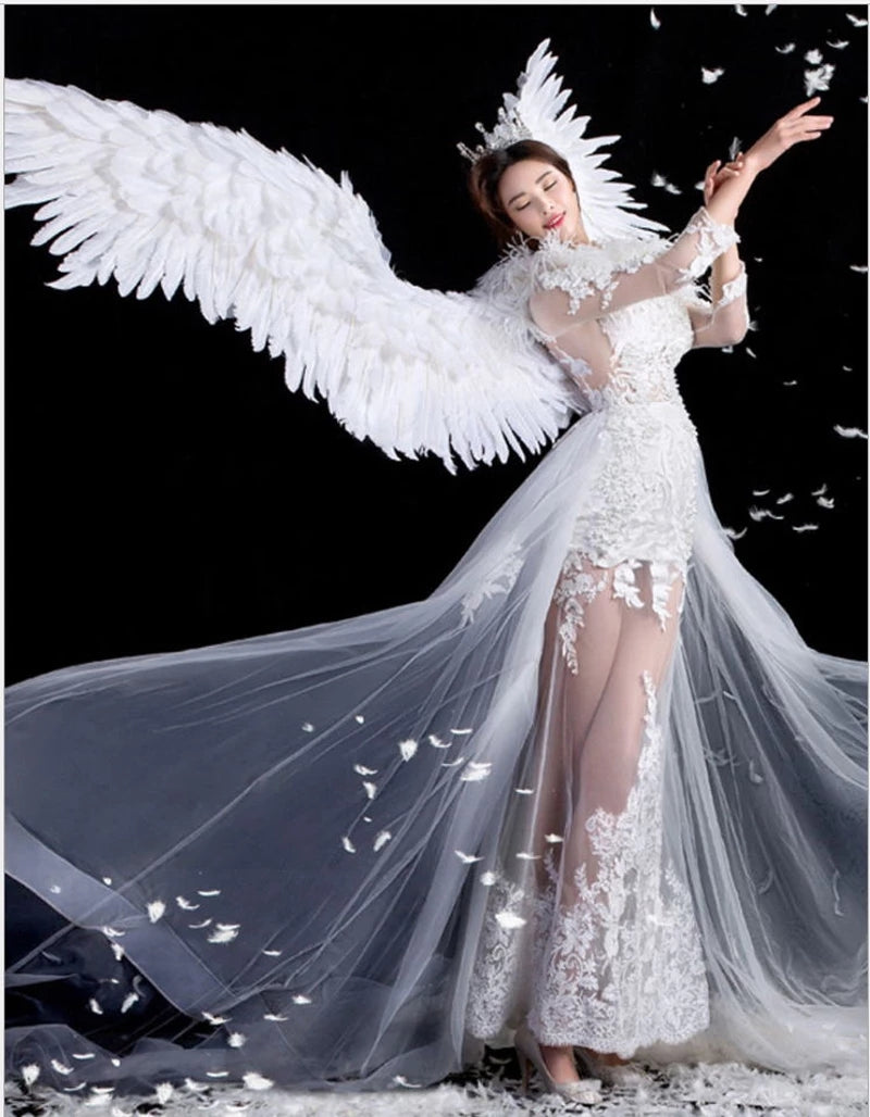 Cosplay Pure White Angel Feather Wing Adult Model Runway Underwear Show Shooting Props Festival Party Wings Christmas Wedding