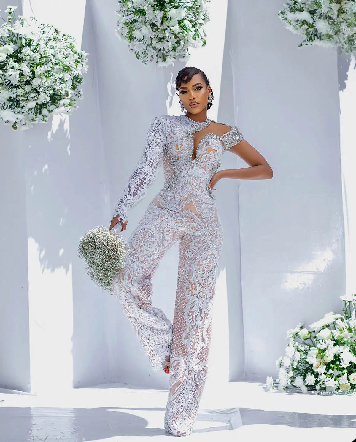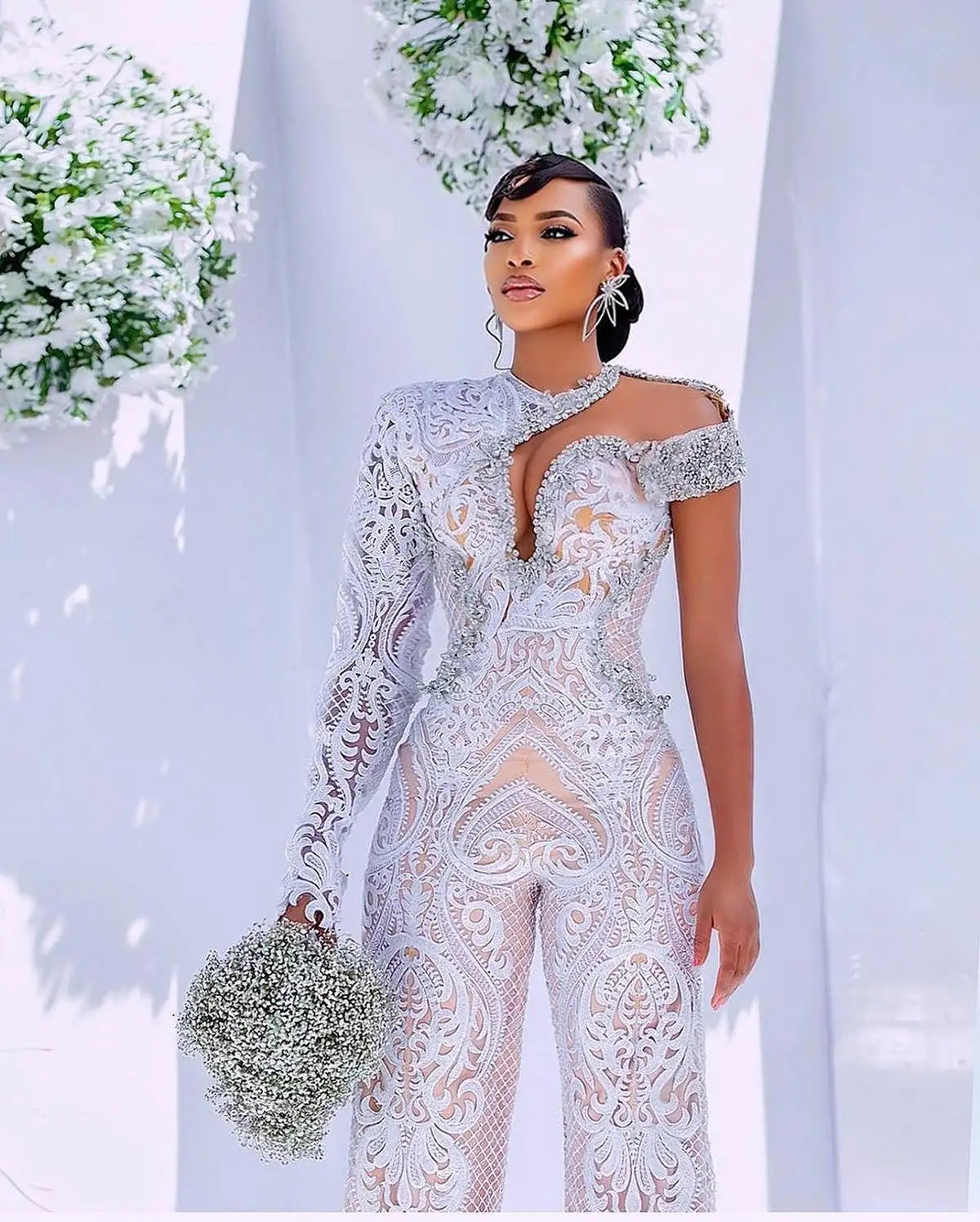 Step into elegance with our Country Wedding Jumpsuit, designed for the modern bride. This stunning piece features a sophisticated one-shoulder silhouette, beautifully embellished with intricate beading and delicate lace accents. The long sleeves add a touch of grace, making it perfect for any season. Ideal for brides seeking a unique and stylish alternative to traditional gowns, this jumpsuit combines comfort and elegance, ensuring you look and feel your best on your special day.
