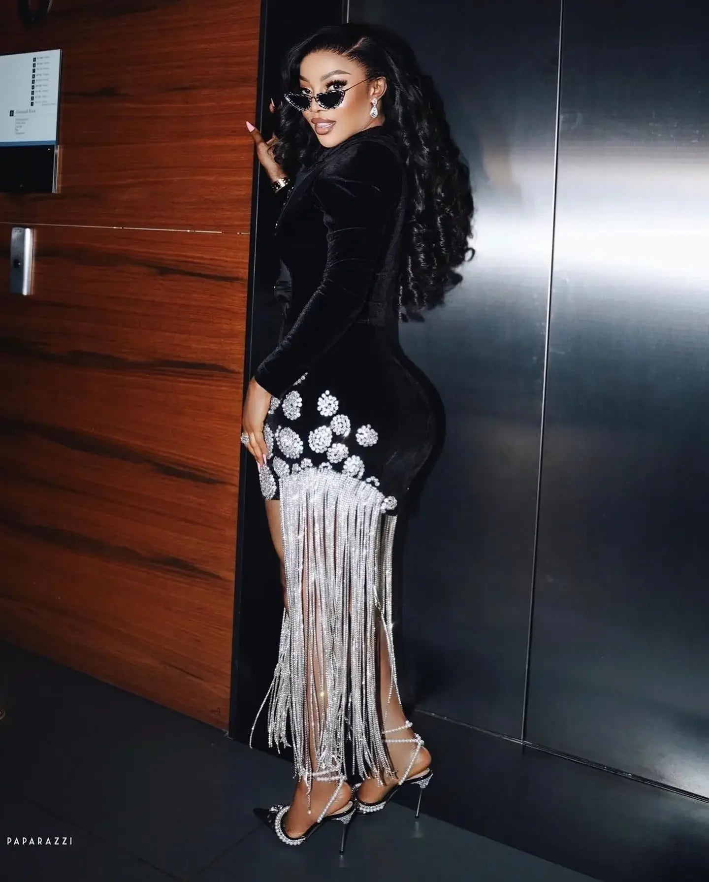 Couture Black Tassel Beaded Women Blazer Dresses Full Sleeves Sparkle Crystal Sheath Mini Maxi Dresses Fashion Female Dress