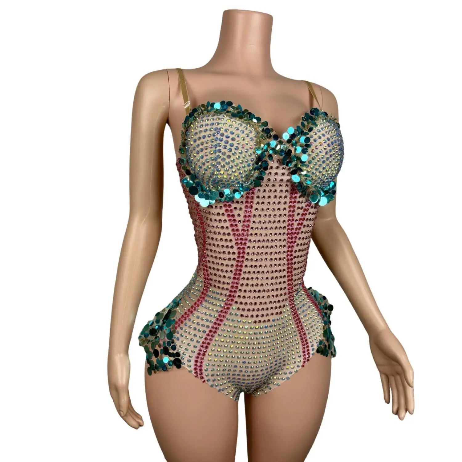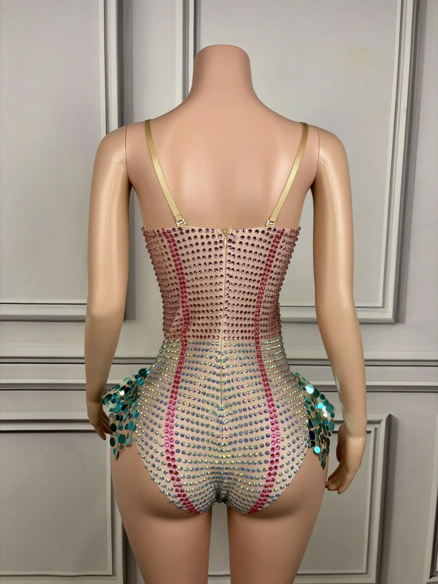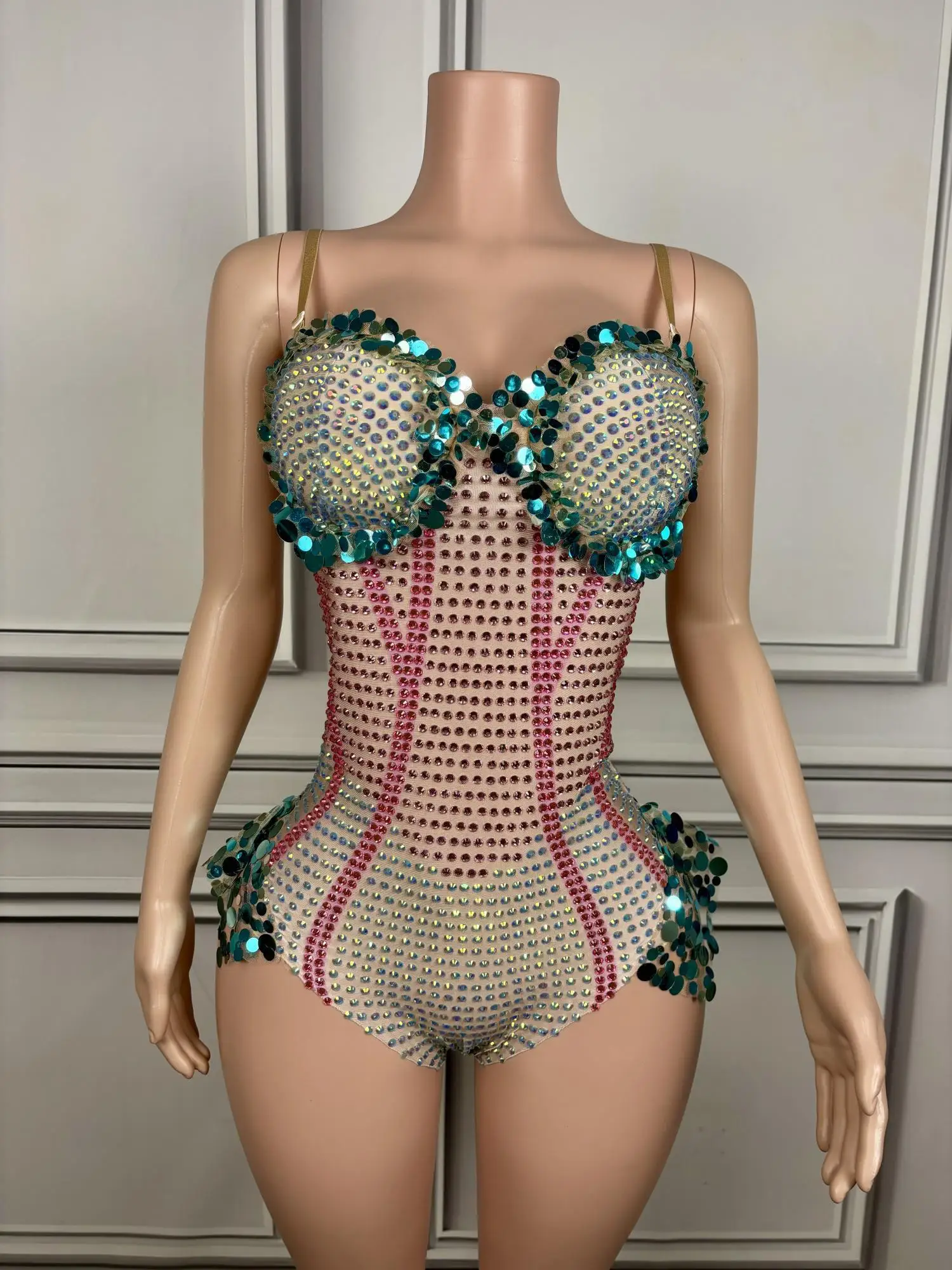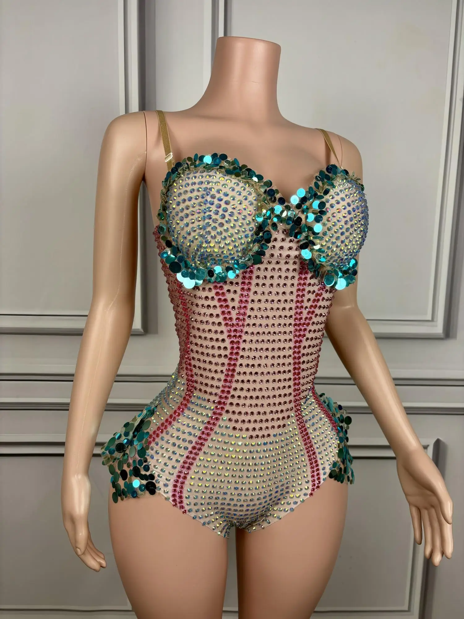 Crystals Sequins Bodysuit Sexy Leotard Jazz Dance Costume One-piece Stage Wear Dancer Performance Show Clothing Shatanpaidui