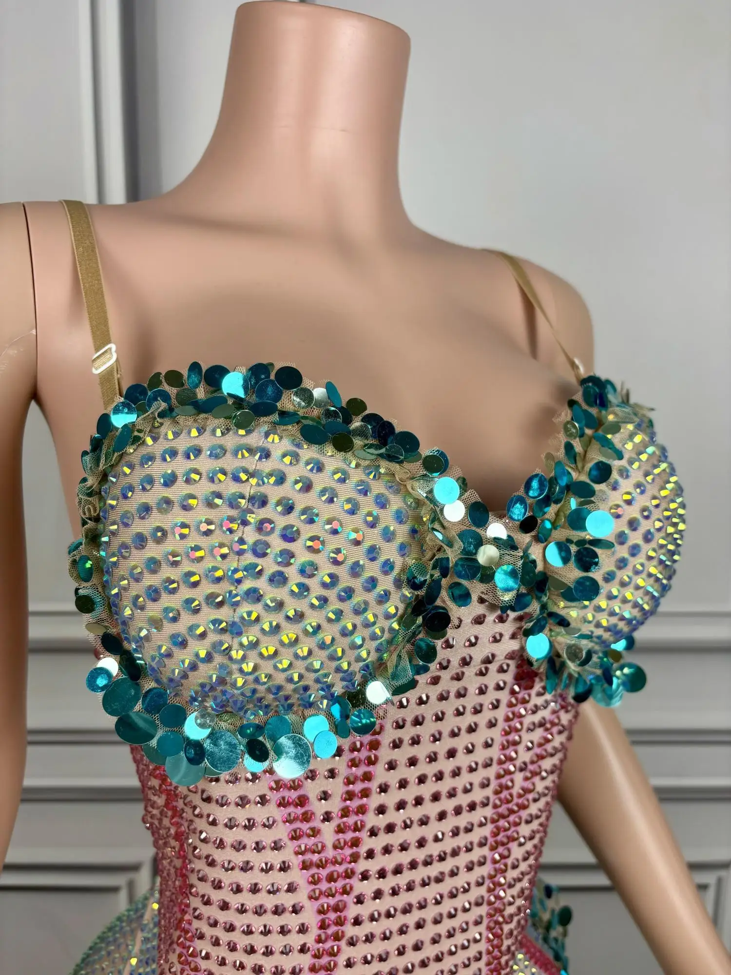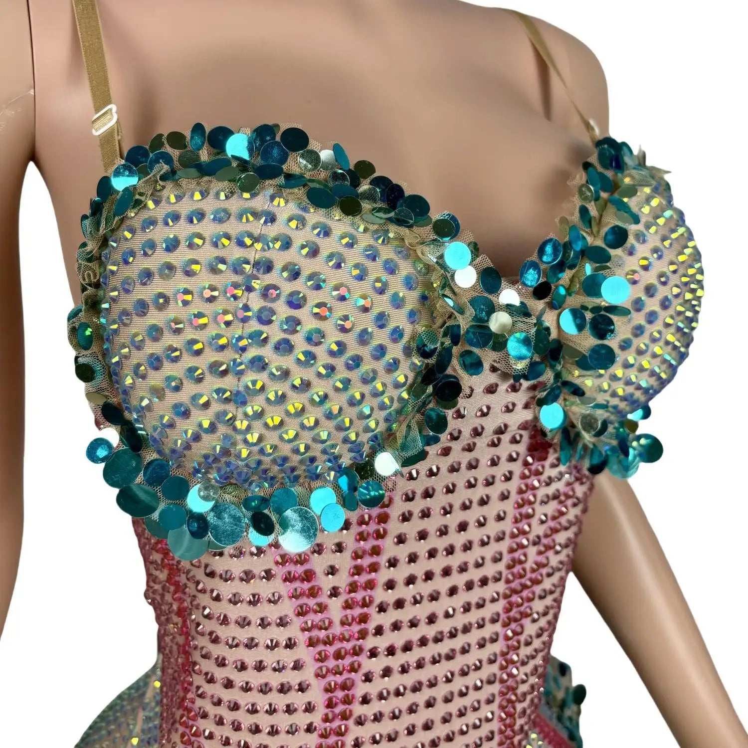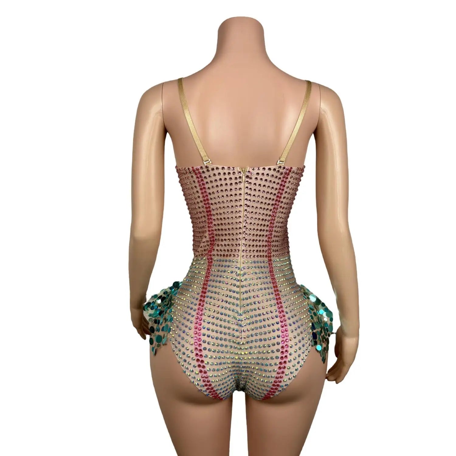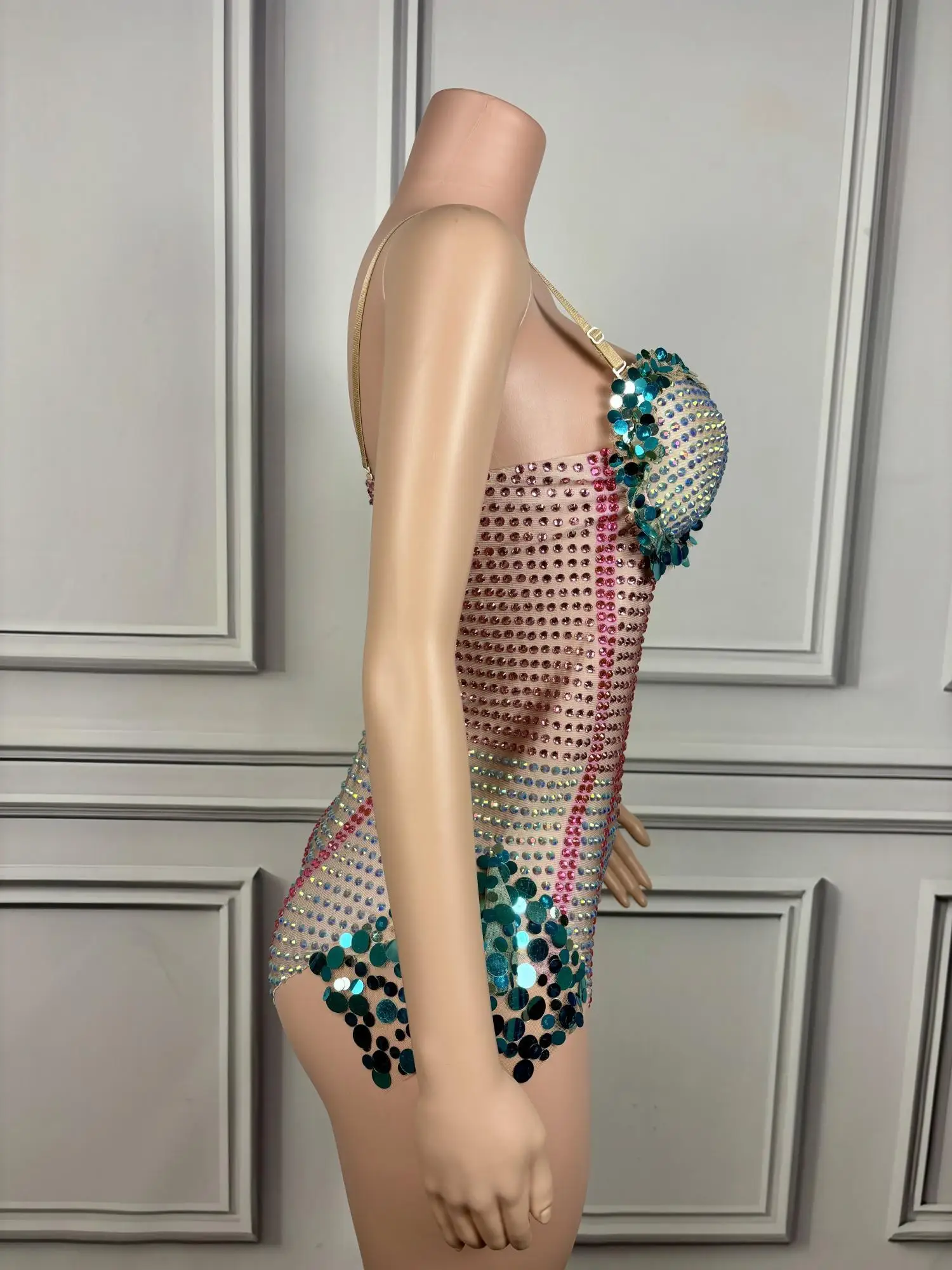 Crystals Sequins Bodysuit Sexy Leotard Jazz Dance Costume One-piece Stage Wear Dancer Performance Show Clothing Shatanpaidui