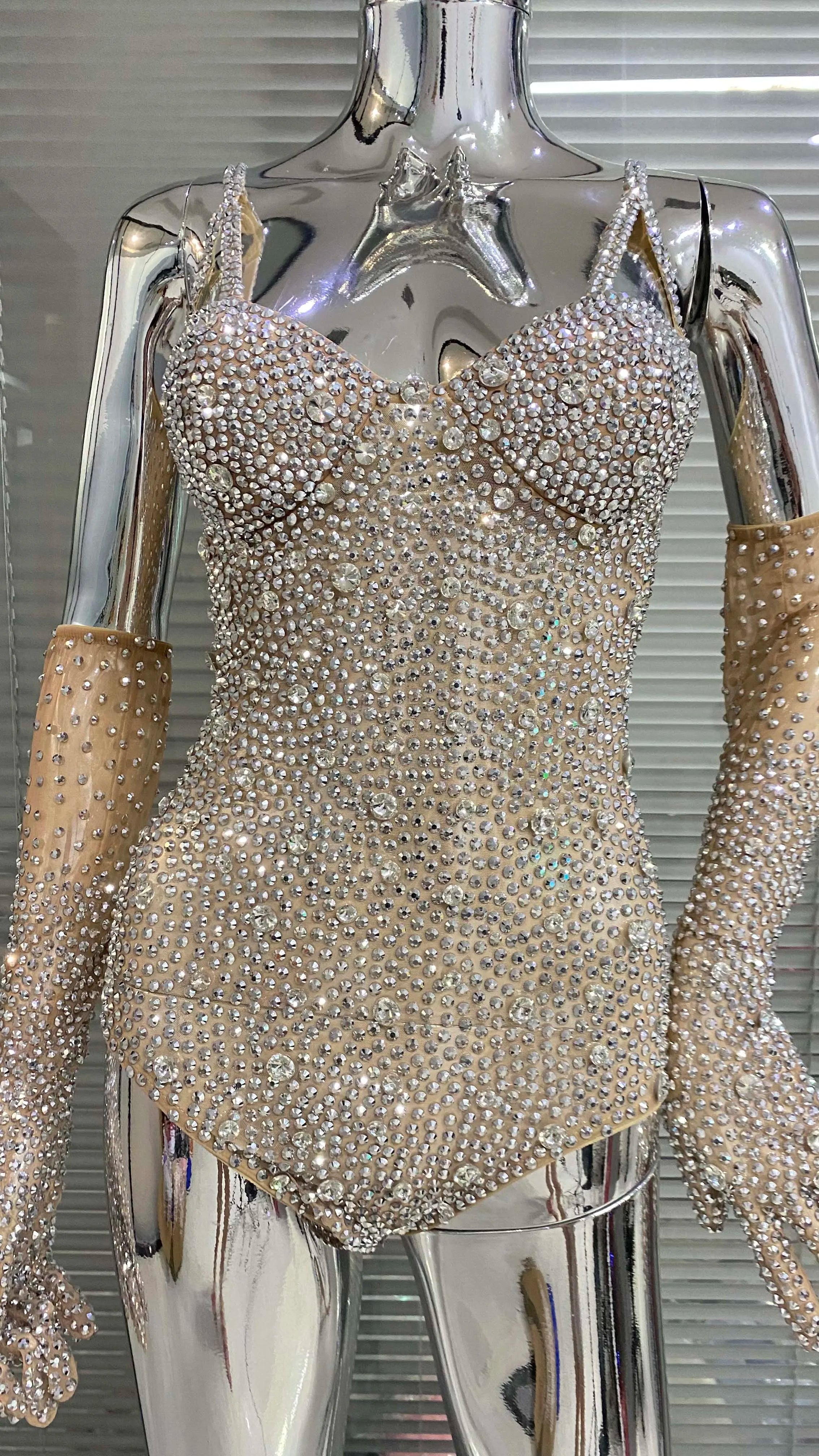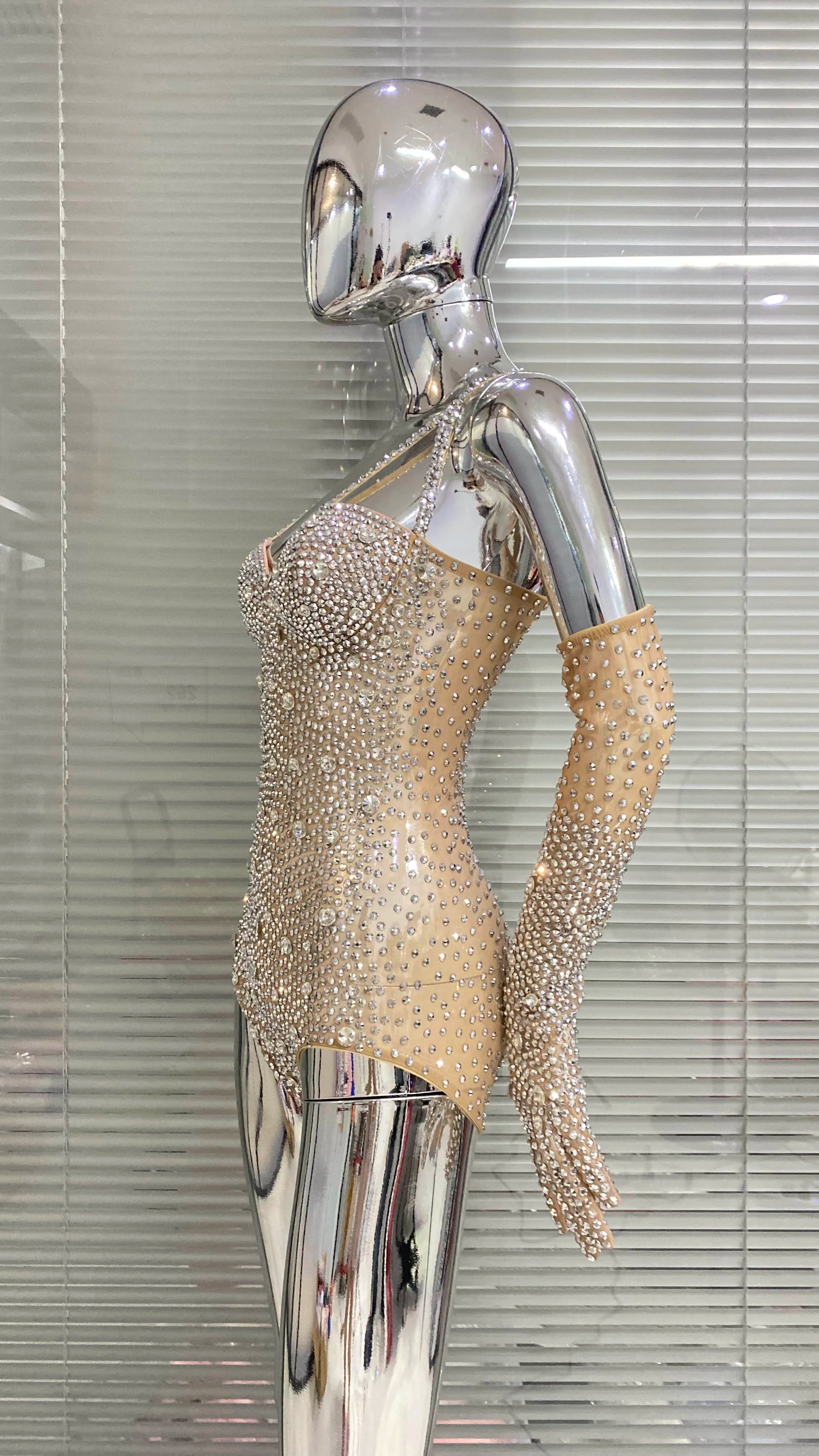 Shine and move with confidence in this customized high‑shoulder mesh lace dress, richly embellished with sequins and engineered with high‑elastic fabric for a snug, performance‑ready fit. Designed for birthday celebrations, stage performances, and nightclub appearances, the transparent lace and strategic lining deliver a sexy yet polished silhouette.