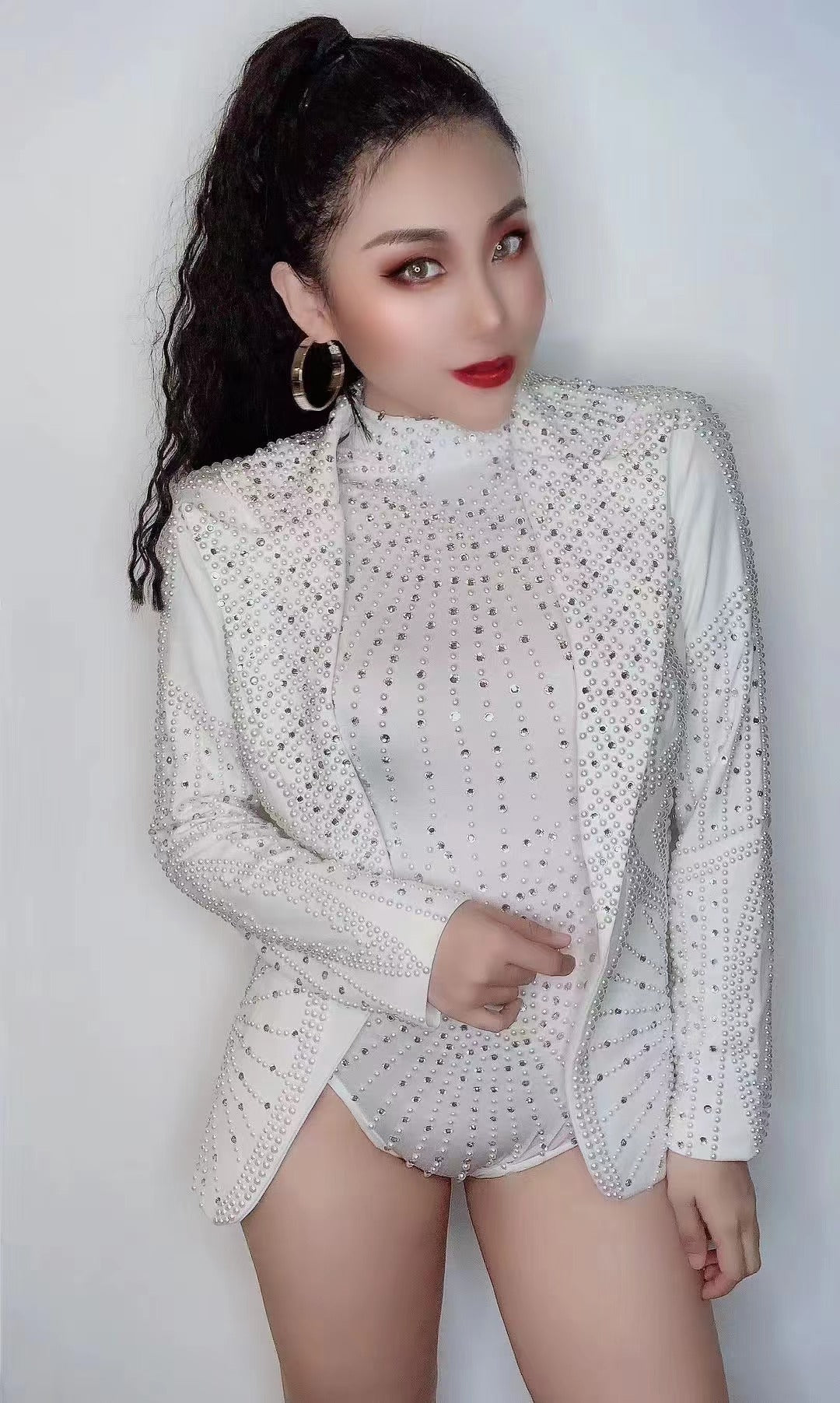 Da Bai Man Diamond Suit Coat Man Tian Xing Heavy Industry High Collar Sleeveless Bodysuit Night Club Bar Performance Dress