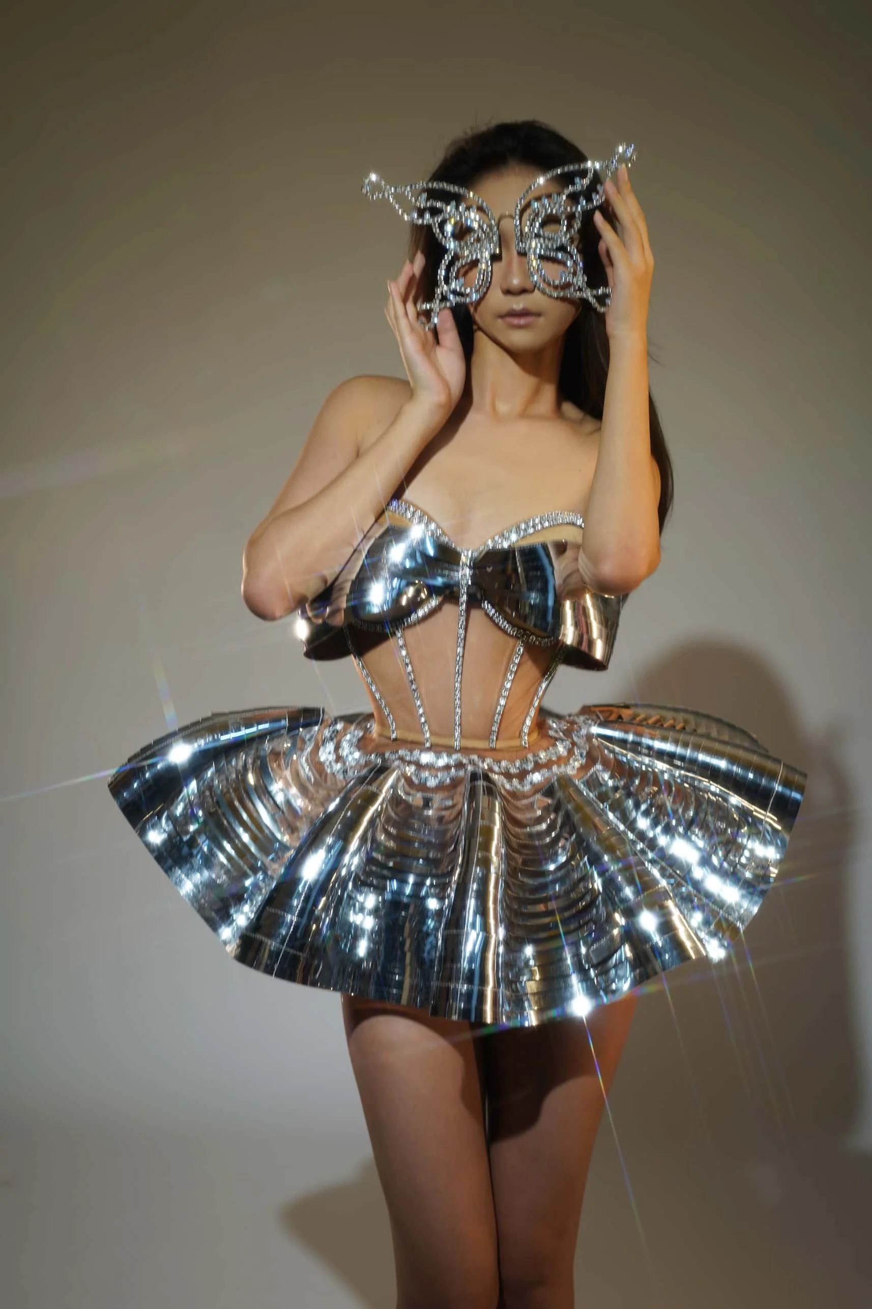 Designer Silver Sequins Party Club Costumes Women Sexy Top and Skirt Stage 2-Piece Outfit Sets Dancer Performance Clothes Feidie