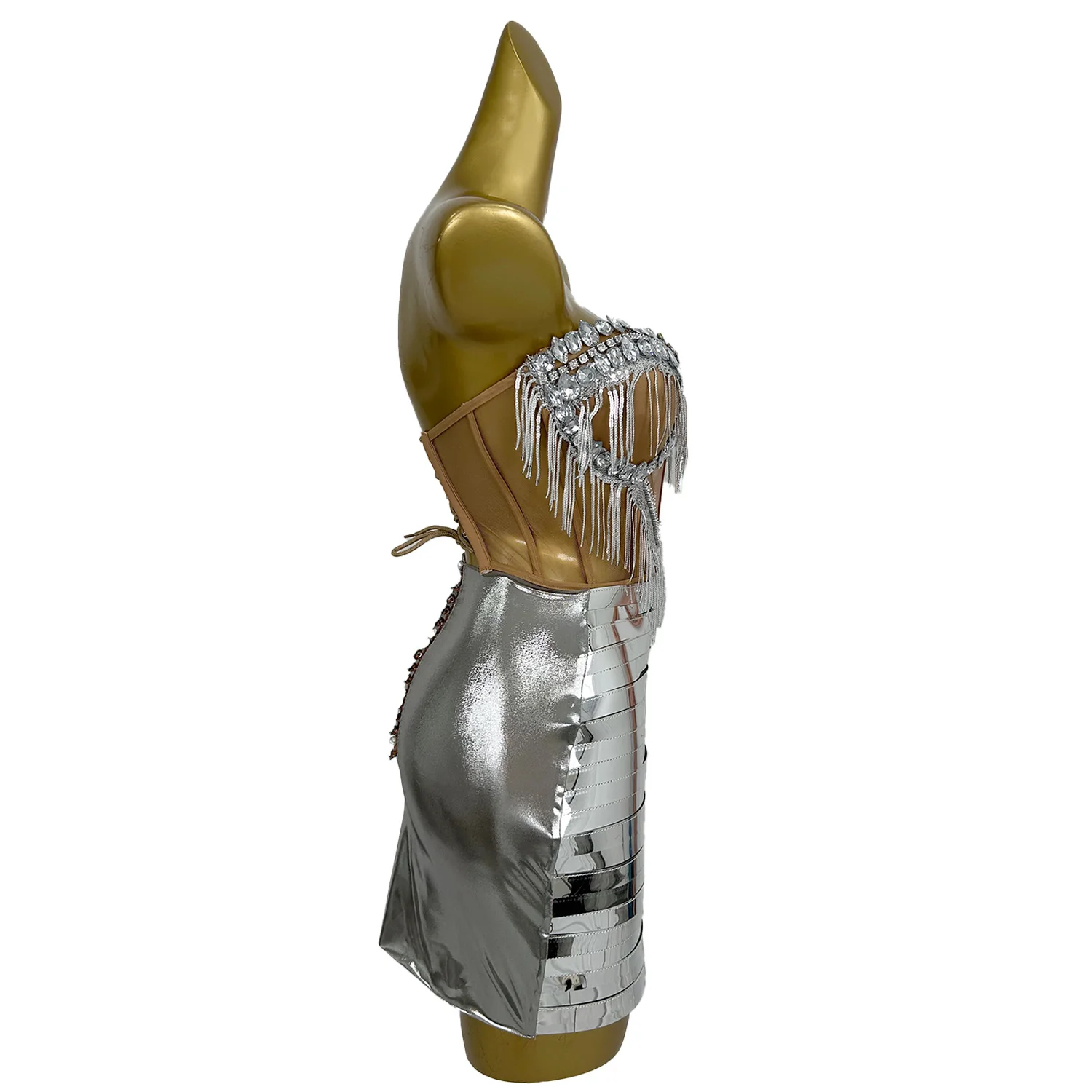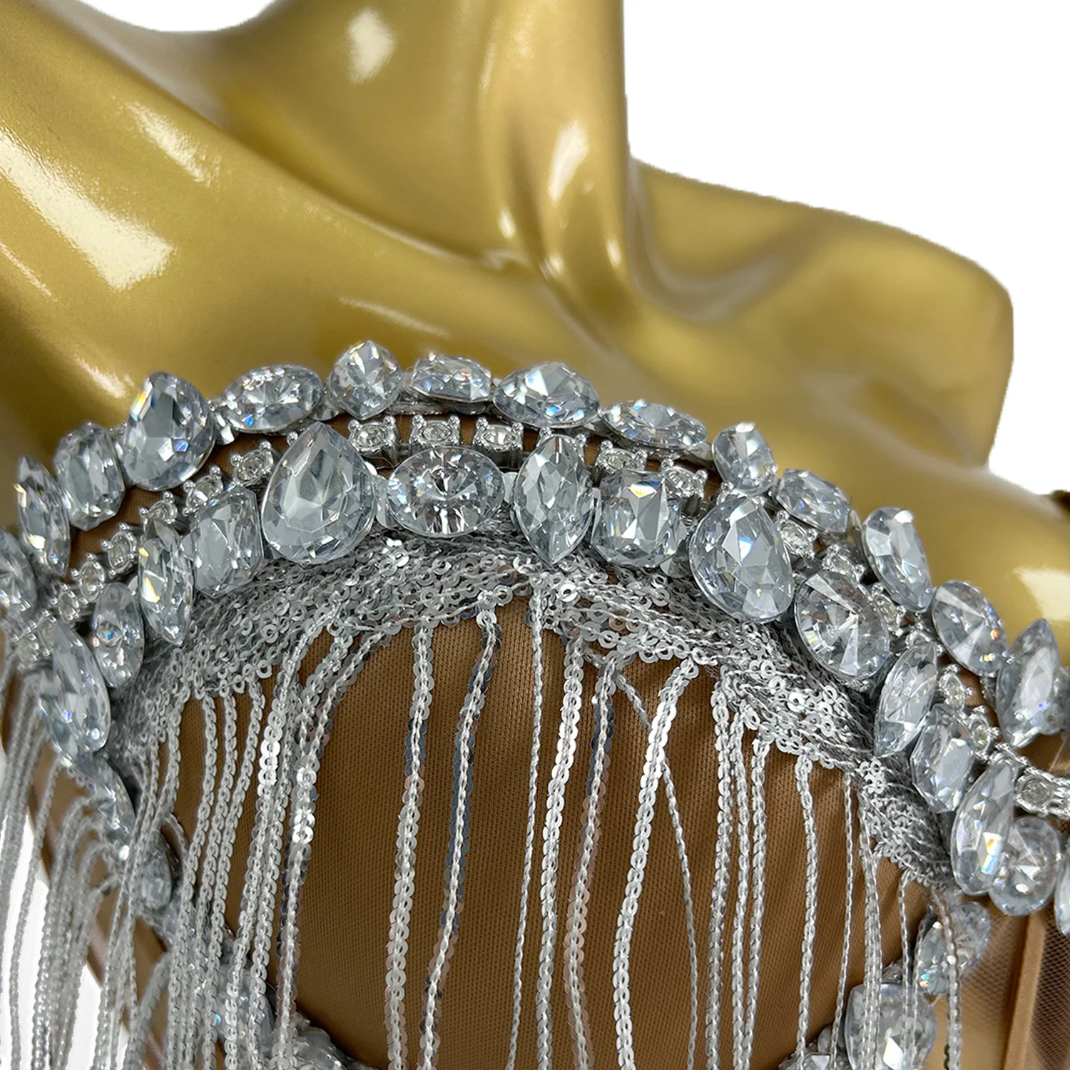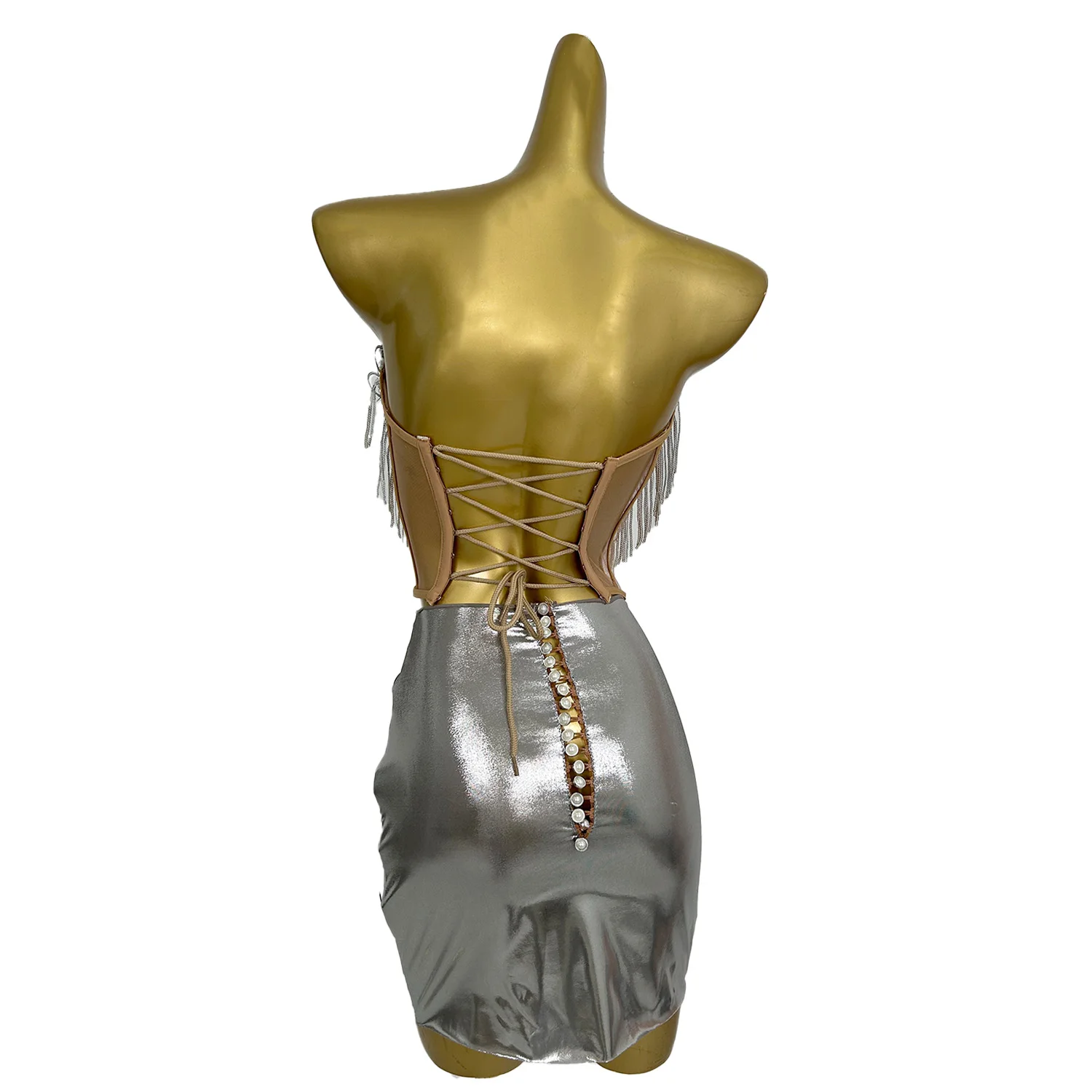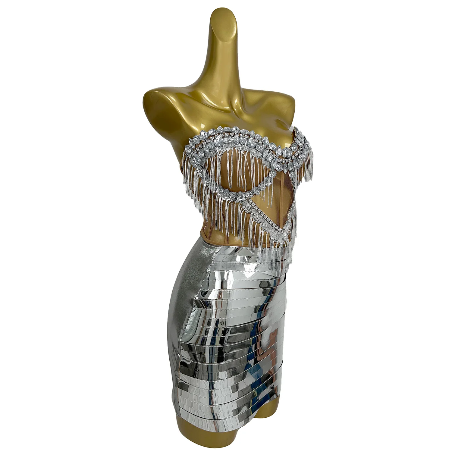 Designer Silver Sequins Party Club Dress Women Sexy Top and Skirt Stage 2-Piece Outfit Sets Dancer Performance Clothes Shengnv