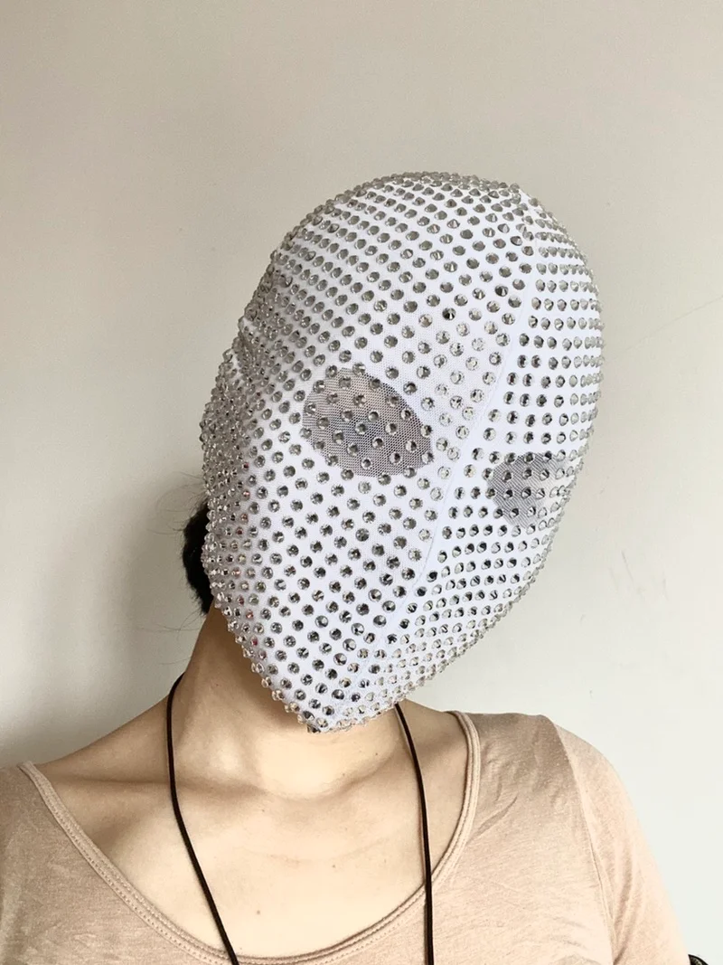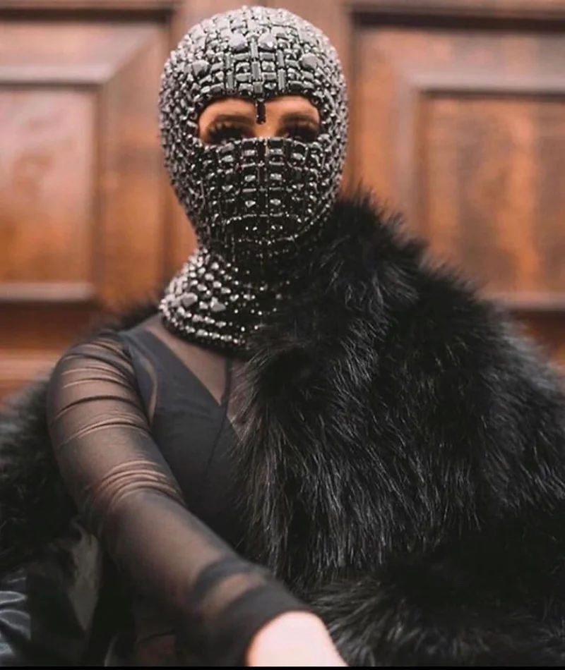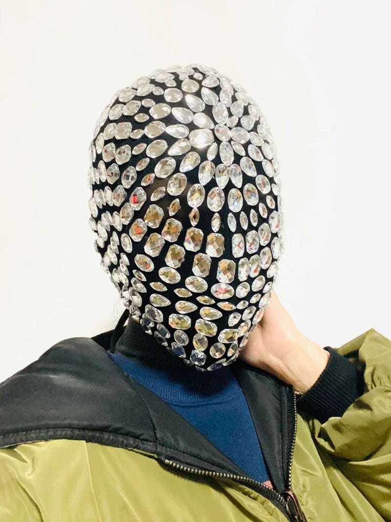 Shine bright like a diamond with this Diamond Punk Full Face Mask, a dazzling and stylish accessory that adds a touch of glamour to your party ensemble. Perfect for cosplay, DJ performances, dance nights, nightclubs, anonymous gatherings, rave parties, and fashion events, this mask is sure to make you stand out in the crowd. Adorned with sparkling rhinestones and designed to catch the light and create a mesmerizing effect, this mask exudes luxury and sophistication. Whether you're looking to make a bold fashion statement or want to add a touch of mystery to your look, this Diamond Punk Mask is the perfect choice for those who love to make a statement. Command attention and exude confidence with this eye-catching headwear that promises to elevate your style and make you the star of the night. Embrace the allure of the unknown and step into the spotlight with this fashionable and edgy mask that is bound to turn heads and spark admiration.
