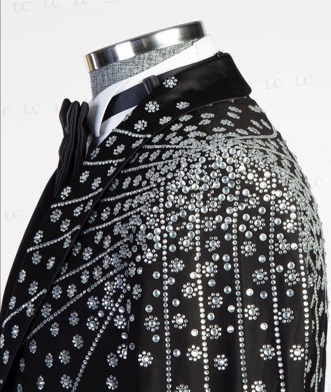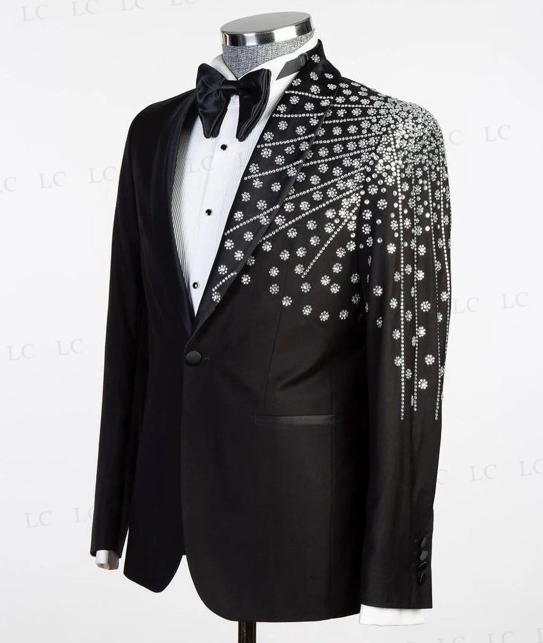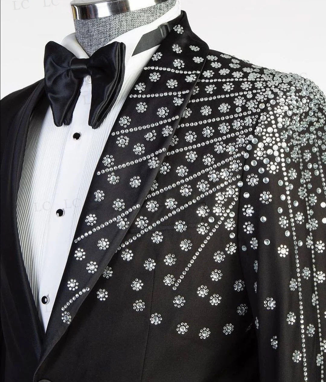 This men's suit set features a 2-piece ensemble with diamonds, crystals, and sparkly beadings on the blazer and pants. The one-button design exudes a touch of elegance and sophistication, making it perfect for prom, formal events, work wear, and special occasions. Available in plus sizes and tailored for a perfect fit, this suit is a stylish choice for men looking for a glamorous and tailored ensemble that will make a statement at any event.