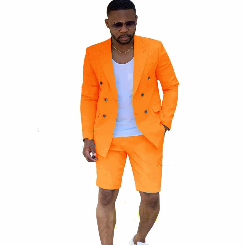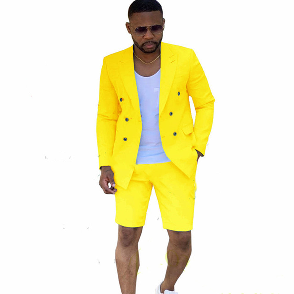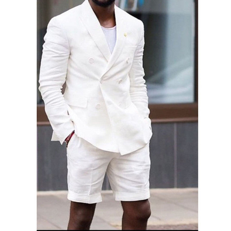 Double Breasted Men Suits Wedding Groom Tuxedo Costume Homme Summer Beach 2Pcs Terno Masculino Blazer Short Pant