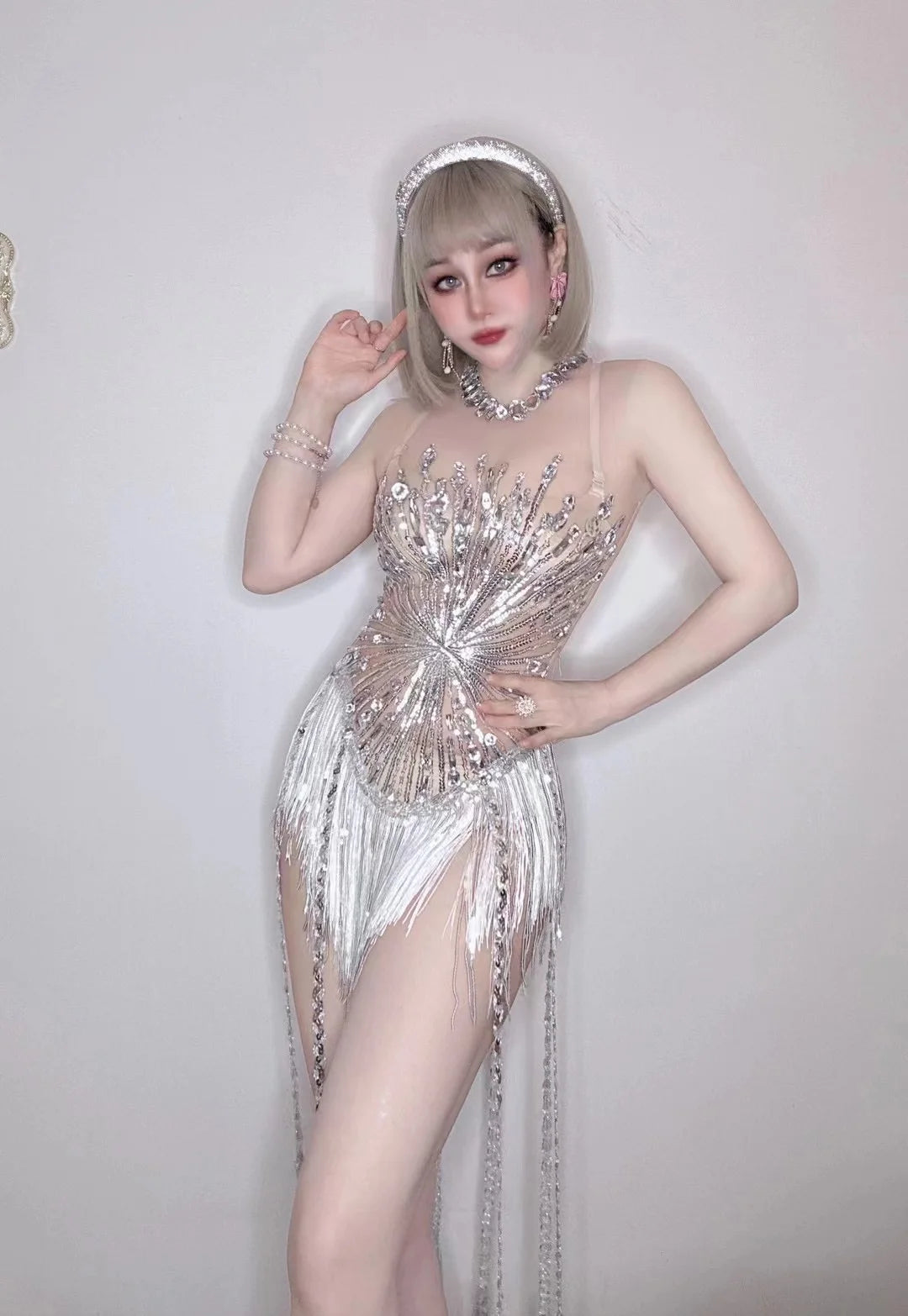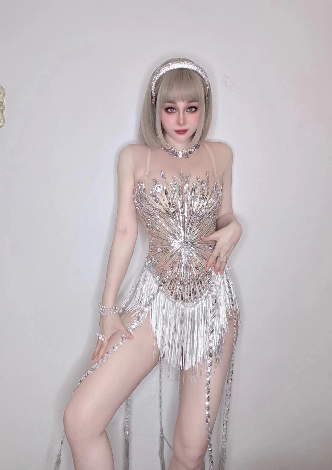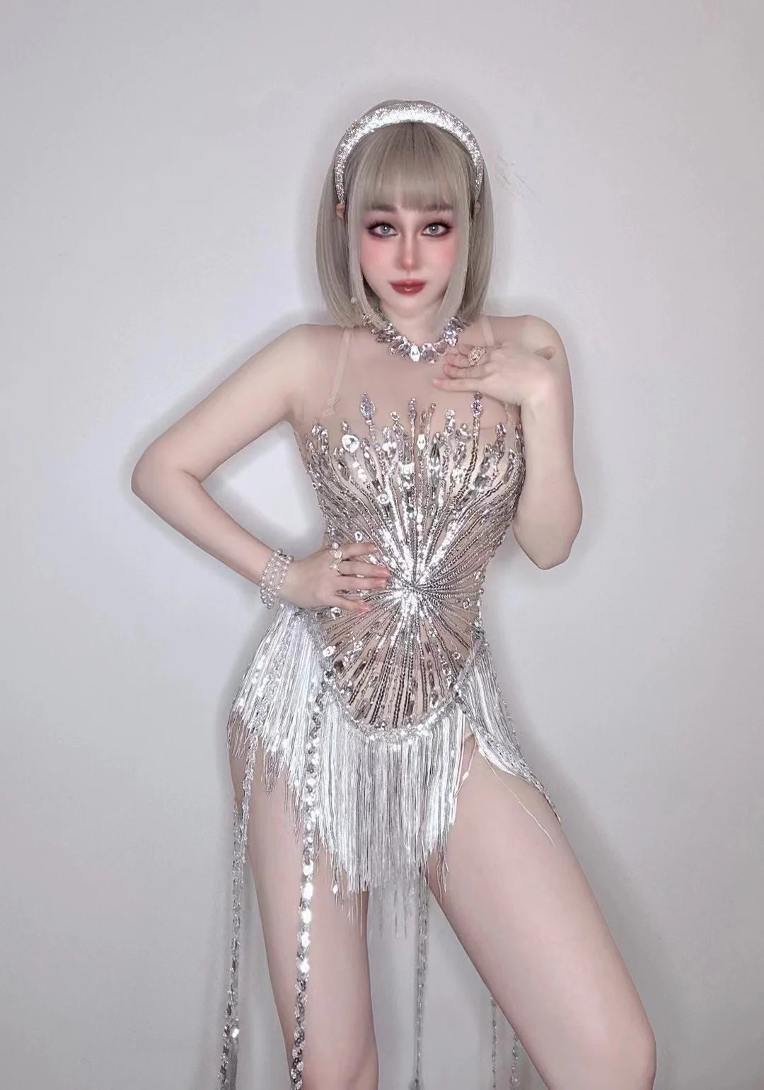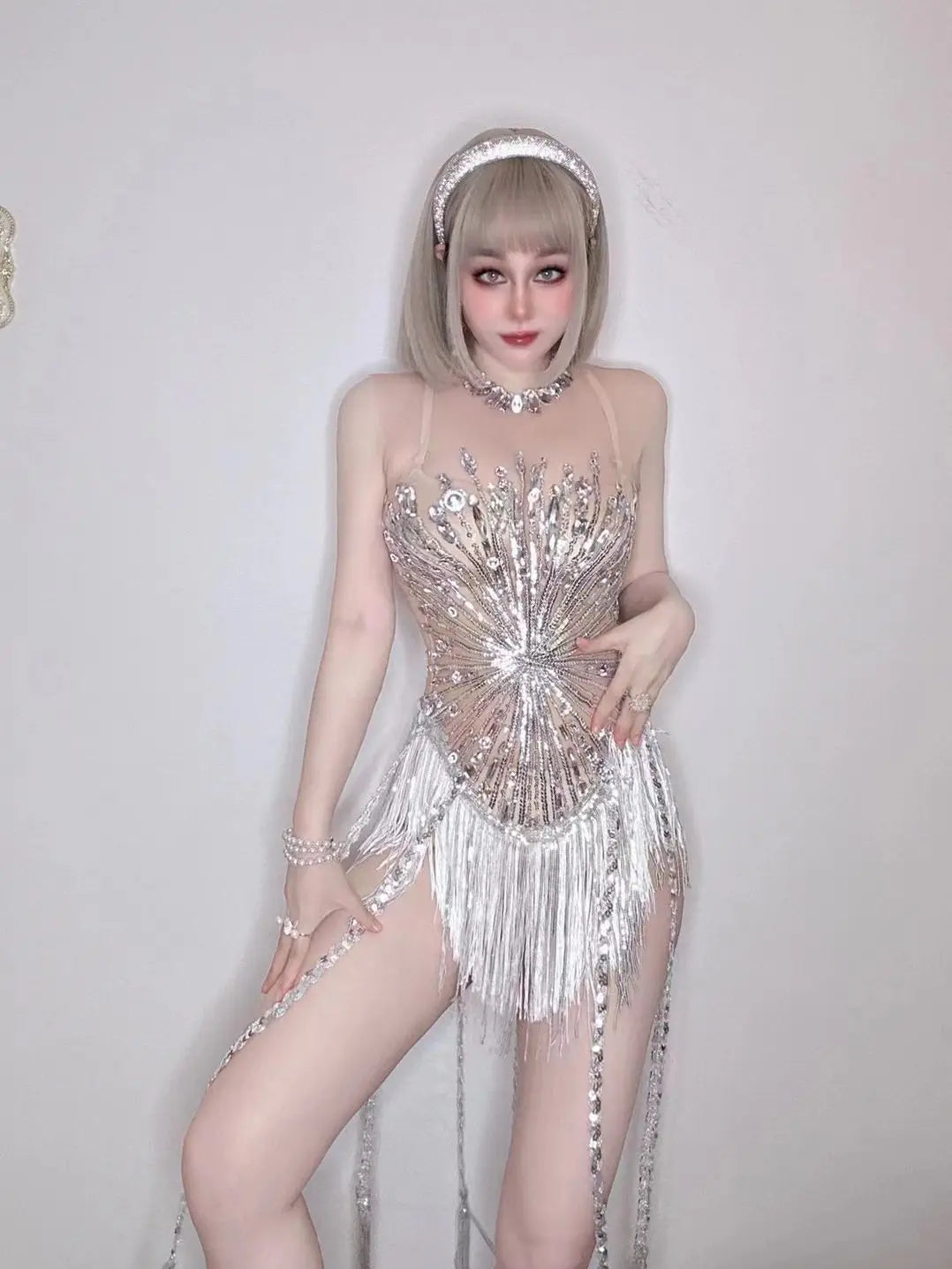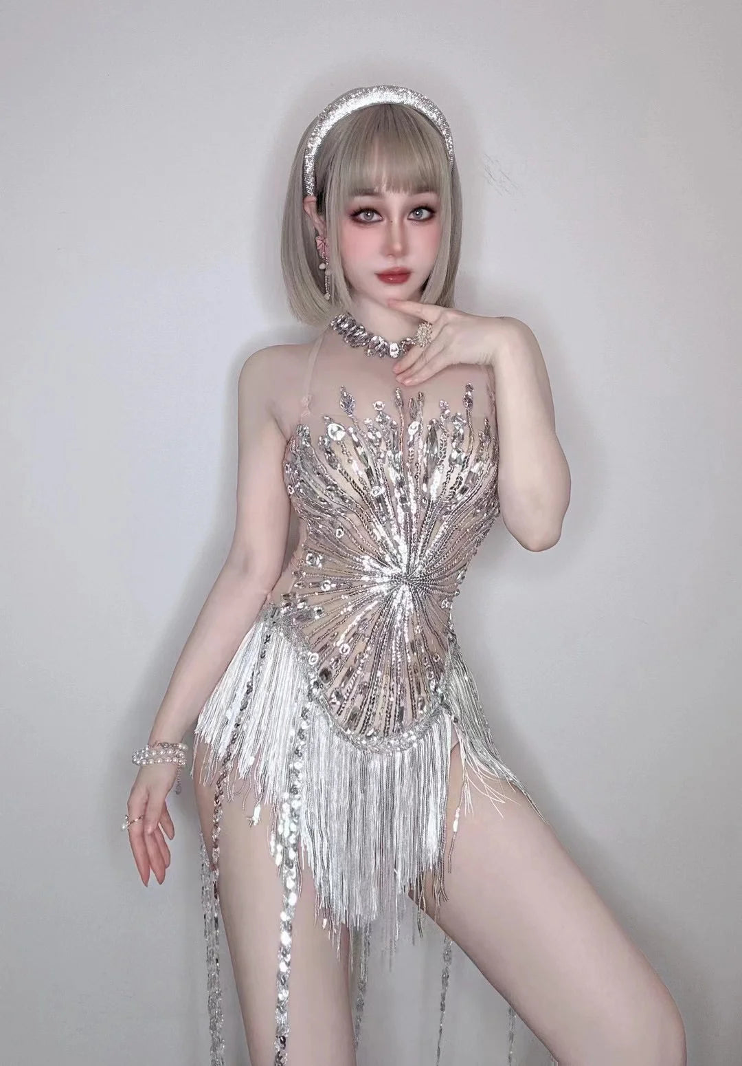 Step into the spotlight with our Dream Party Costume Store��s Full Drill Tassel Jumpsuit! This show-stopping outfit is designed for female performers, featuring dazzling full drill embellishments and flowing tassels that move beautifully with every step. Perfect for nightclub bars and live performances, this jumpsuit ensures you shine during every occasion. Whether you're a singer or a dancer, this costume will elevate your stage presence and captivate your audience!