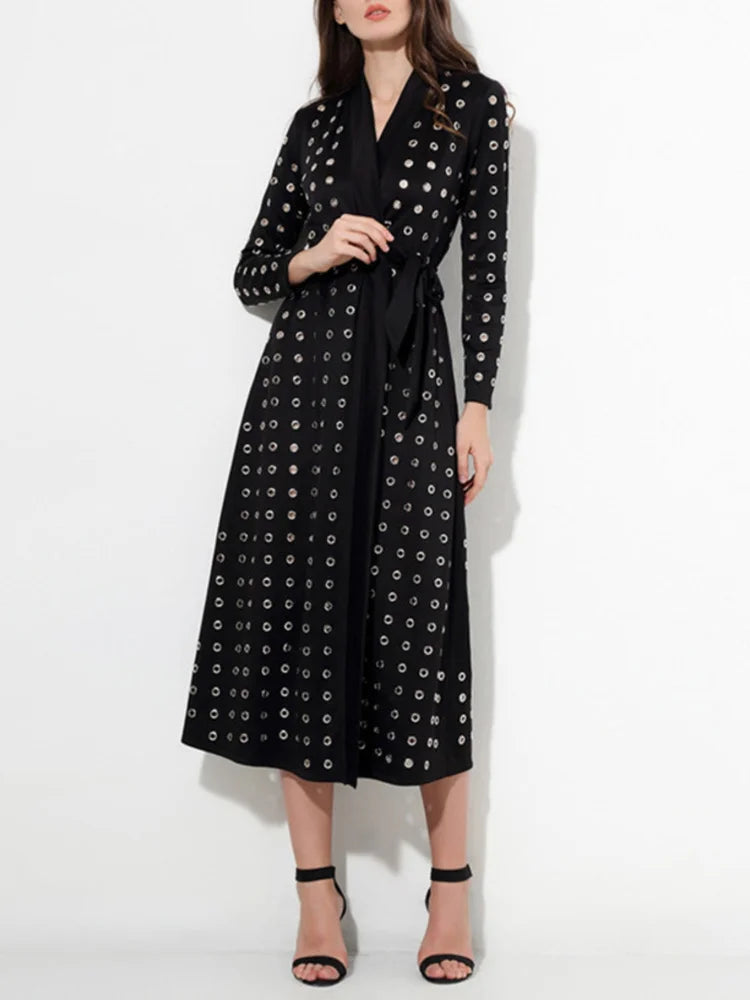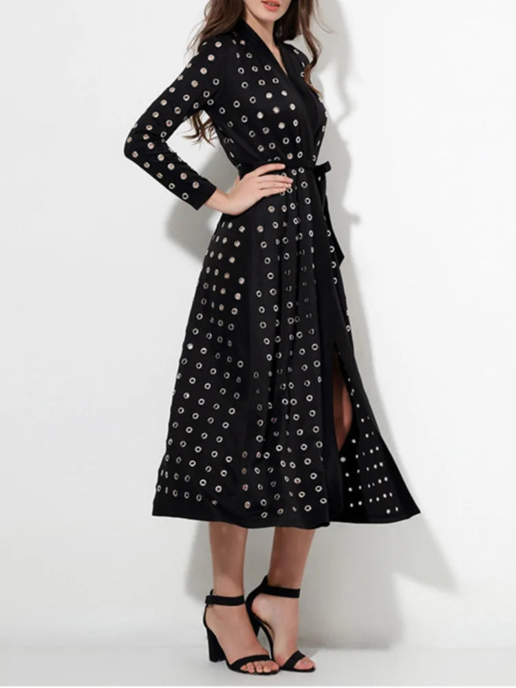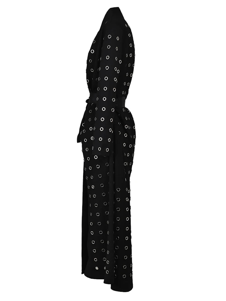 Stay stylish and chic with our Women’s Black Hollow Out Belted Long Trench. This fashionable windbreaker features a trendy V-neck design and long sleeves, making it perfect for spring and autumn. The belted waist adds a flattering silhouette, while the hollow-out details provide a contemporary touch. Ideal for layering over any outfit, this trench coat is a must-have addition to your wardrobe for both casual outings and more polished events!