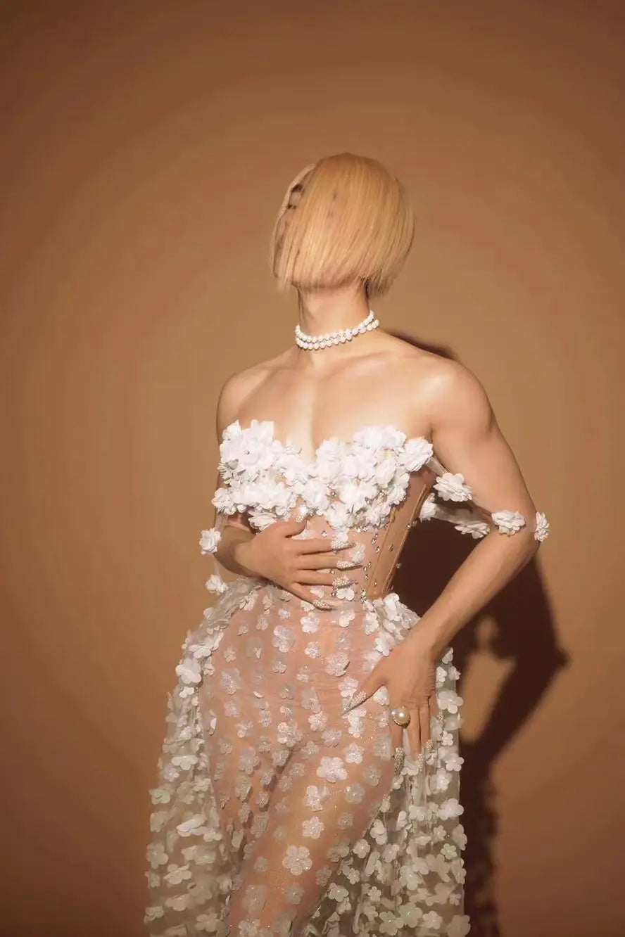 Elegant Flower Dress 2 Pieces Set Women Sexy Bandage Top Skirt Evening Prom Celebrate Birthday Dress Photoshoot Wear