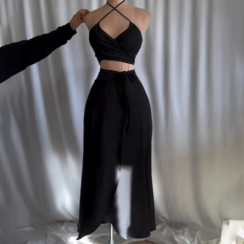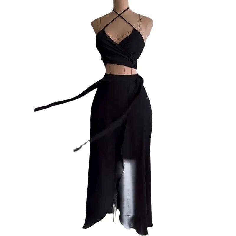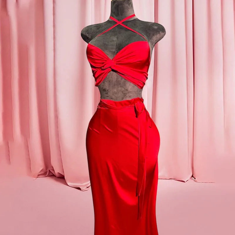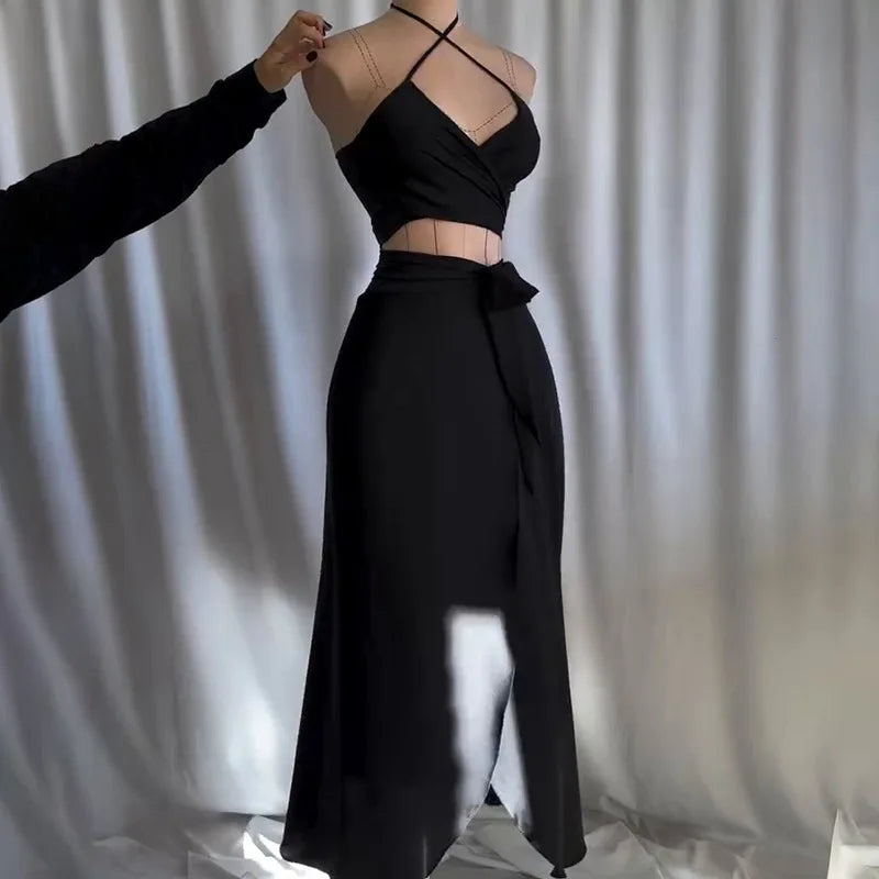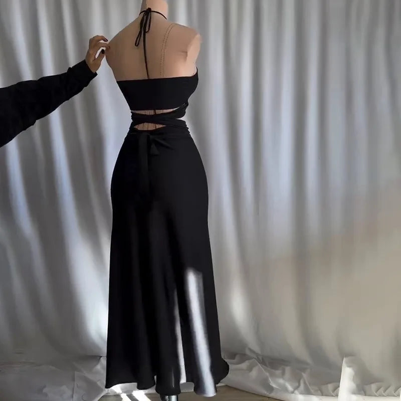 Elegant Leopard Long Dresses 2 Piece Sets Women Summer Holiday Sexy Bustier Crop Tops Maxi Skirts Suits Bohemian Beach Clubwear
