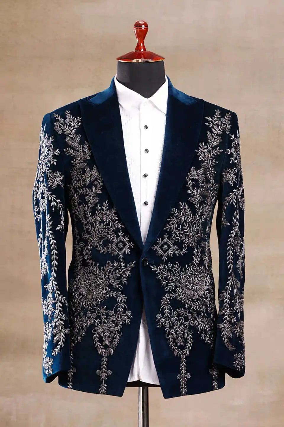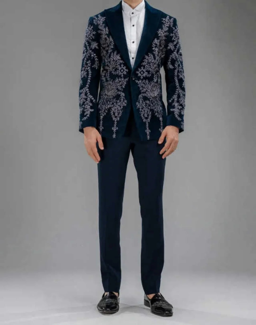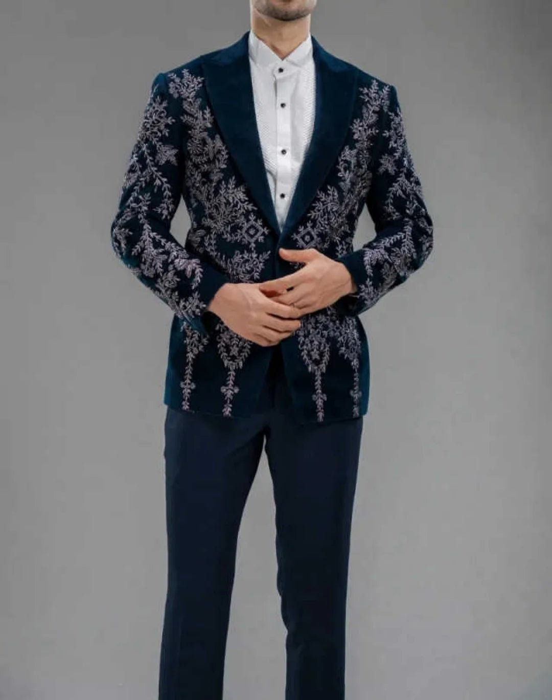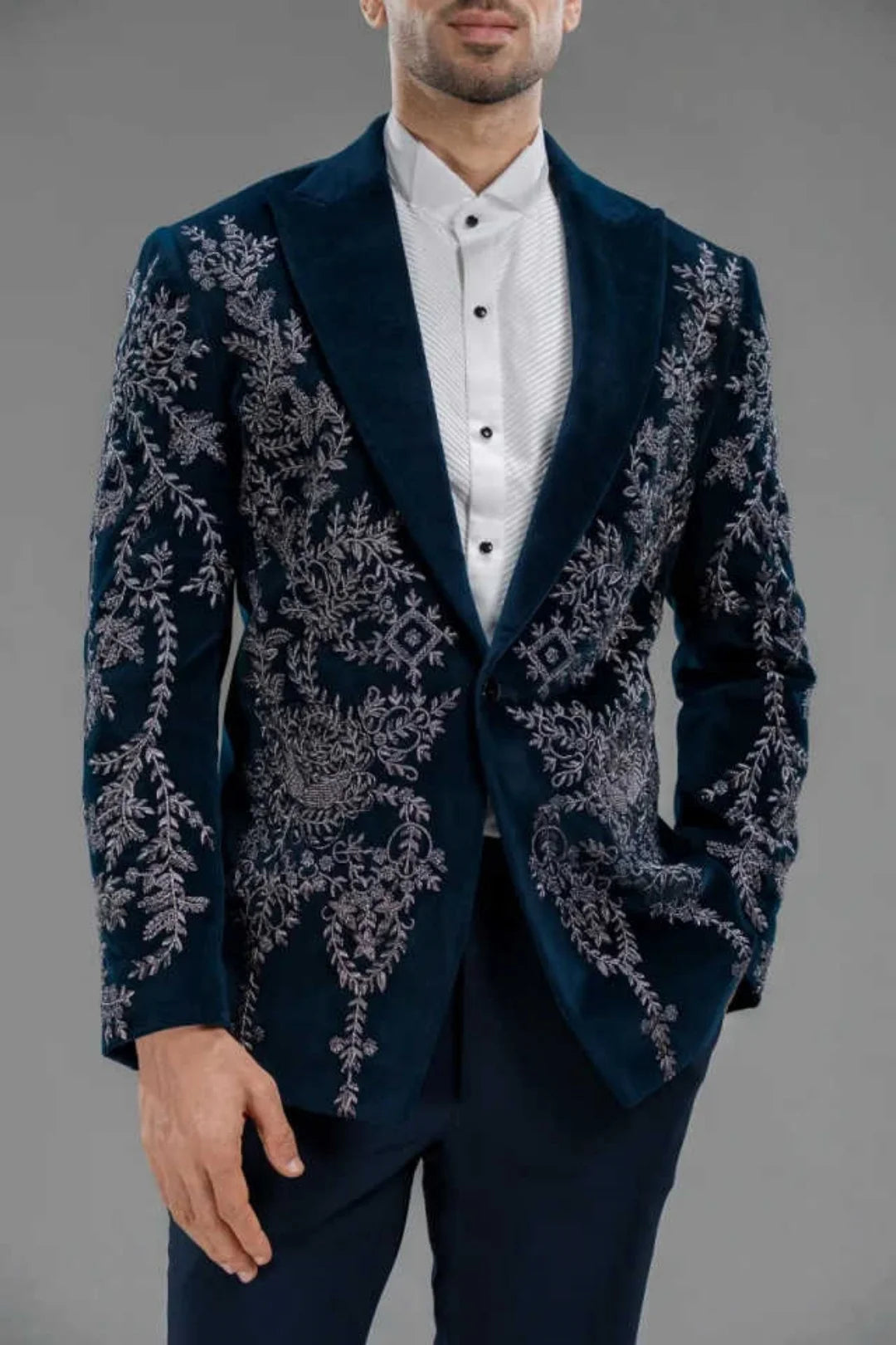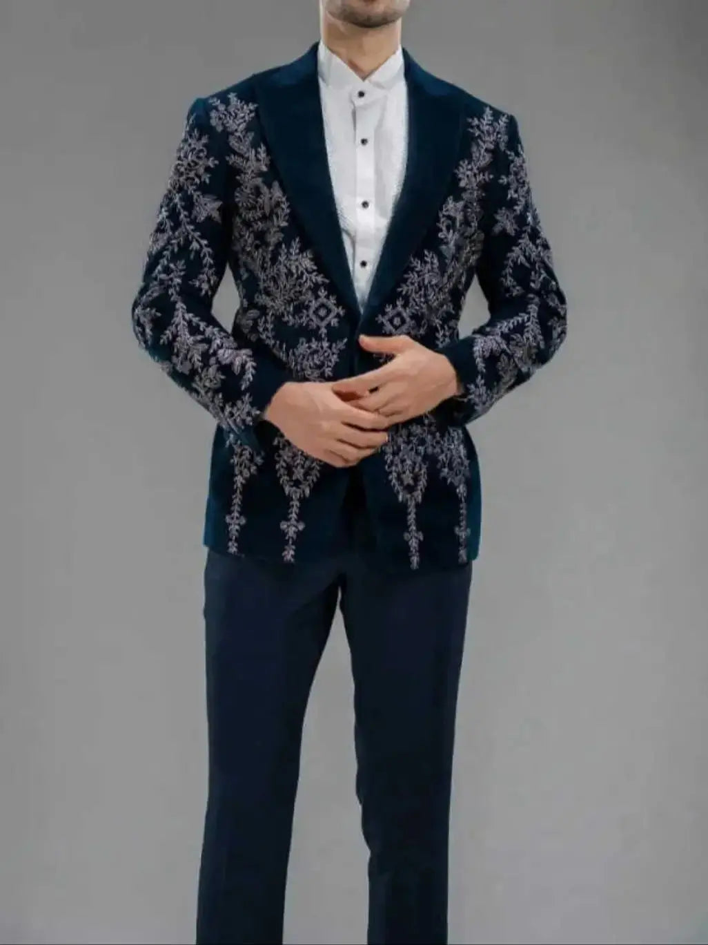 Elegant Men's Suits 2 Pieces Blazer Appliques Single Breasted Wedding Tuxedos Slim Fit Custom Made Costumes Hommes