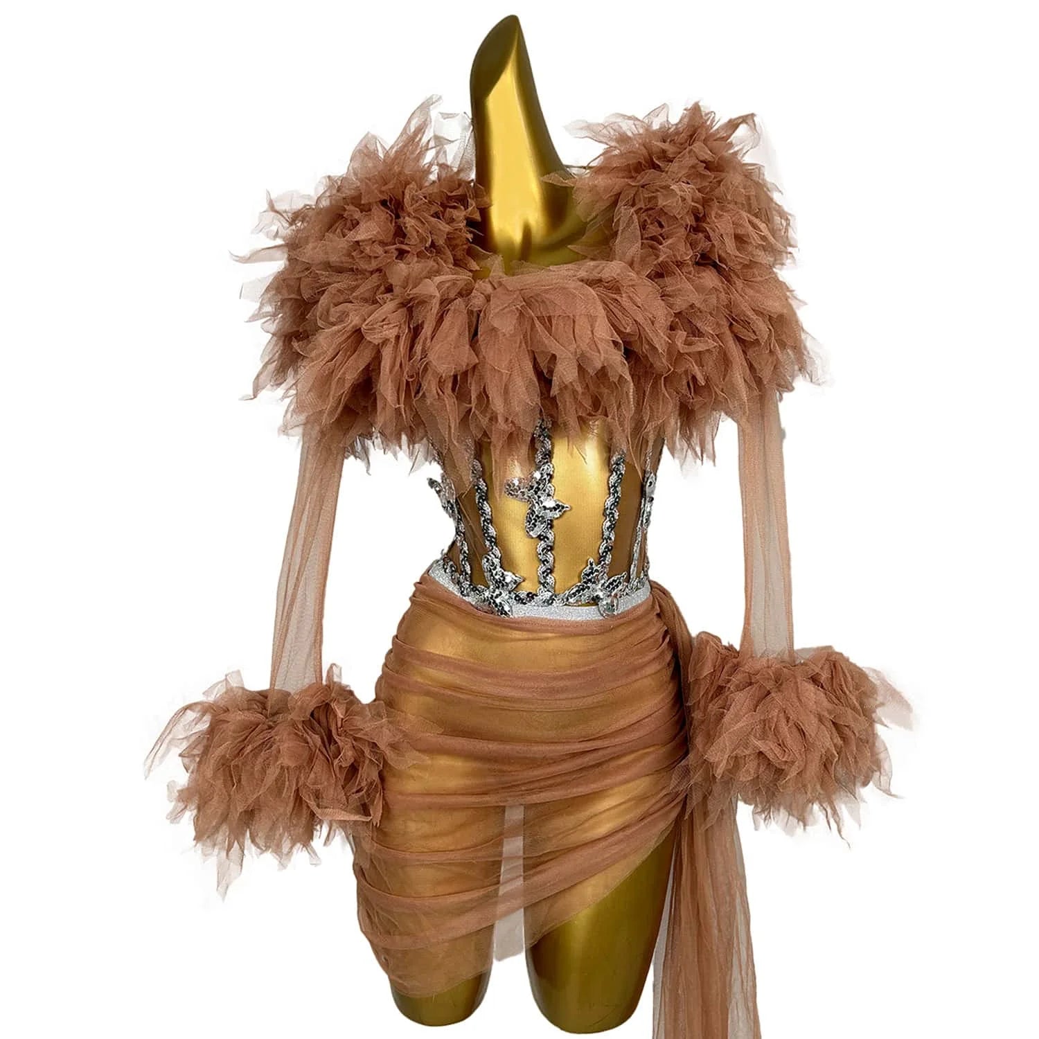 Elegant Mesh Ruched Birthday Prom Dress Off Shoulder Top Skirts 3PC Sets Stage Clothing Women Dinner Club Evening Dress Xinshen