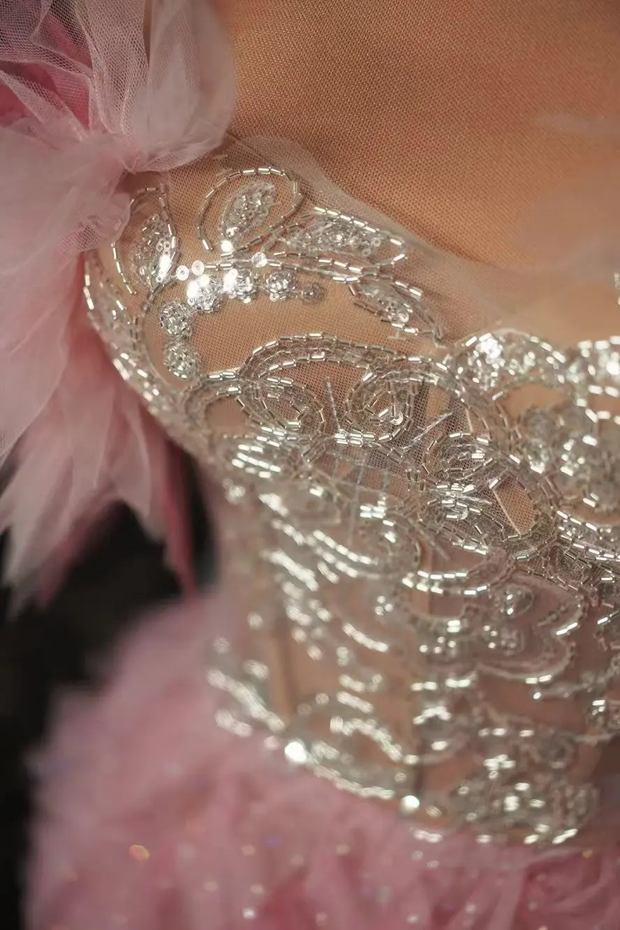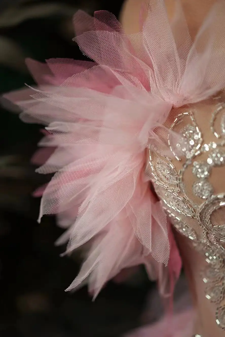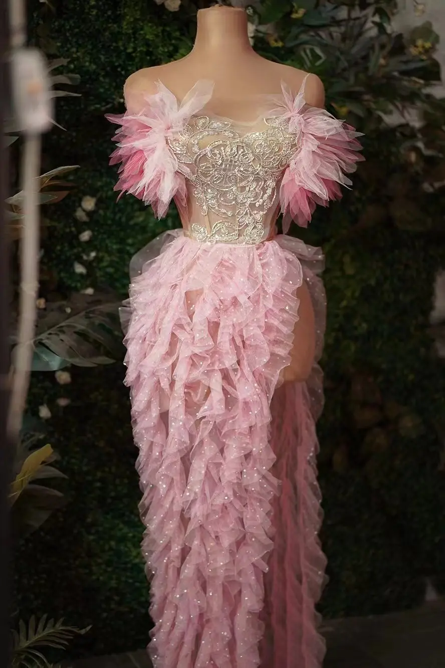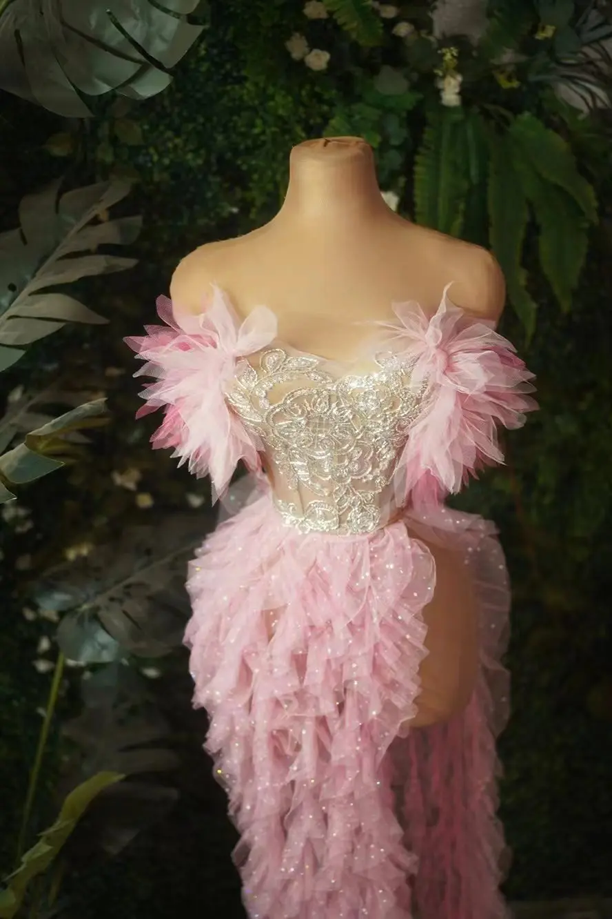 Elegant Pink Flower Evening Dresses for Women Sexy 2-Piece Set Off-shoulder Beaded Lace African Women Forma Evening Gowns Ruhua