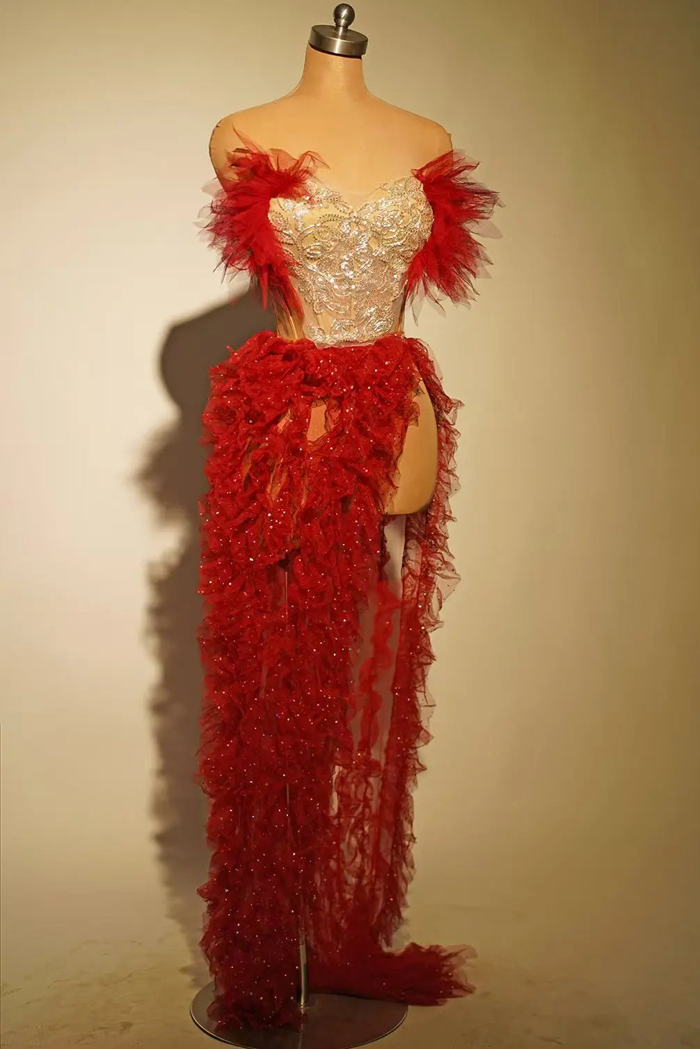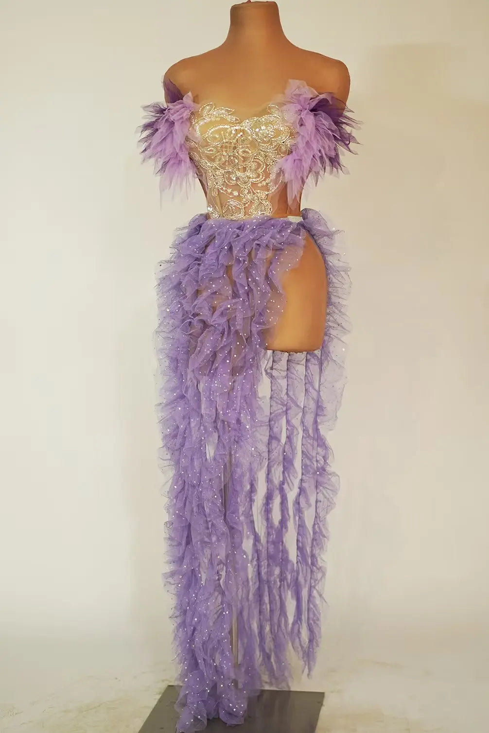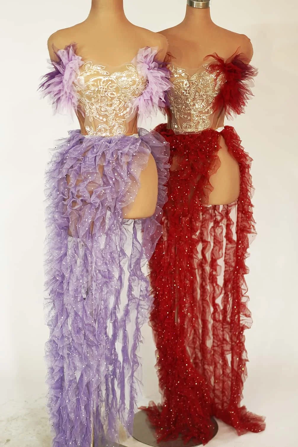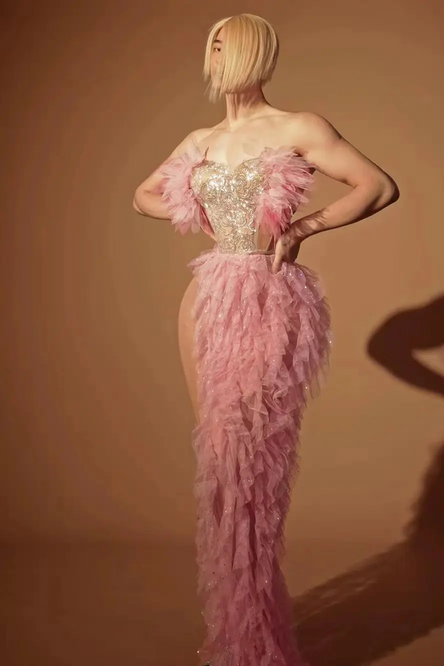 Elegant Pink Flower Evening Dresses for Women Sexy 2-Piece Set Off-shoulder Beaded Lace African Women Forma Evening Gowns Ruhua
