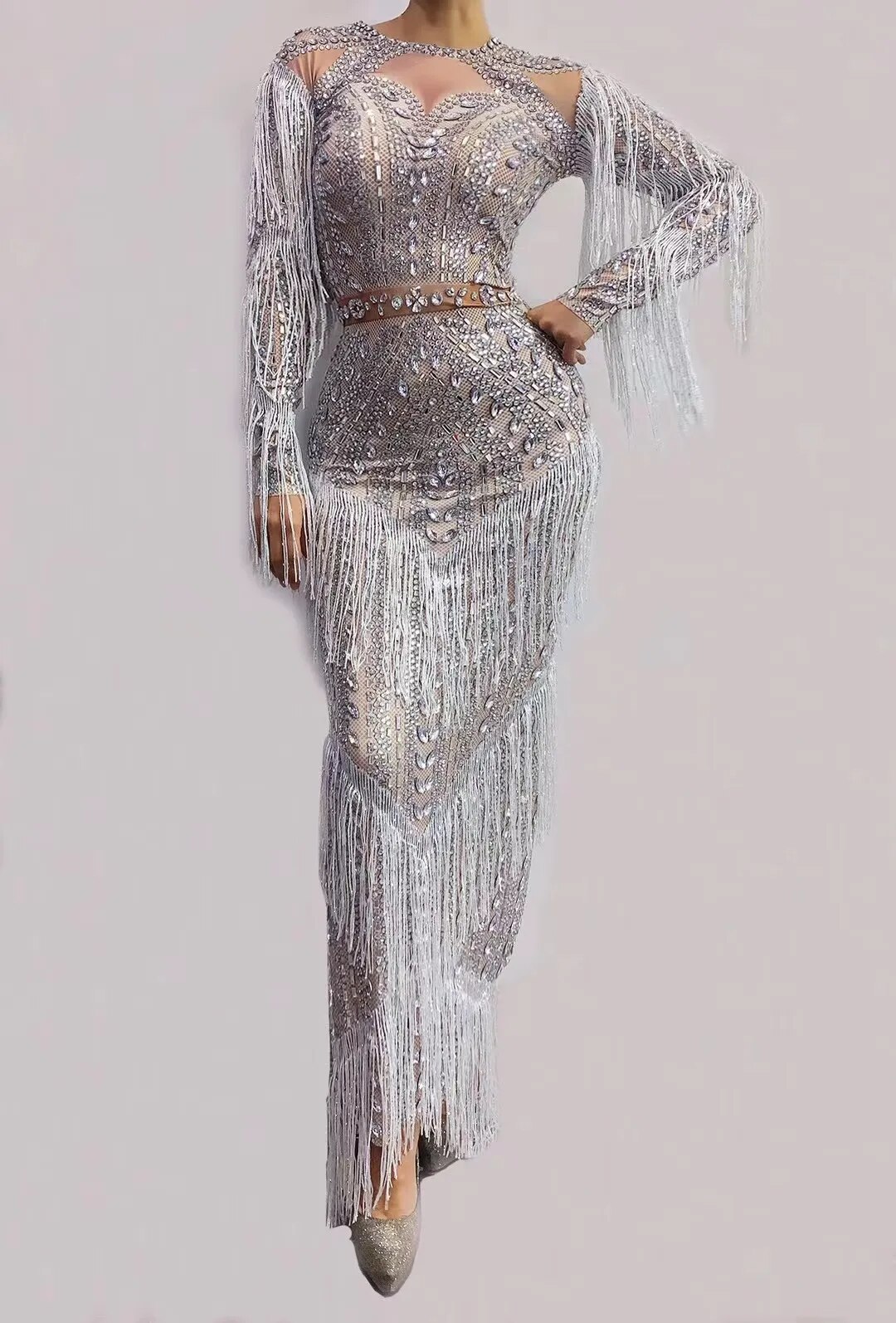 Evening Birthday Singer Celebrate PatchworkBodycon Spring Fringe Tassel Club Party PromDress Vestidos