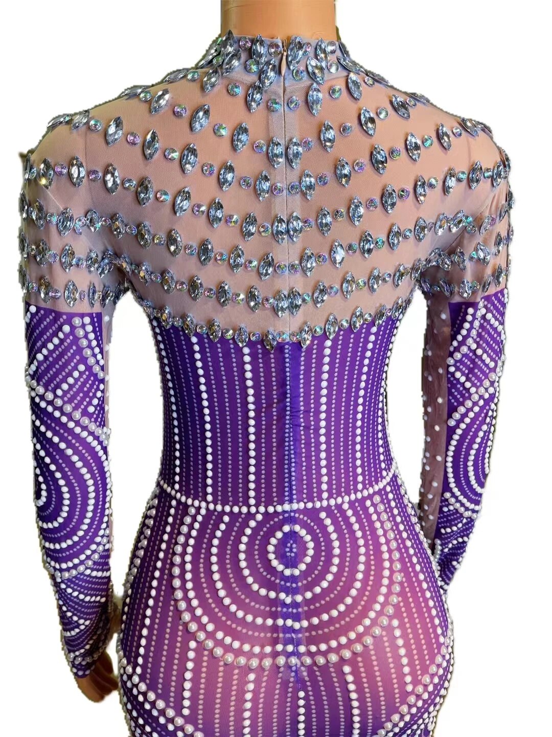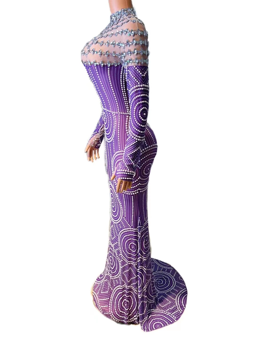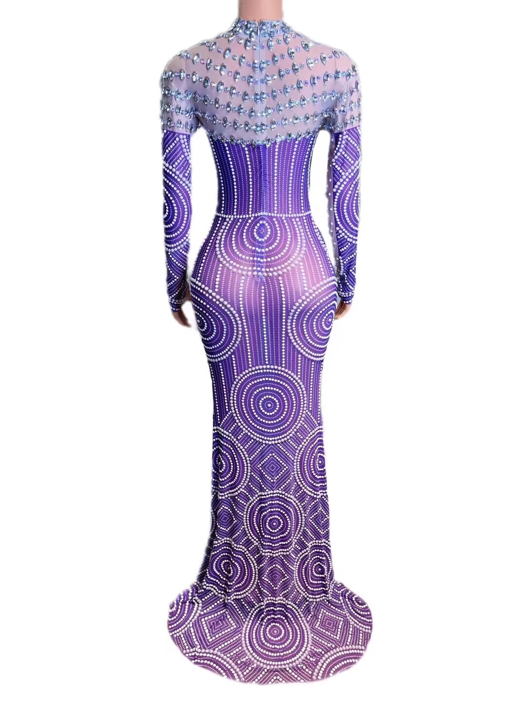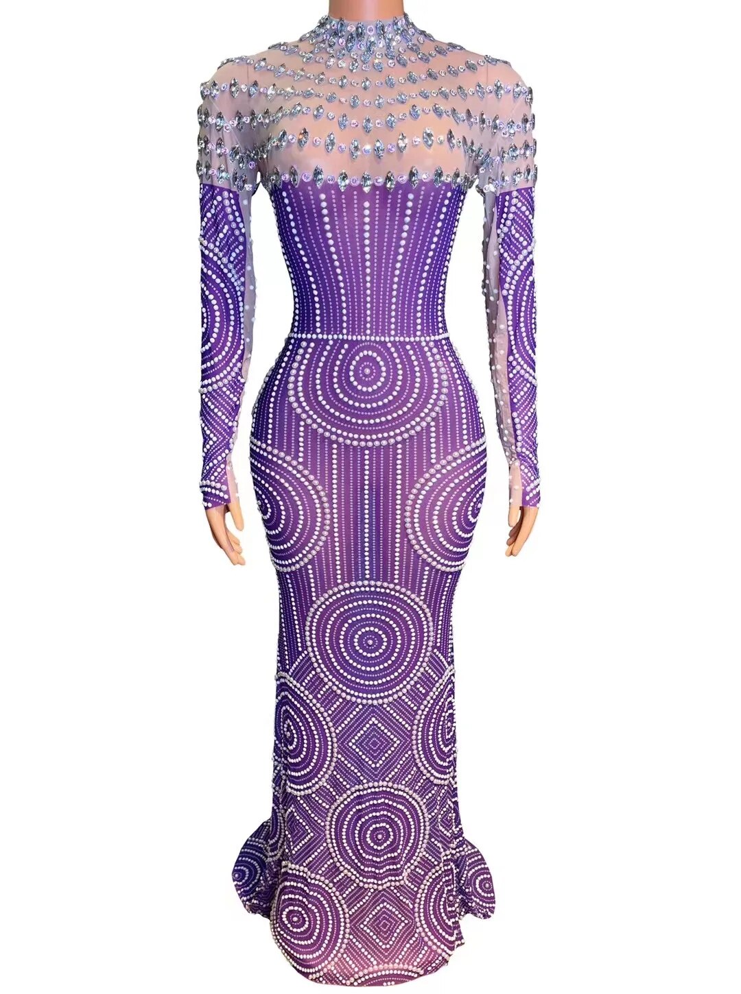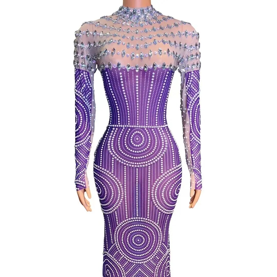 Evening Prom Celebrite Gown Party DressesSparkly Rhinestone Pearls Mesh TransparentLong Dress Women Crystals Singer Stage Wear