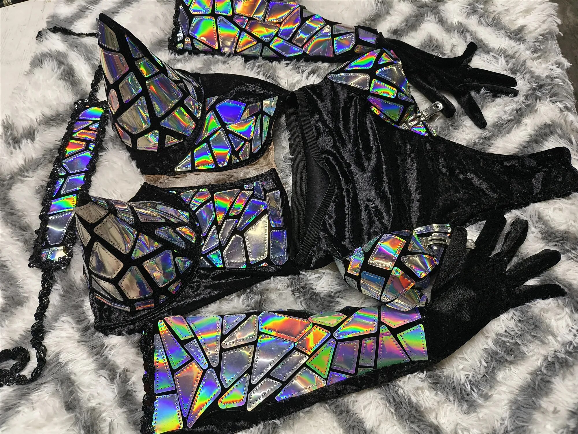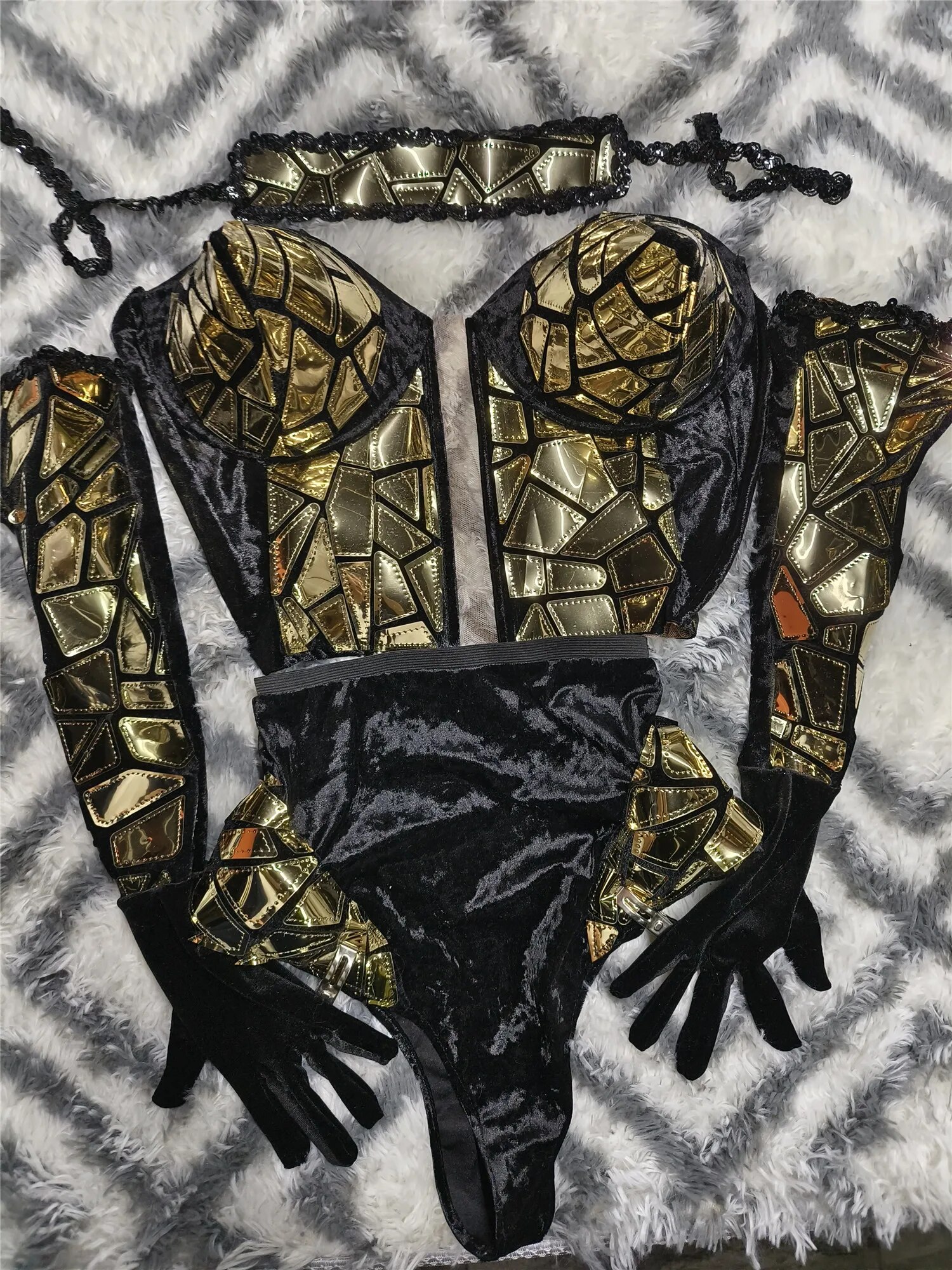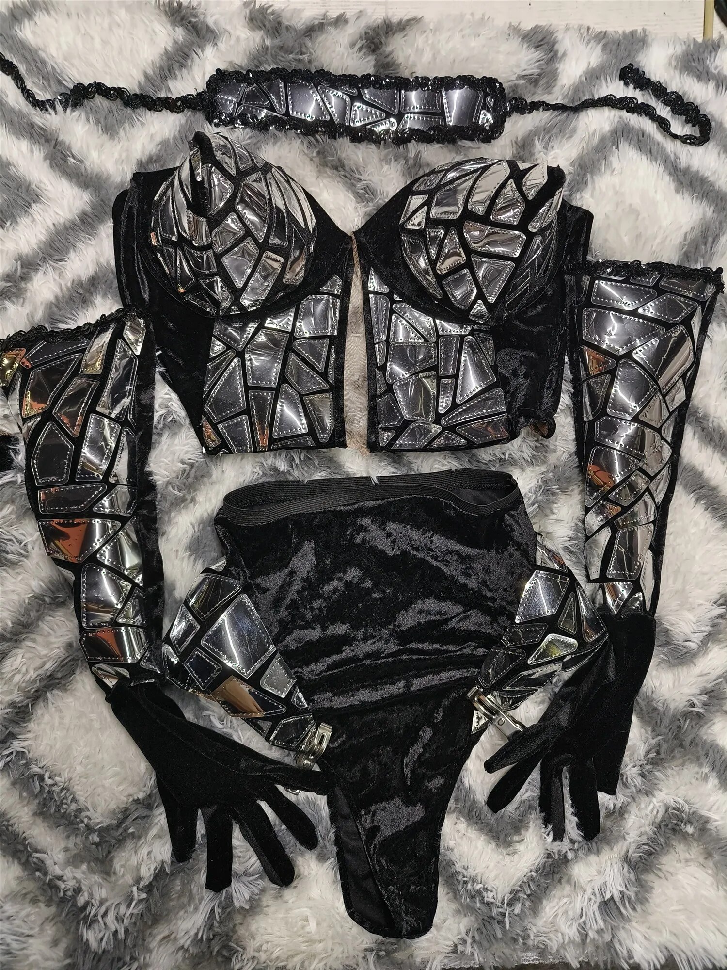 Exaggerated Designed Reflective SequinsBodysuit Sets Sexy Nightclub Outfit DanceCostume Stage Wear Dancer PerformanceClothing