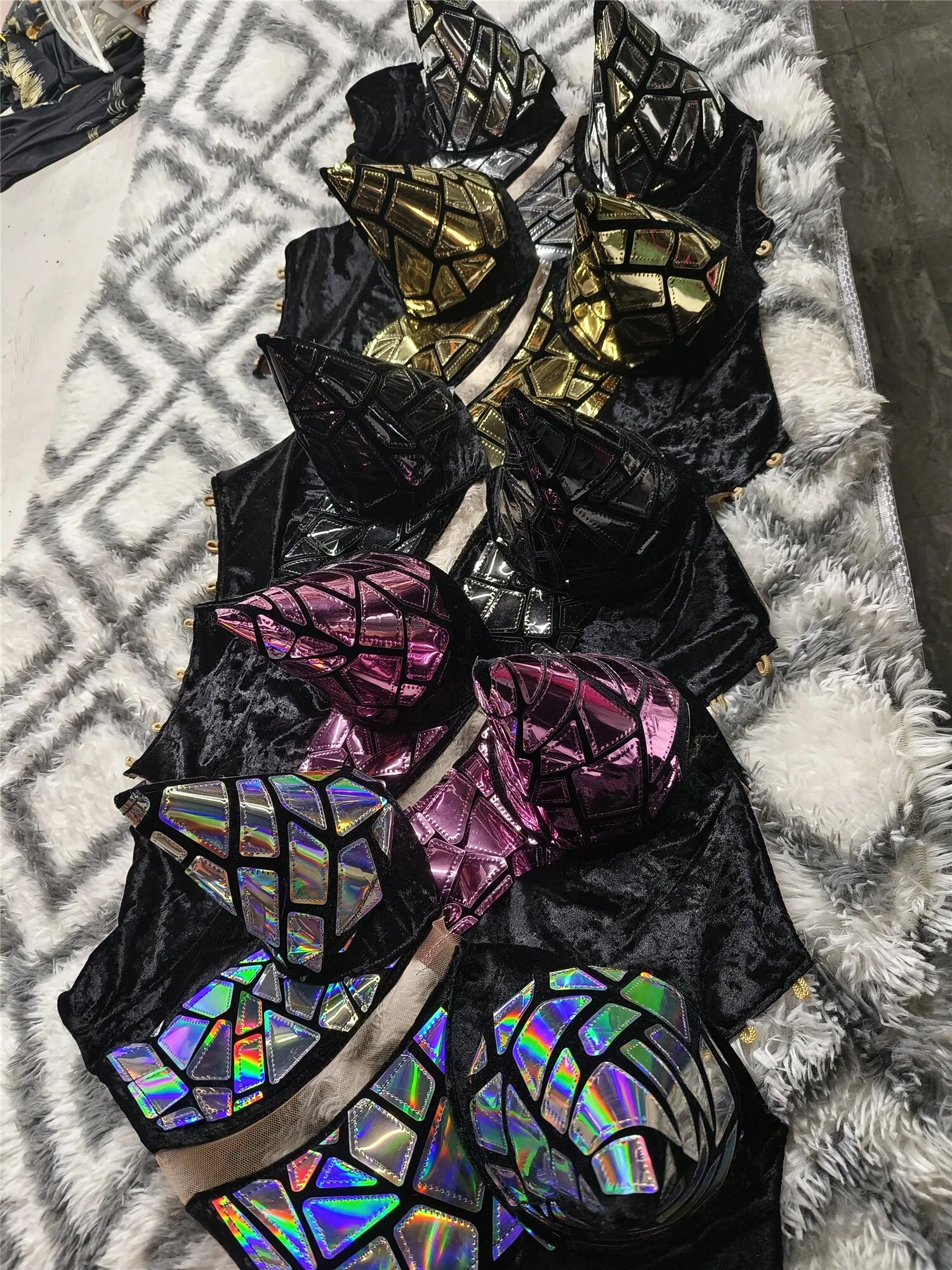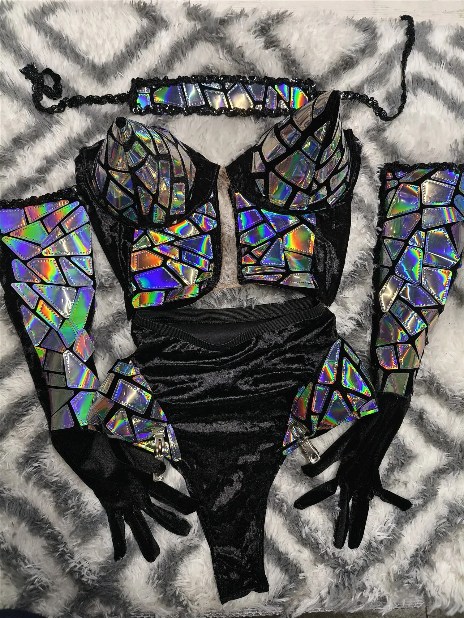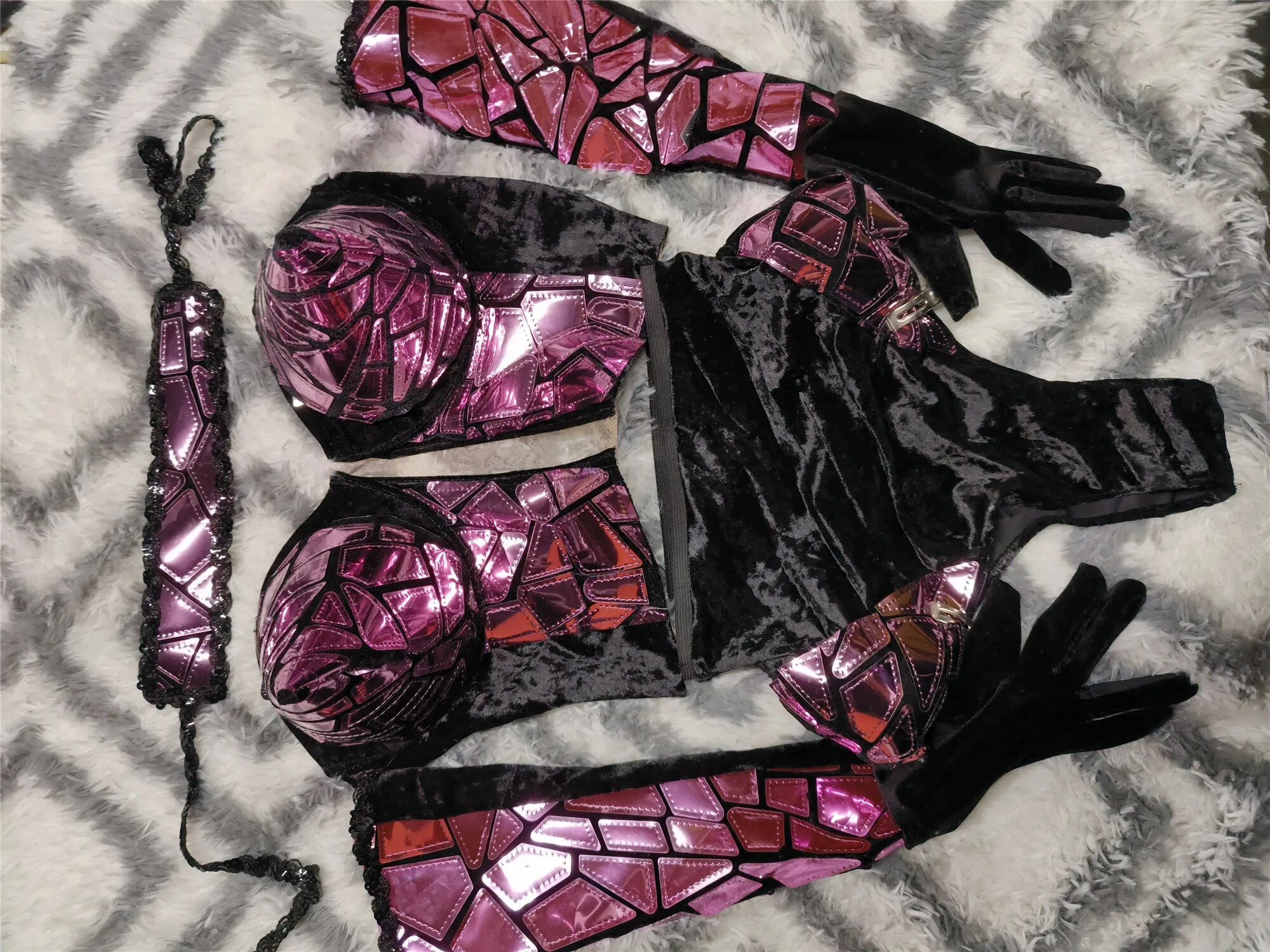 Exaggerated Designed Reflective SequinsBodysuit Sets Sexy Nightclub Outfit DanceCostume Stage Wear Dancer PerformanceClothing