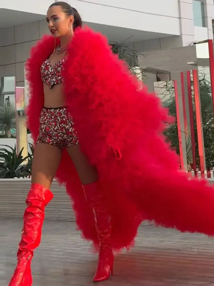 Make a statement with our?Eye-Catching Layered Long Tulle Jacket?for women. This stunning outerwear piece features dramatic puff sleeves and a layered tulle design, perfect for stage performances and special occasions. The unique style adds a touch of whimsy and elegance to any outfit, ensuring you stand out in the spotlight. Layer it over your favorite costumes or dresses for an unforgettable look that combines fashion and performance seamlessly.