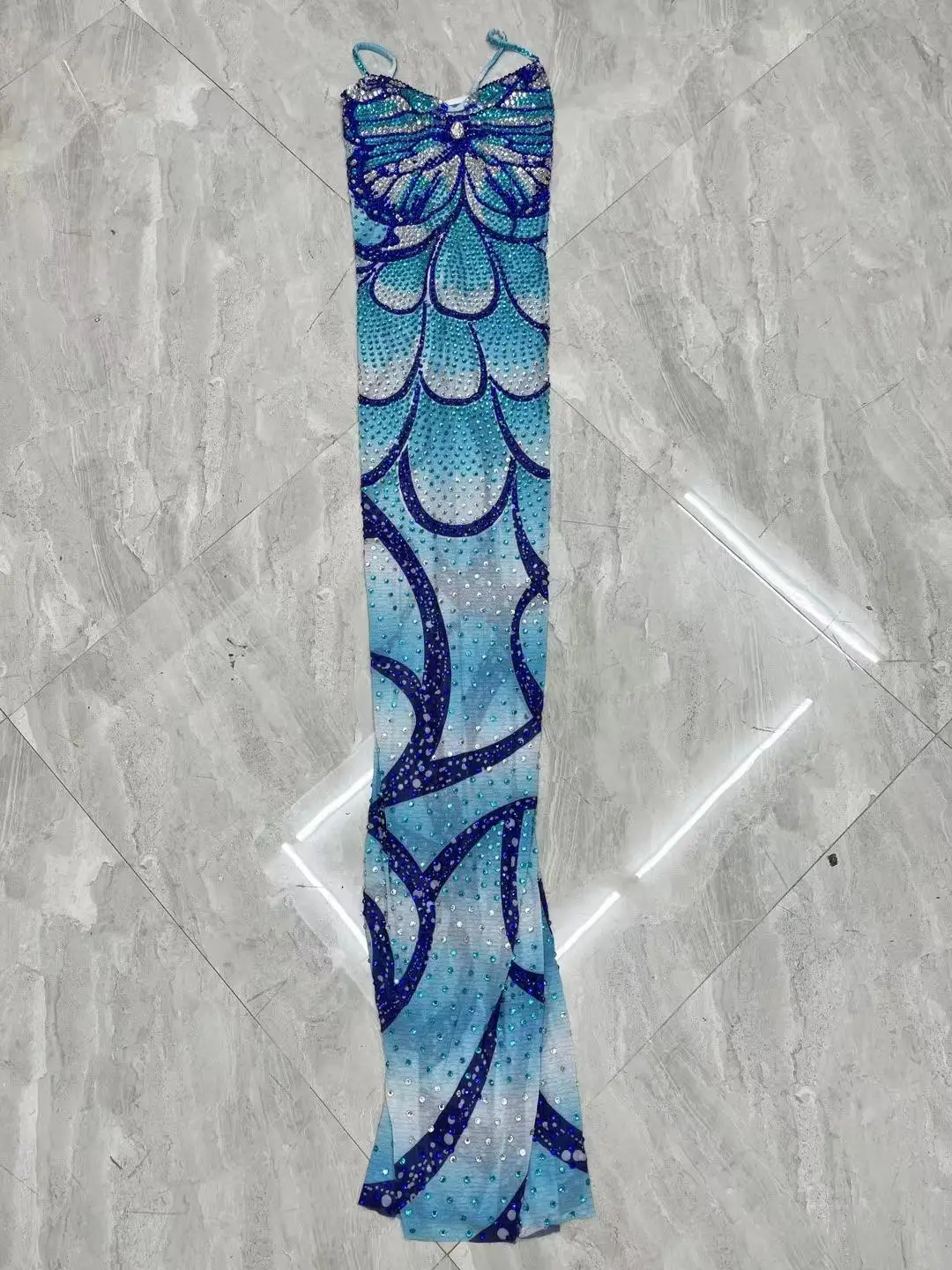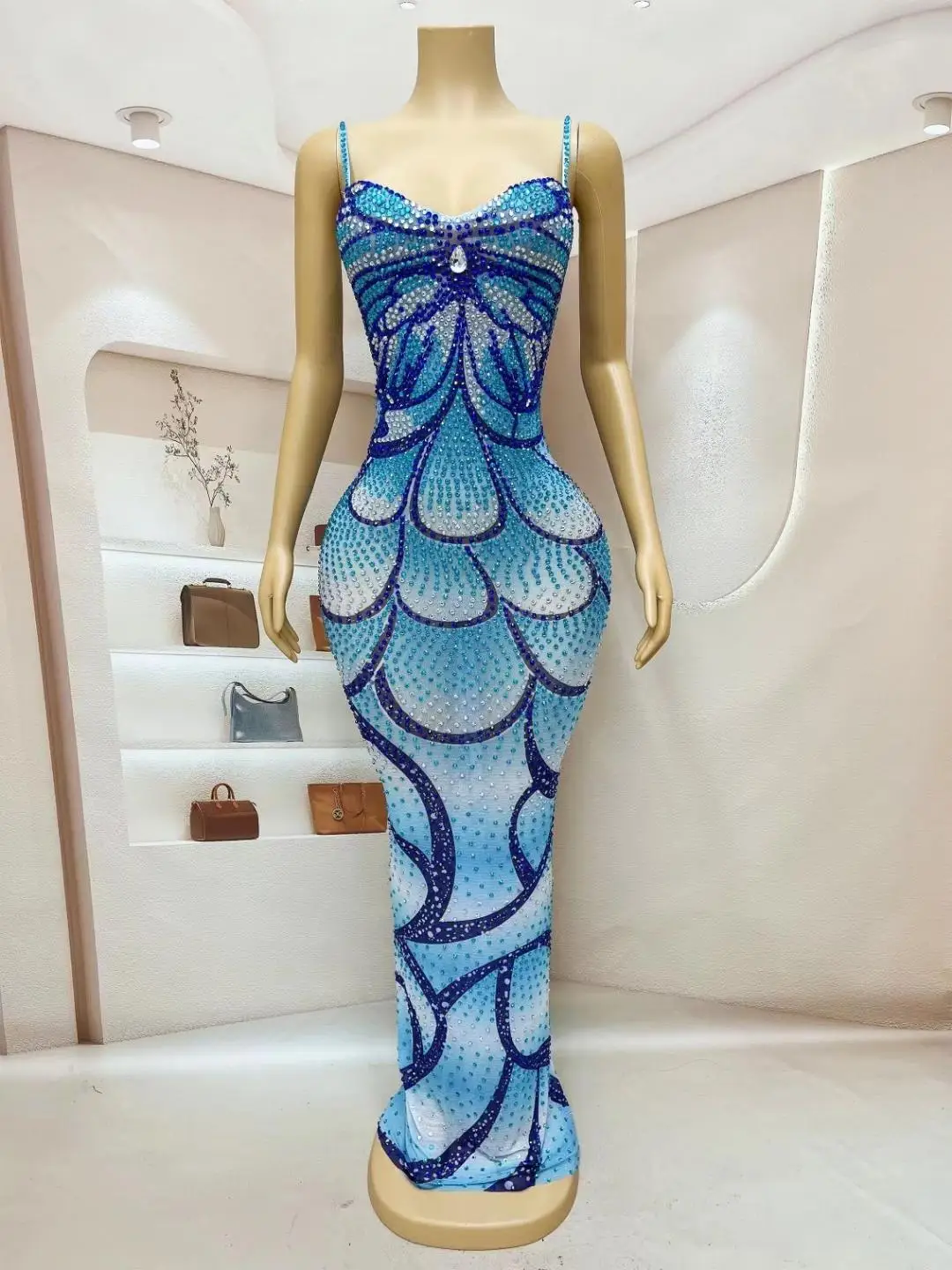 Fancy Blue Diamonds Butterfly Dress Women Birthday Celebrate Dress Transparent Party Outfit Collection Stretch Costume Bingpodie