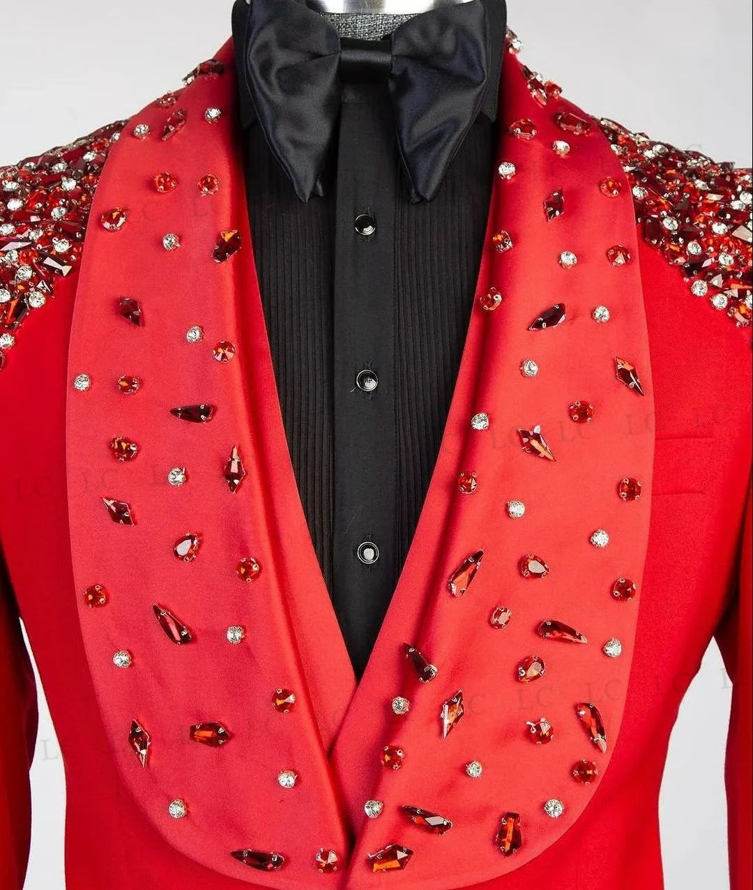 ??Make a statement with this fantastic 3-piece men's suit set, featuring a party blazer adorned with beads, diamonds, and tassels. This set is perfect for prom, weddings, groom attire, and formal events. Available in plus sizes, this costume homme exudes style and sophistication for any special occasion.