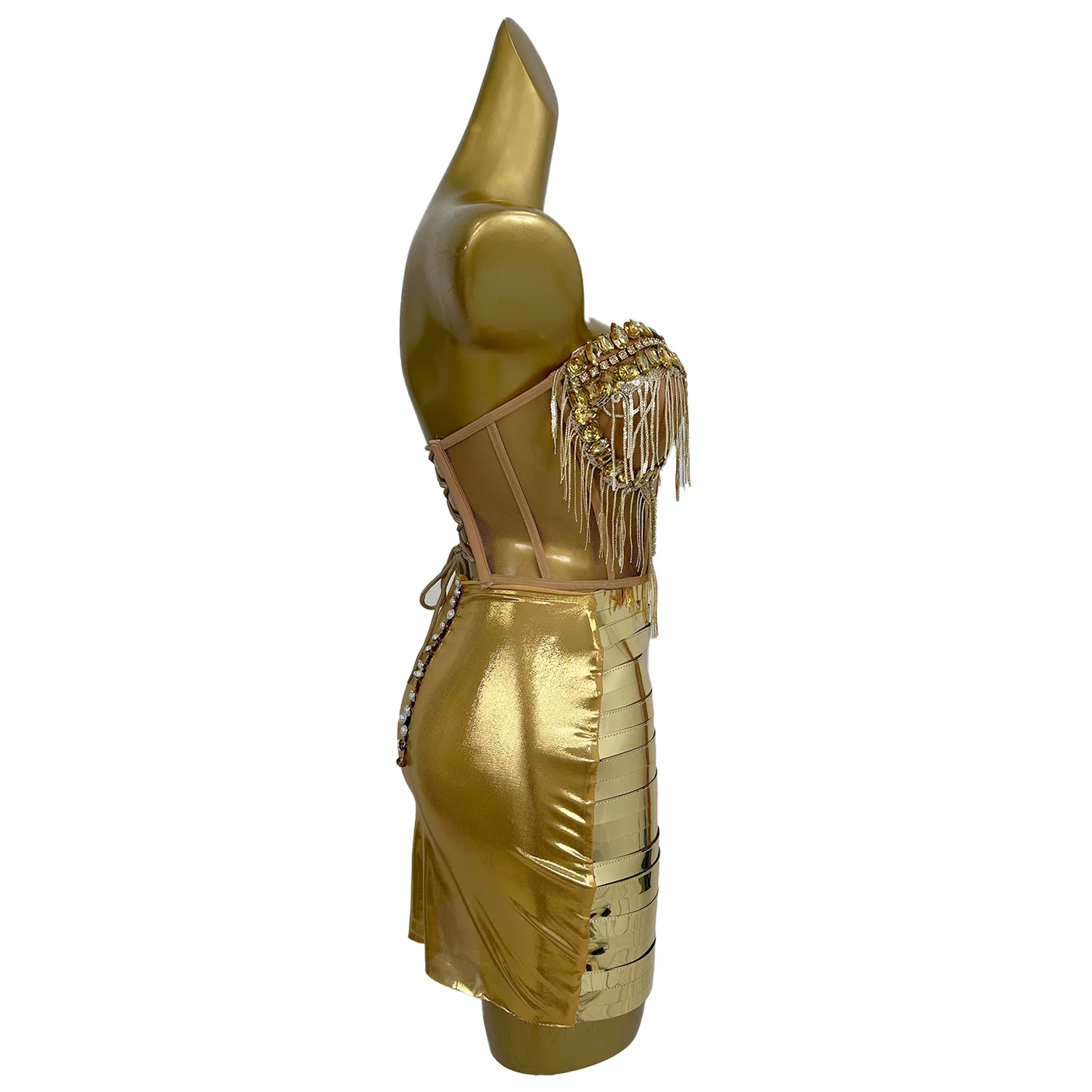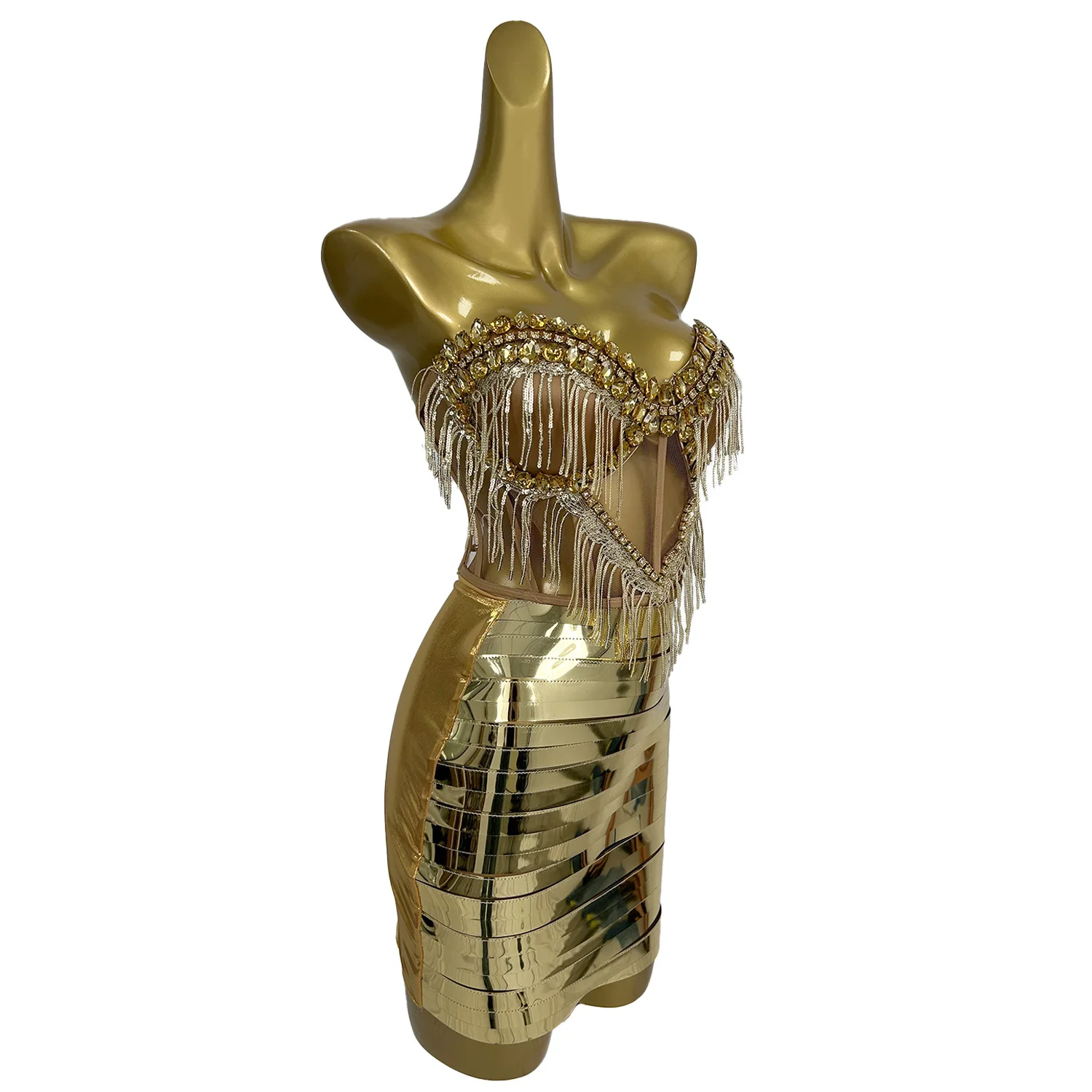 Fashion 2 Piece Suit Bodycon Dress Glitter Rhinestone Birthday Party DS Stage Designer Sexy Club Outfit Drag Queen Wear Shengnv