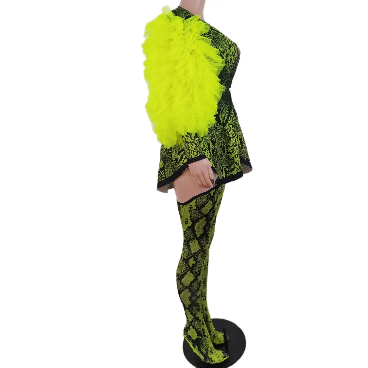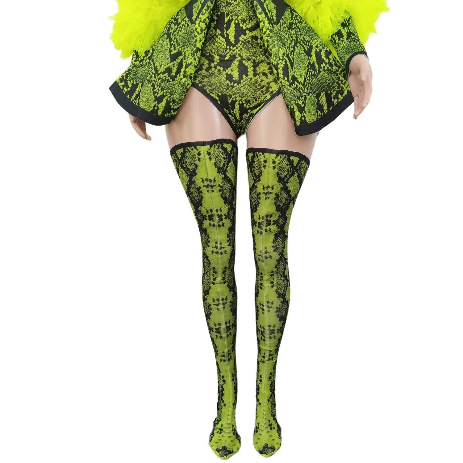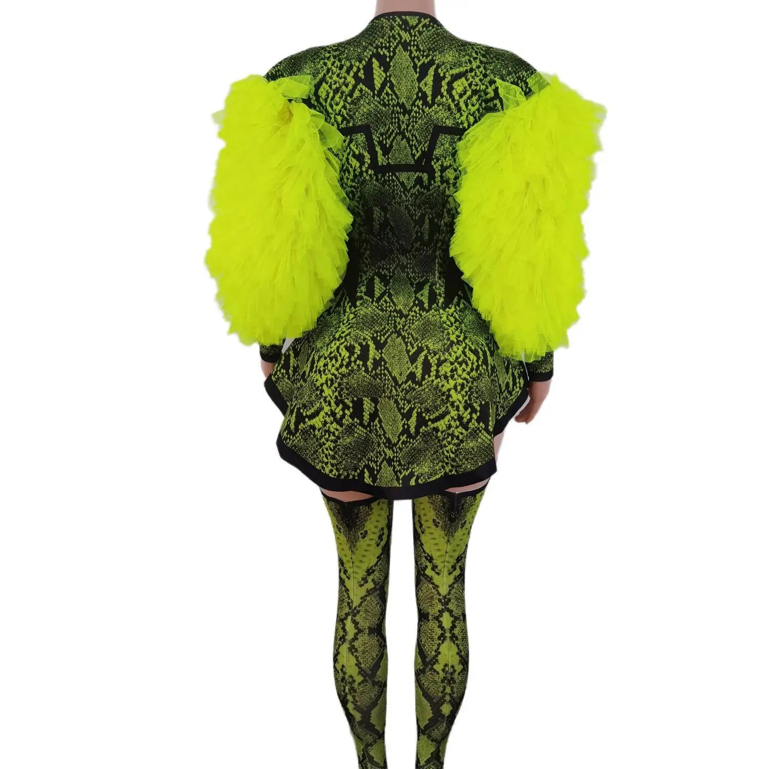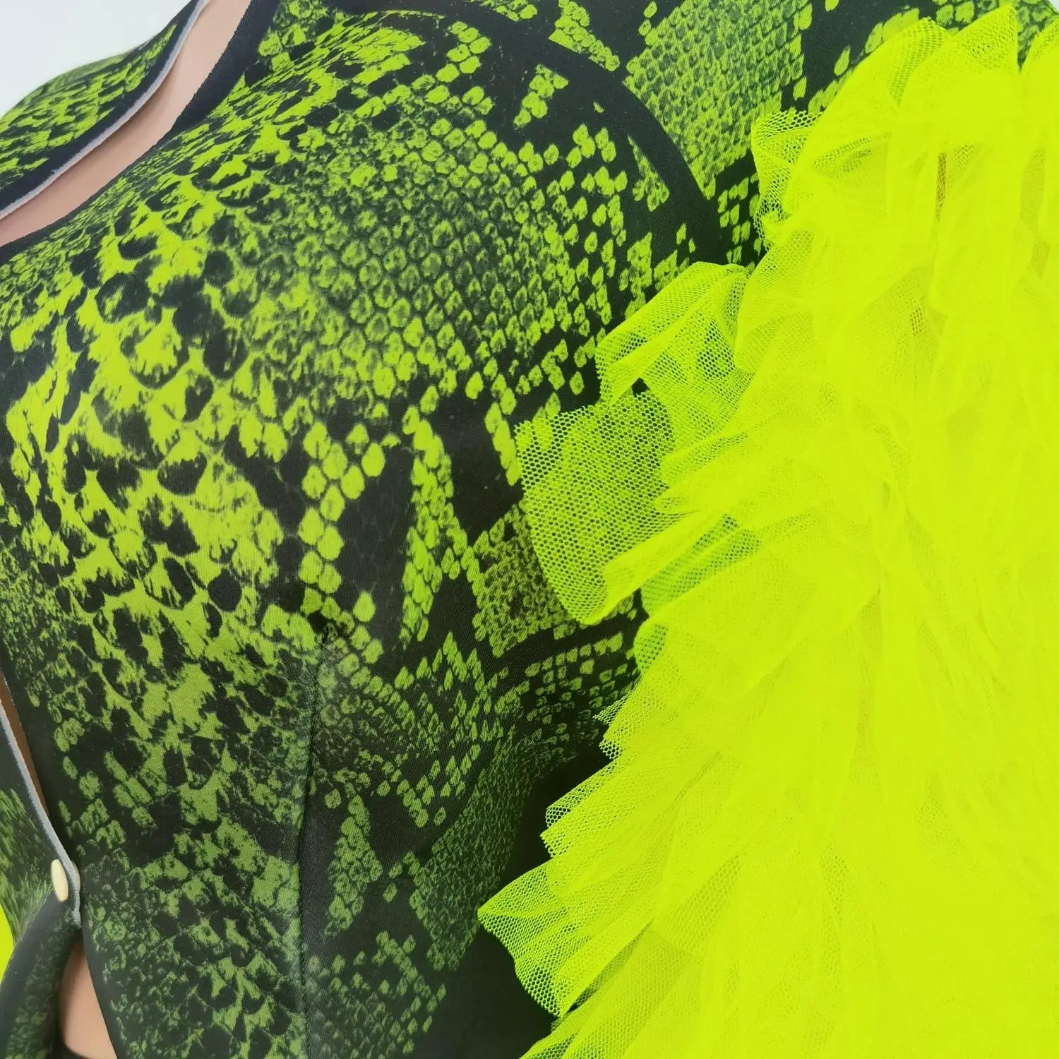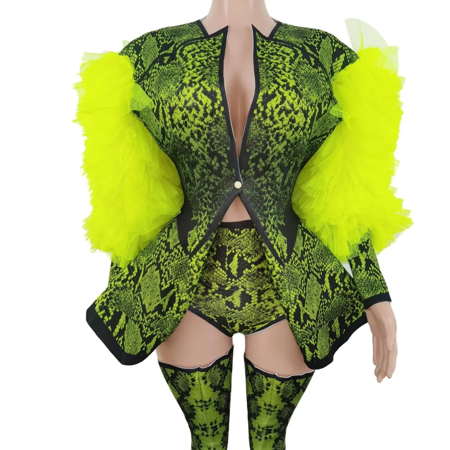 Fashion 3-Piece Outfit Set Green Snake Print Halloween Costume Women Jacket Festival Bodysuit Outfit Performance