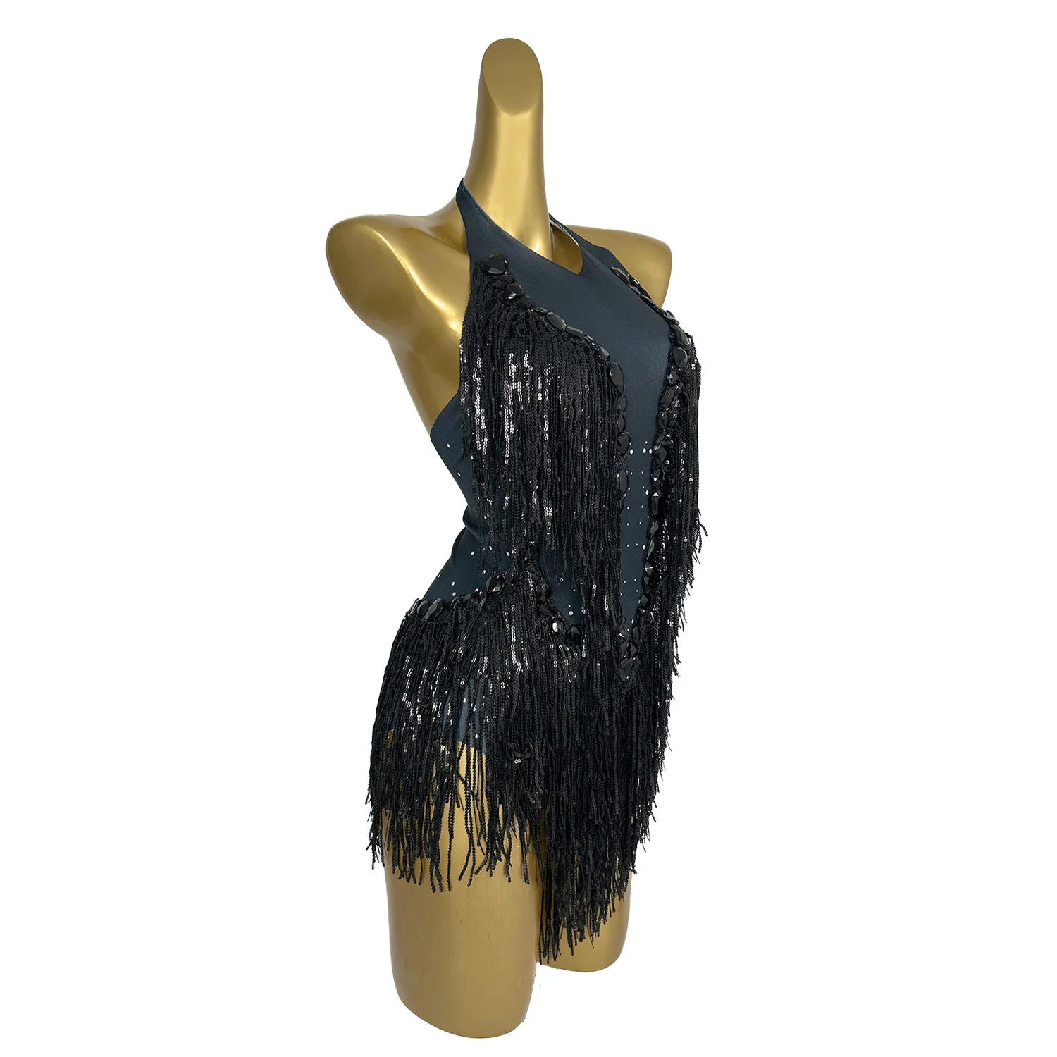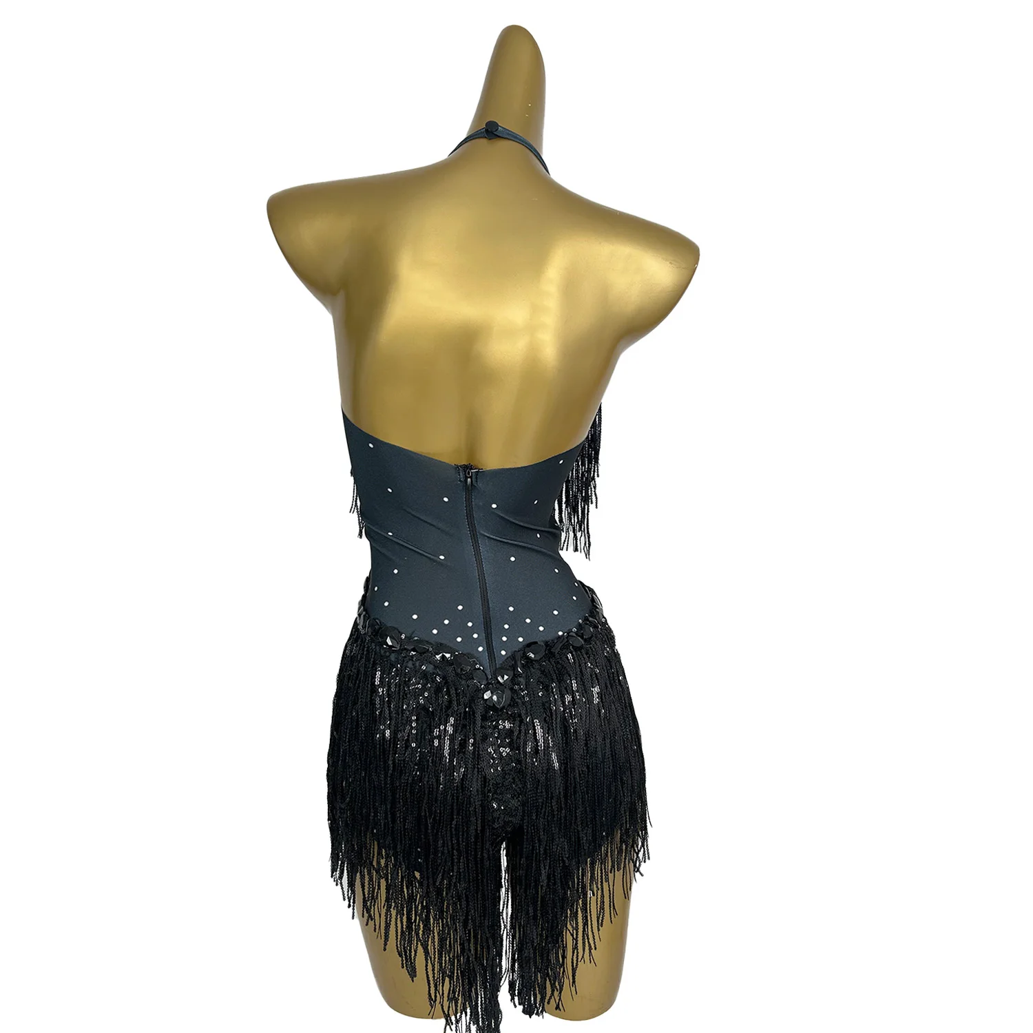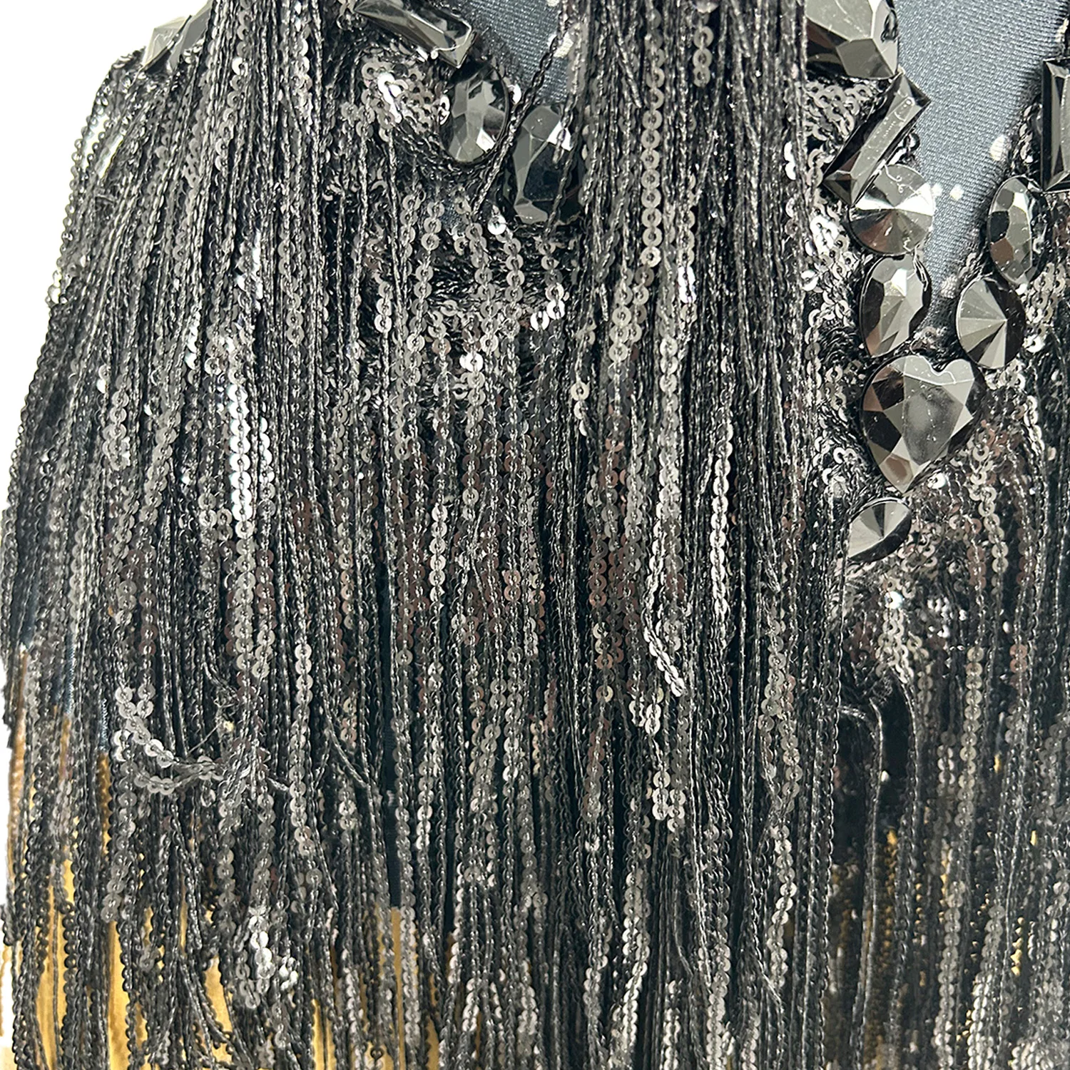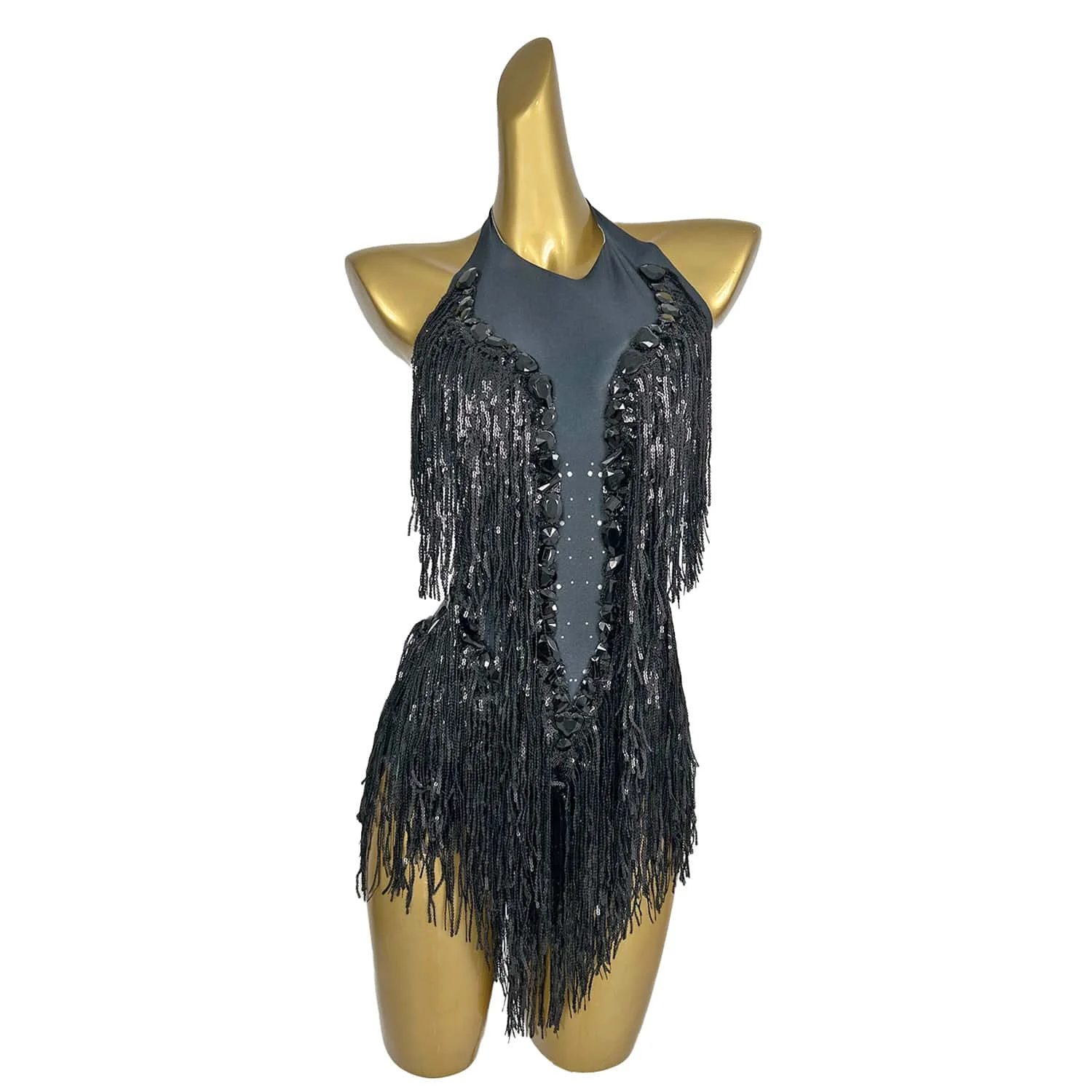 Fashion Black Tassle Carnival Jumpsuit Women Sexy Stage Show Costumes Sparkle Beading Party Prom Club One-Piece Bodysuits Shuye